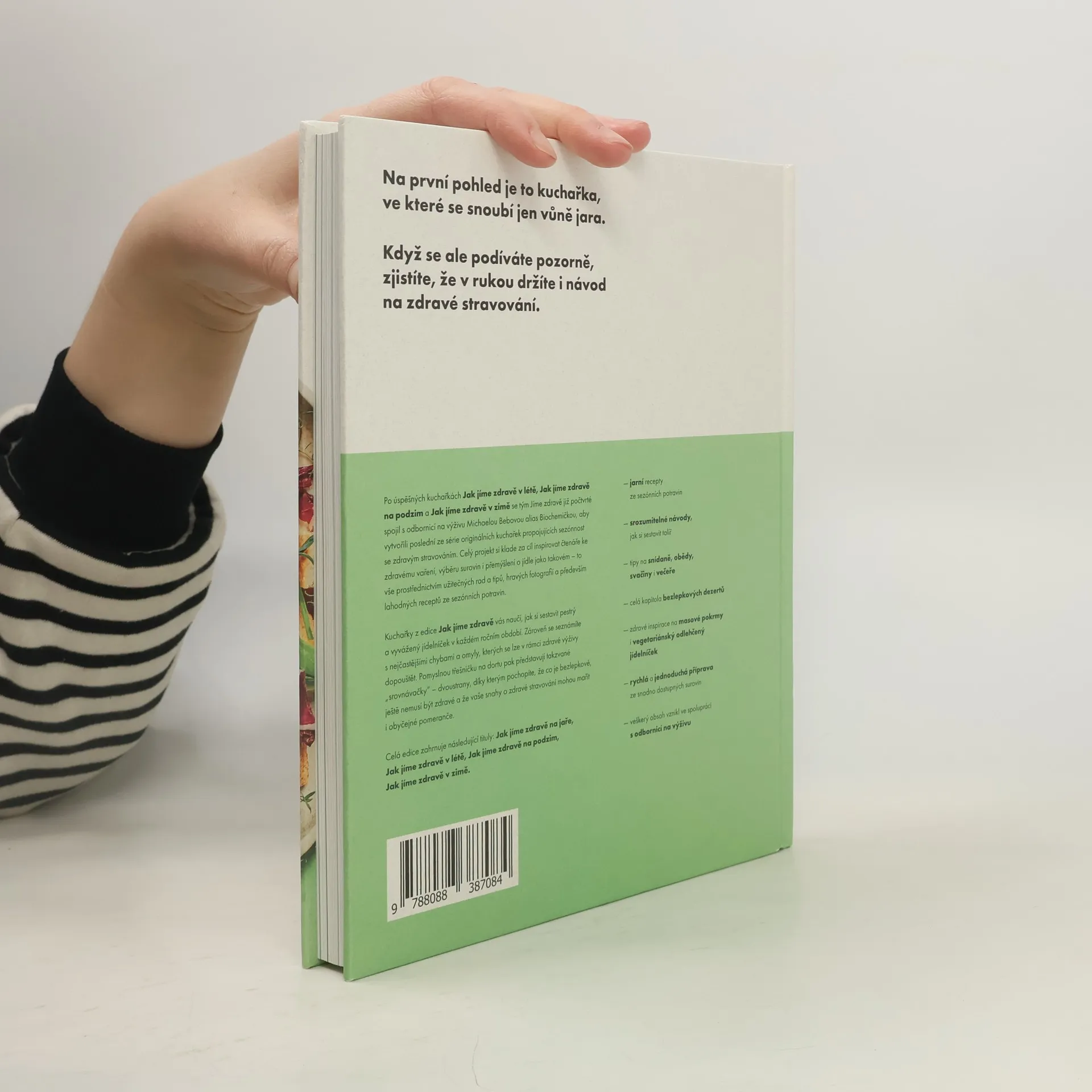 Tým Jíme zdravě se ve spolupráci s odbornicí na výživu Michaelou Bebovou opět zaměřil na propojení sezónnosti se zdravým stravováním. Nová kuchařka nabízí možnost sestavit vyvážený jídelníček pro celou rodinu. Kniha je rozdělena do čtyř kapitol. První kapitola se věnuje zdravým snídaním s vejci, kde najdete recepty na oblíbená jídla jako vejce Benedikt nebo nadýchanou omeletu. Dále se můžete těšit na lahodná hlavní jídla s kvalitním libovým masem, jako jsou řízky nebo lehký pstruh s pečenou mrkví. Kapitola Jarní odlehčení přináší recepty na polévky, saláty, smoothies a šťávy, včetně špenátové polévky se zastřenými vejci a hravých barevných salátů. Na závěr se můžete těšit na dezerty bez výčitek v kapitole Bezlepkové svačiny, kde vyniká mandlovopomerančová bábovka a rýžový pudink s višněmi. Kniha nabízí 90 jarních sezónních receptů, srozumitelné návody, detoxikační desatero a rady pro jarní klíčení. Recepty jsou psány hravou formou, což usnadňuje přípravu i začátečníkům. Veškerý obsah vznikl ve spolupráci s odbornicí na výživu.