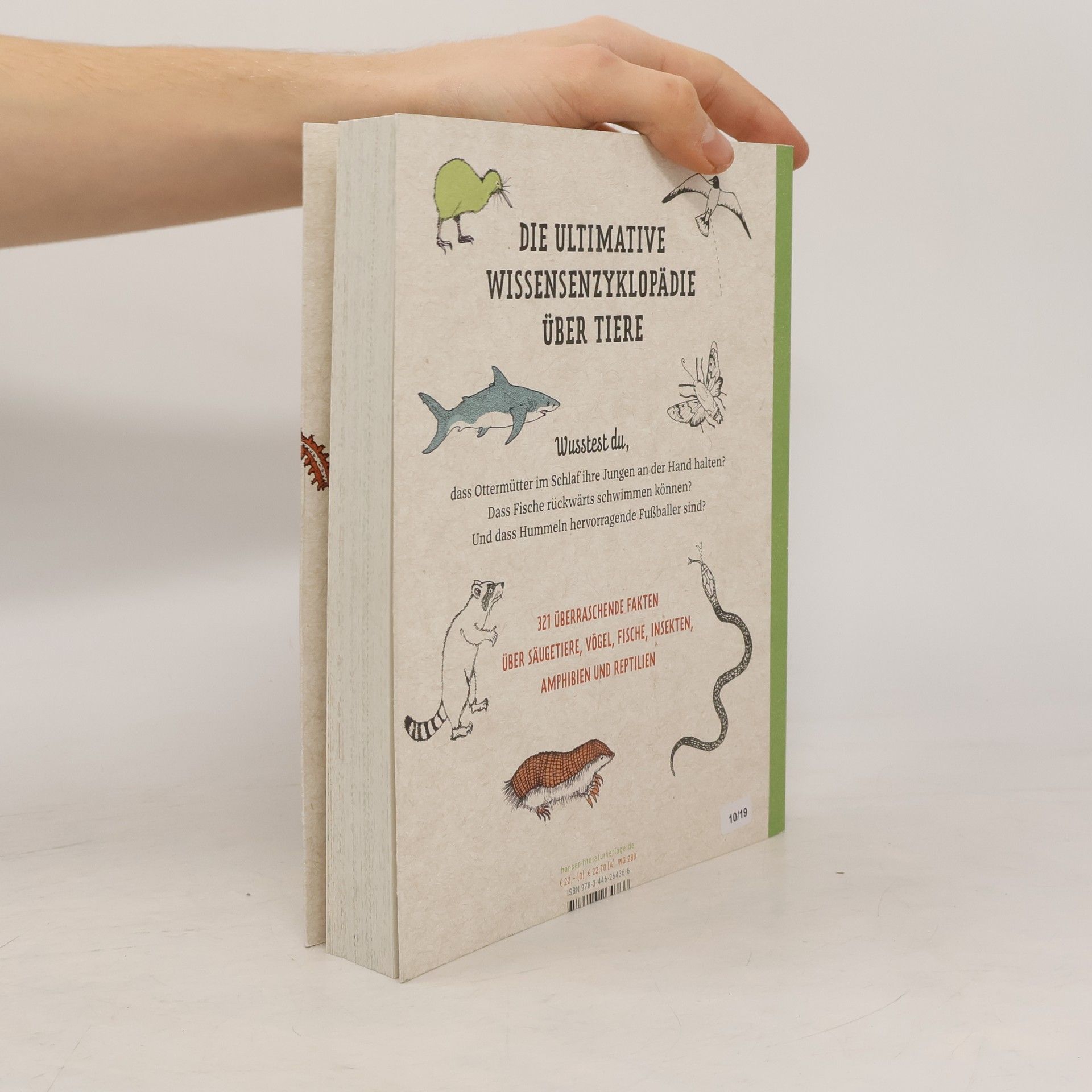 Band 2 des Bestsellers „321 superschlaue Dinge, die du unbedingt wissen musst“ mit überraschenden Fakten über Tiere Wusstest du, dass Hummeln hervorragende Fußballer sind? Und dass Weißwangengänse das Wetter vorhersagen können? Dass Hühner keinesfalls dumm sind? Dass Schlangen mit der Zunge riechen und Weiße Haie dreitausend Zähne haben? Und dass Ottermütter im Schlaf ihre Jungen an der Hand halten? Oder dass Elefanten Angst vor Bienen haben und Heringe mit Fürzen kommunizieren? 321 erstaunliche und amüsante Fakten über Säugetiere, Vögel, Fische, Insekten, Amphibien und Reptilien. Ein Wissensbuch, das nicht nur Kindern Spaß macht. Zum Lernen, Lachen und um andere zu verblüffen.