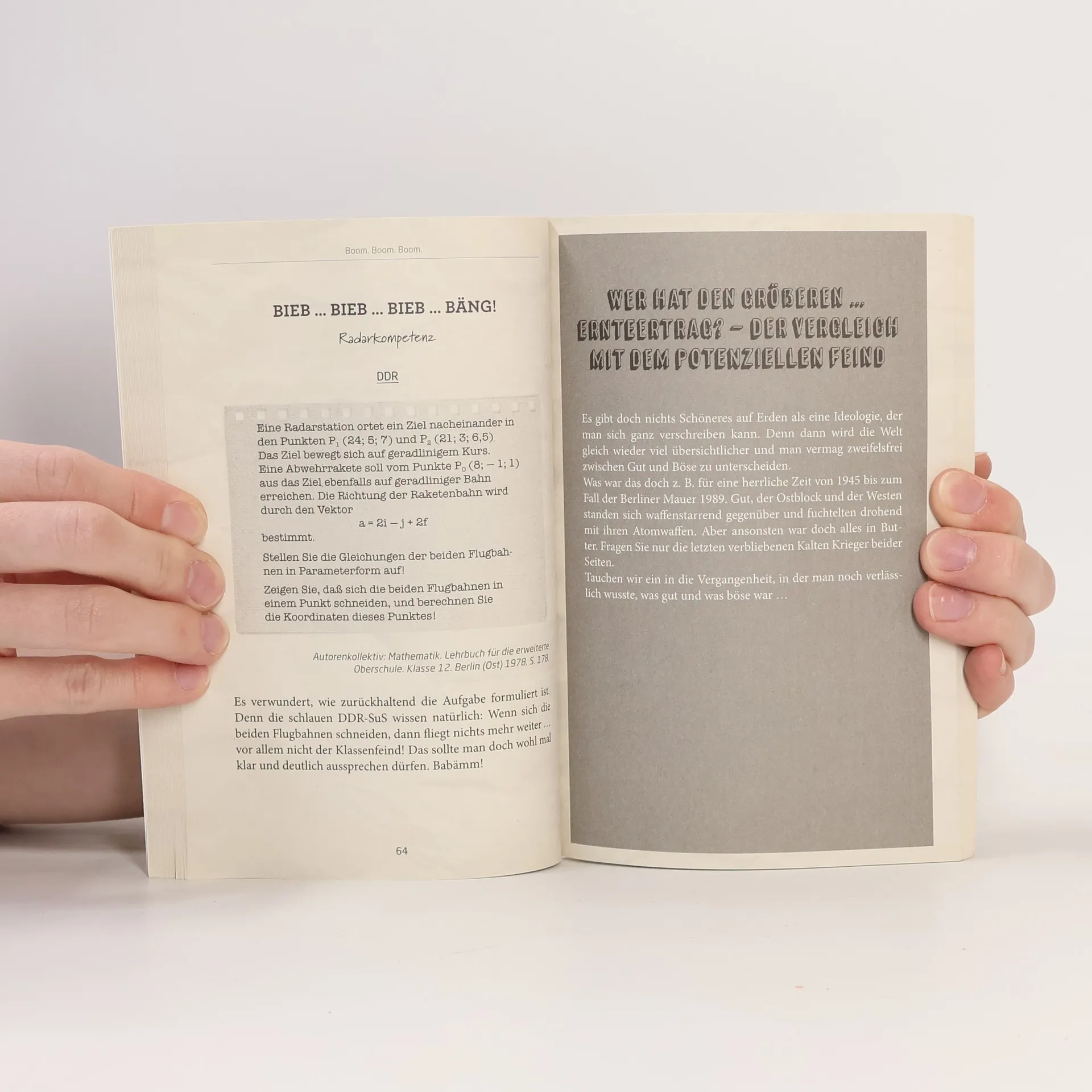 Textaufgaben sind aus dem Mathematikunterricht nicht wegzudenken. Dass sie aber nicht nur mathematisches Wissen abfragen, sondern auch grandiose Zeitzeugen sind, beweist dieses humorvolle Buch mit seiner Sammlung von Matheaufgaben vom Kaiserreich bis heute. Je nach Jahrzehnt und politischem System sind statt zwei Zügen, die von A nach B fahren, nämlich Bombenflieger, unproduktive Weststaaten oder fleißige Hausfrauen Gegenstand der Aufgaben. Textaufgaben sind weltfremd und unpraktisch? Im Gegenteil – sie sind lebensnaher, als man denkt, und im Rückblick oft lustig oder skurril.