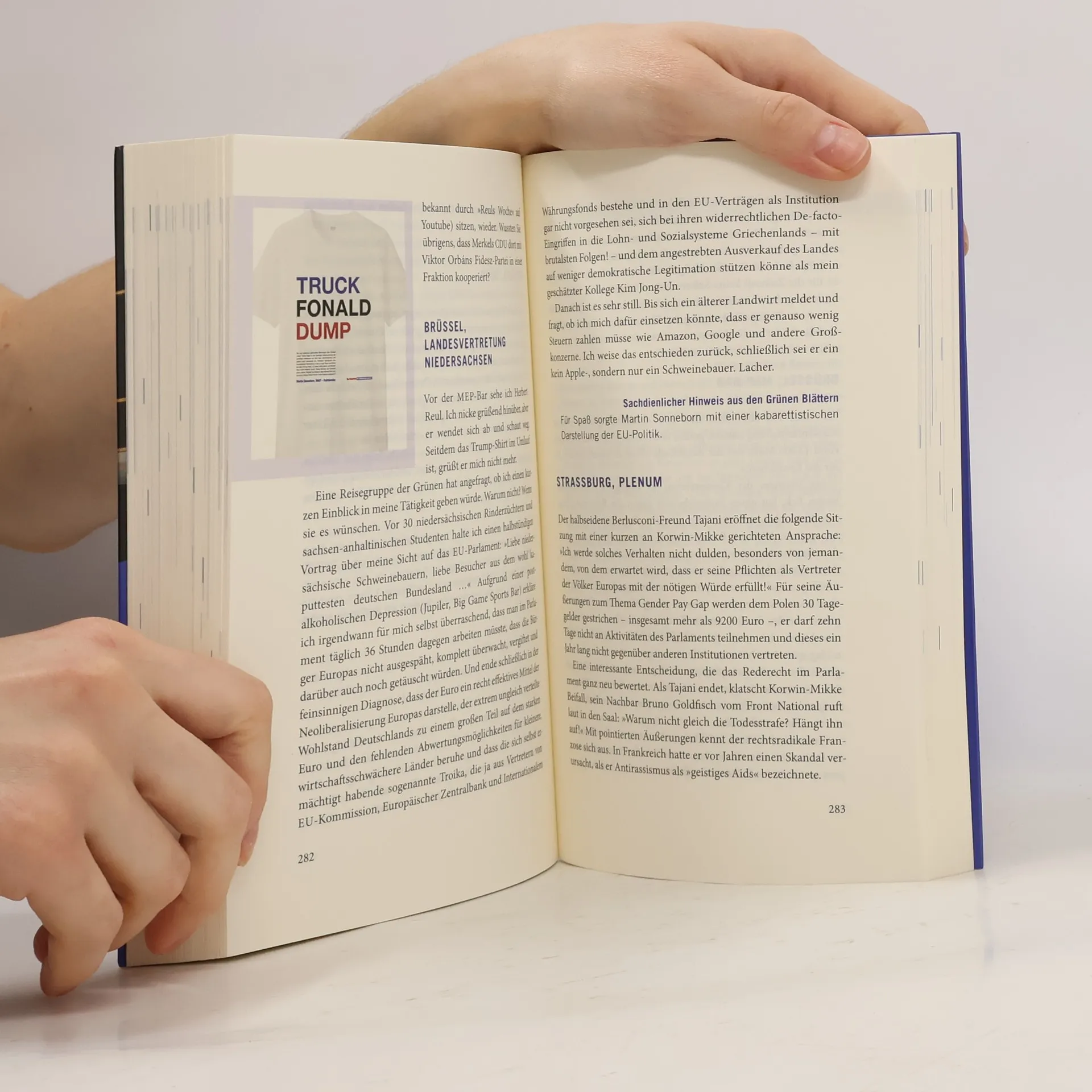 Im Frühjahr 2014 wird Martin Sonneborn, ehemaliger Chefredakteur von Titanic, unerwartet ins EU-Parlament gewählt – als einziger Abgeordneter seiner Partei. Neugierig macht er sich daran, herauszufinden, wie Europa funktioniert. Zunächst fühlt es sich an wie eine Klassenfahrt für Erwachsene, bei der Europäer mit 24 verschiedenen Muttersprachen aufeinandertreffen und gemeinsam Politik gestalten sollen. Die Jahre sind turbulent: Themen wie die EU-Erweiterung, Brexit, Datenschutz, die Katalonienkrise sowie die Beziehungen zu den USA und Russland stehen im Mittelpunkt. Sonneborn trifft auf eine bunte Mischung von Politikern, darunter einen polnischen Monarchisten, der das Frauenwahlrecht abschaffen möchte, und Alessandra Mussolini, die über Berlusconis Po-Liste ins Parlament gelangte. Auch bekannte Gesichter wie Martin Schulz, Beatrix von Strolch, Udo Voigt, Manfred Weber und Angela Merkel begegnen ihm. Sonneborn bietet einen humorvollen Einblick hinter die Kulissen des EU-Parlaments und sein Urteil ist meist unbestechlich. Leser können sich auf viele Lacher freuen und gleichzeitig verstehen, wie in Europa Politik gemacht wird.