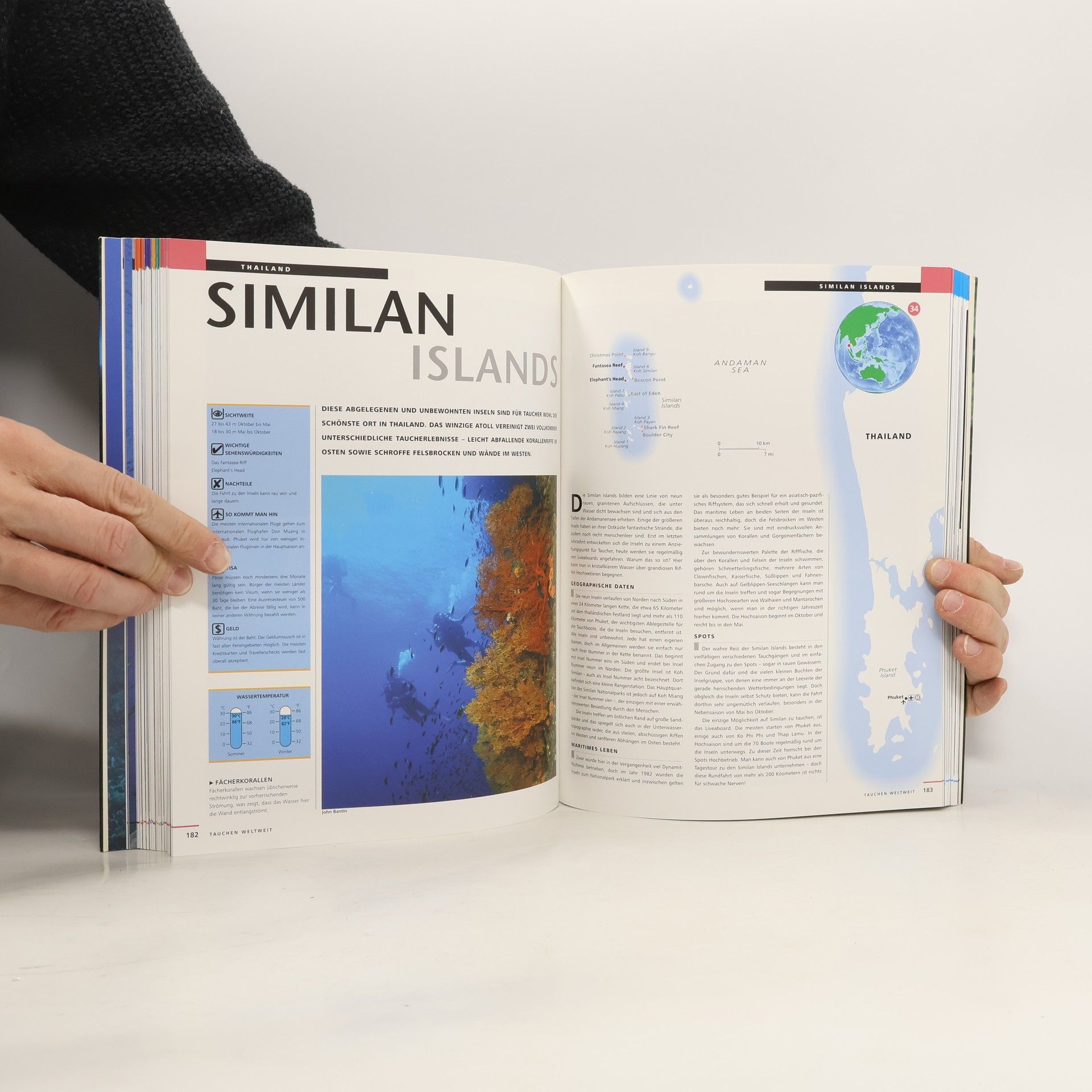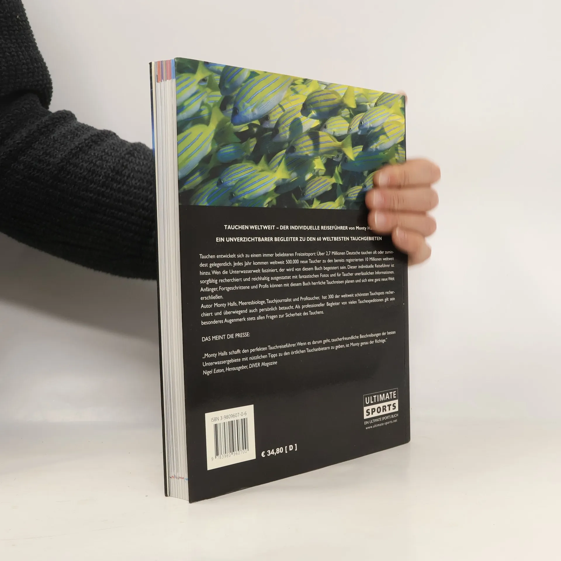 Tauchen weltweit – der individuelle Reiseführer Profitaucher Monty Halls, ist Tauchjournalist, Expeditionsleiter, Meeresbiologe, ehemaliger Offizier der Royal Marines, zweifacher Weltumsegler und erfahrener Tauch-Reiseleiter. Im Oktober erscheint sein phantastischer, deutschsprachiger Reiseführer “Tauchen weltweit“. Es handelt sich um die deutsche Ausgabe der wenige Wochen vorher erscheinenden englischen Version. Auf über 300 Seiten, jede Seite mit brillianten Fotos aus der Unterwasserwelt ausgestattet, werden die 60 schönsten Tauchreviere der Welt mit etwa 300 Spots beschrieben, bewertet und erklärt. Dieses Buch steckt anders als manch anderer Bildband voller nützlicher Informationen, die Taucher – vom Anfänger bis zum Profi - wirklich brauchen. Insbesondere zum Thema Sicherheit (etwa die nächste Dekompressionskammer), zu den Strömungsverhältnissen und Wassertemperaturen werden ausführliche und persönlich recherchierte Tipps geliefert. Jeder Tauchort wird durch Tabellen und Grafiken mit Standardinformationen zu Tiefe, Sichtweite und Schwierigkeitsgrad erschlossen. Neben Anreisetipps und nützlichen Adressen enthält das Buch ein Verzeichnis der wichtigsten deutschsprachigen Tauchbasen in den beschriebenen Revieren, soweit vorhanden.