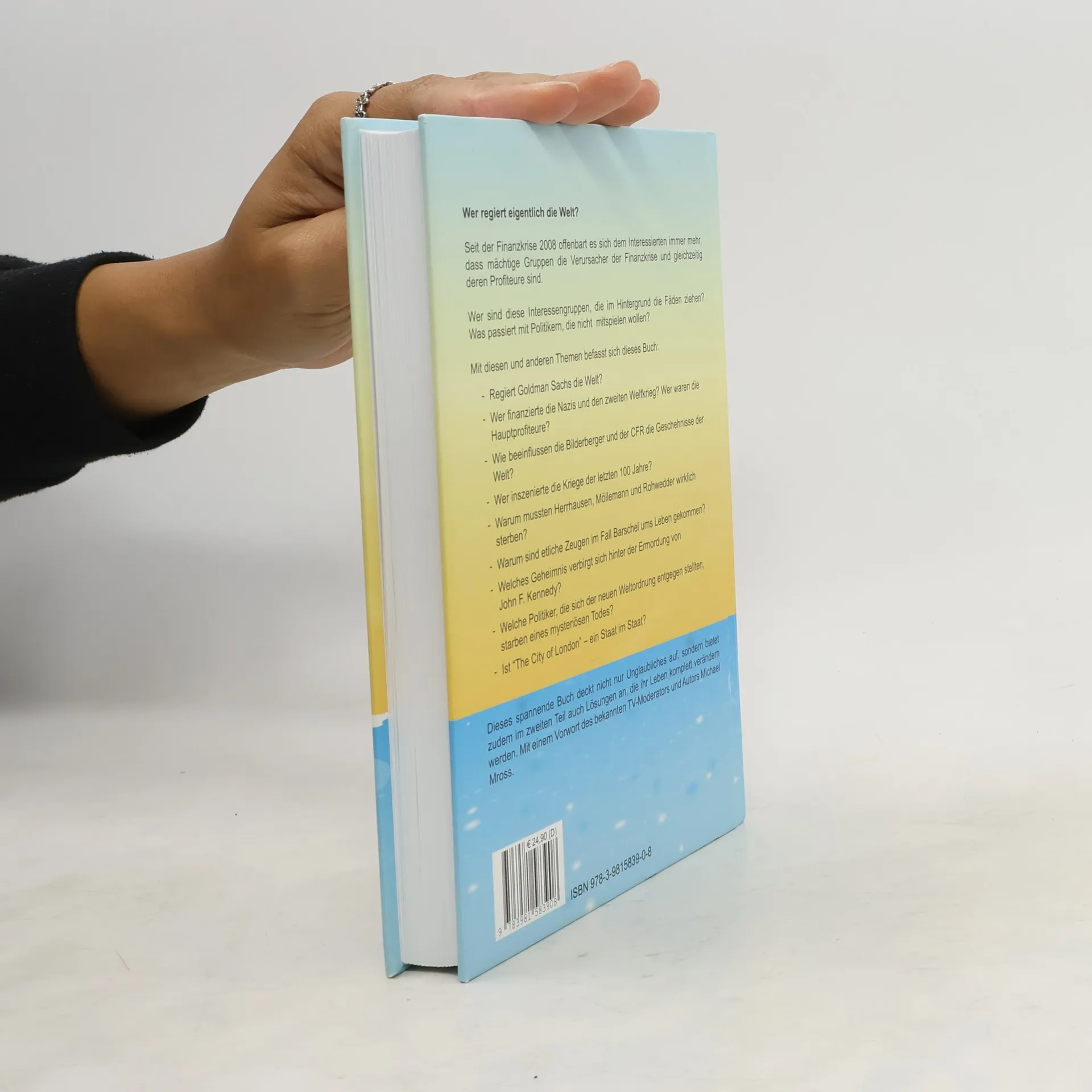 Die Epoch Times beschreibt, dass der Autor kein Untergangsszenario präsentiert, sondern auch notwendige Lösungsansätze für den Wandel aufzeigt. Beeindruckend sind die klare Ordnung und die geniale Auswahl von Zitaten. In zahlreichen spannenden und erschütternden Geschichten der jüngeren Vergangenheit, die vielen nur halb bewusst sind, lässt der Autor universelle Gesetzmäßigkeiten aufleuchten, die den großen inhaltlichen Gewinn ausmachen. Die sorgfältig ausgewählten Quellen belegen die intuitive Kraft eines Autors, der das Weltgeschehen durchschaut hat. Seit der Finanzkrise 2008 wird zunehmend deutlich, dass mächtige Gruppen sowohl die Verursacher als auch die Profiteure dieser Krise sind. Wer sind diese Interessengruppen, die im Hintergrund die Fäden ziehen? Was geschieht mit Politikern, die nicht mitspielen wollen? Das Buch behandelt Fragen wie: Regiert Goldman Sachs die Welt? Wer finanzierte die Nazis und den Zweiten Weltkrieg? Welche Rolle spielen die Bilderberger und der CFR? Wer inszenierte die Kriege der letzten 100 Jahre? Warum mussten Herrhausen, Möllemann und Rohwedder sterben? Welche Geheimnisse verbergen sich hinter der Ermordung von John F. Kennedy? Dieses spannende Werk deckt Unglaubliches auf und bietet im zweiten Teil Lösungen an, die das Leben der Leser verändern könnten. Mit einem Vorwort des bekannten TV-Moderators und Autors Michael Mross.