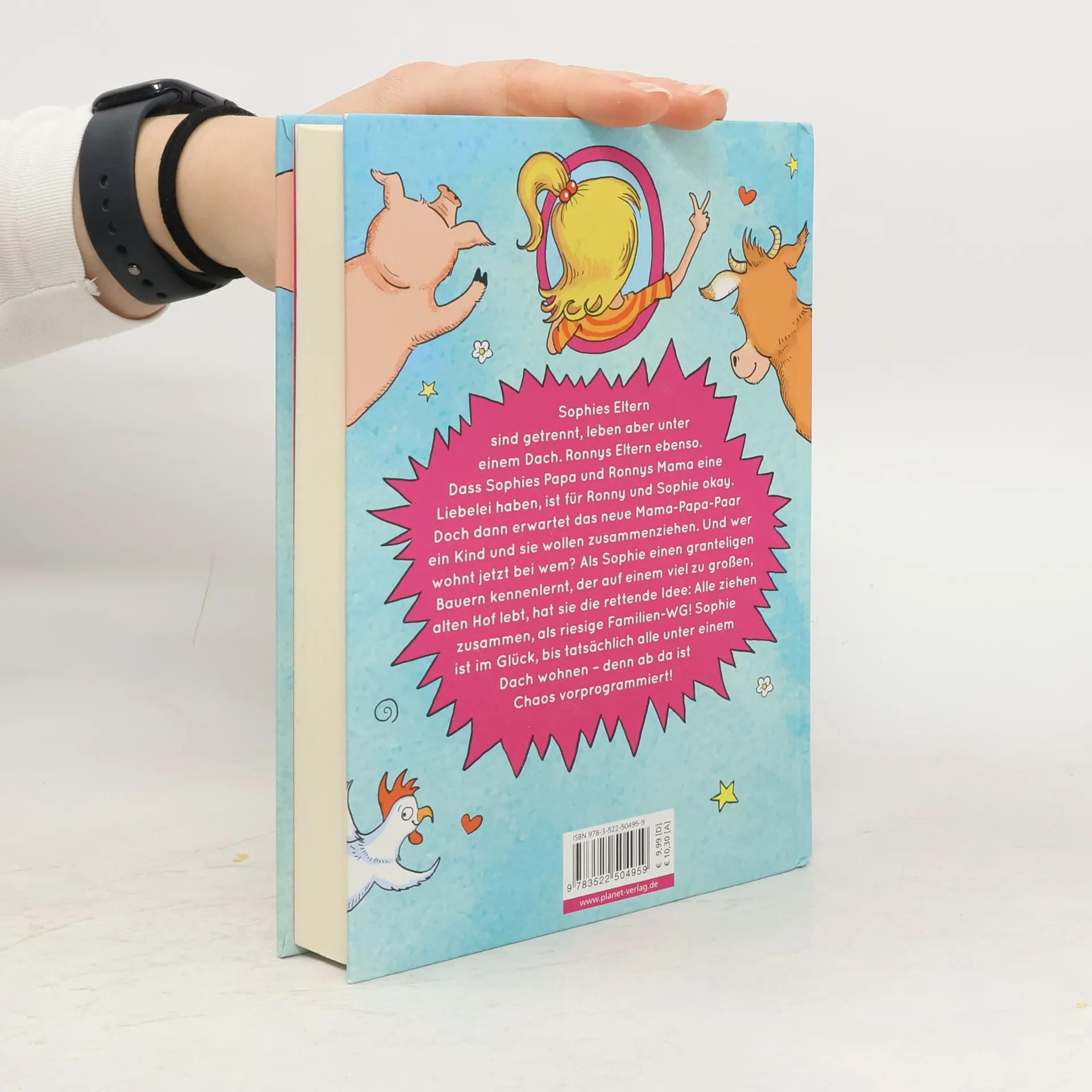 Sophies Eltern sind getrennt, leben aber unter einem Dach. Ronnys Eltern ebenso. Dass Sophies Papa und Ronnys Mama eine Liebelei haben, ist für Ronny und Sophie okay. Doch dann erwartet das neue Mama-Papa-Paar ein Kind und sie wollen zusammenziehen. Und wer wohnt jetzt bei wem? Als Sophie einen granteligen Bauern kennenlernt, der auf einem viel zu großen, alten Hof lebt, hat sie die rettende Idee: Alle ziehen zusammen, als riesige Familien-WG! Sophie ist im Glück, bis tatsächlich alle unter einem Dach wohnen – denn ab da ist Chaos vorprogrammiert!