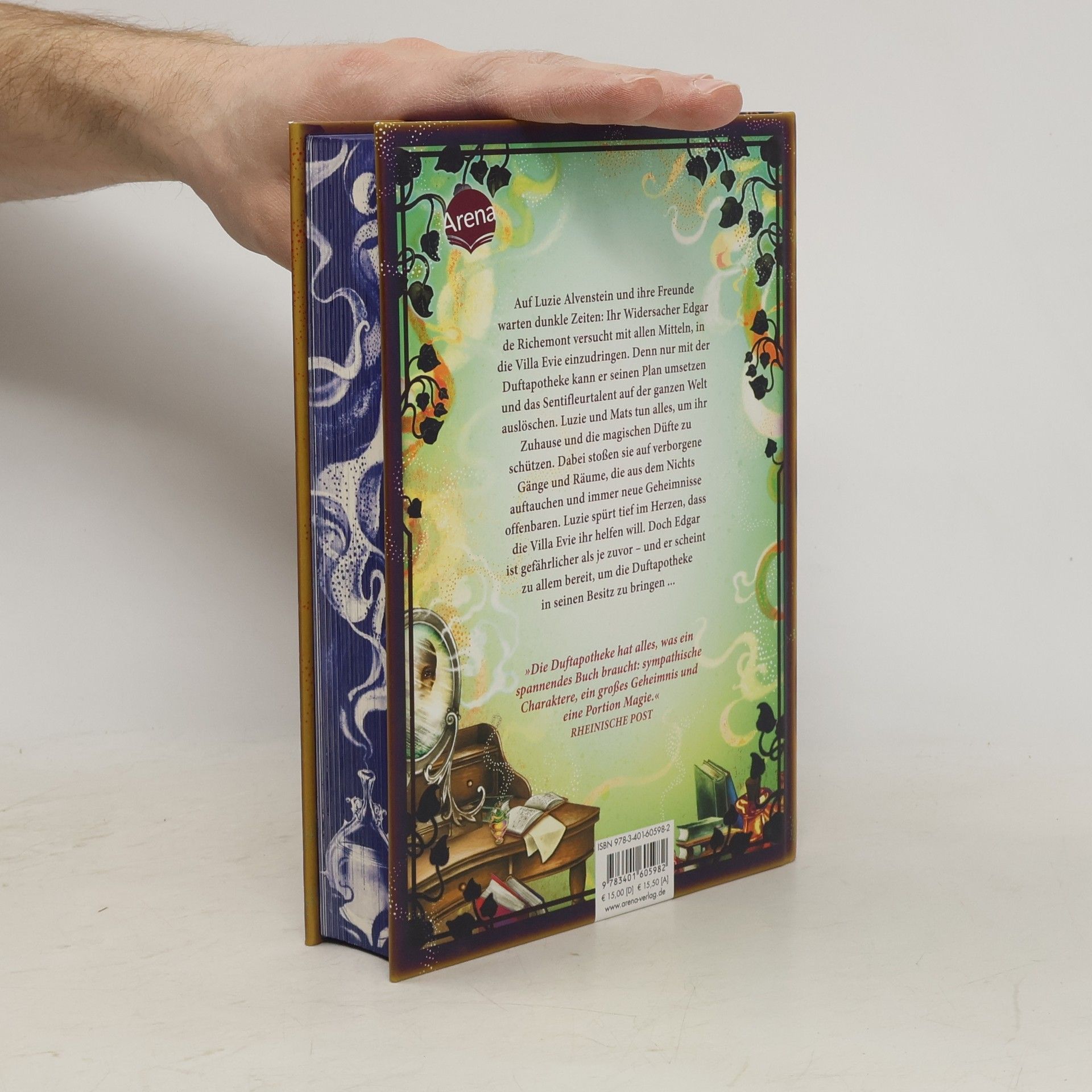 Dieses Buch wurde in zwei Versionen veröffentlicht: mit und ohne Farbschnitt. Die magischen Düfte sind in Gefahr, und nur Luzie kann sie retten! Luzie Alvenstein und ihre Freunde stehen vor dunklen Zeiten, da ihr Widersacher Edgar de Richemont alles daran setzt, in die Villa Evie einzudringen. Nur mit der Duftapotheke kann er seinen Plan verwirklichen und das Sentifleurs-Talent weltweit auslöschen. Luzie und Mats müssen ihr Zuhause und die magischen Düfte beschützen. Dabei entdecken sie verborgene Gänge und Räume, die immer mehr Geheimnisse enthüllen. Luzie spürt, dass die Villa Evie ihr helfen will, doch Edgar ist gefährlicher als je zuvor und bereit, alles zu tun, um die Duftapotheke für sich zu gewinnen. Spannende, magische Abenteuer erwarten alle Mädchen und Jungen ab 10 Jahren. Fantasievoll erzählt von Erfolgsautorin Anna Ruhe, begleitet von detailverliebten Schwarz-weiß-Illustrationen von Claudia Carls. Die Reihe „Die Duftapotheke“ umfasst mehrere Bände und wurde mit dem Leipziger Lesekompass 2018 und der Ulmer Unke 2018 ausgezeichnet. Die Presse lobt die Geschichten als fantasievoll und sinnlich, und sie werden als „echt duftes Kinderbuch“ empfohlen.