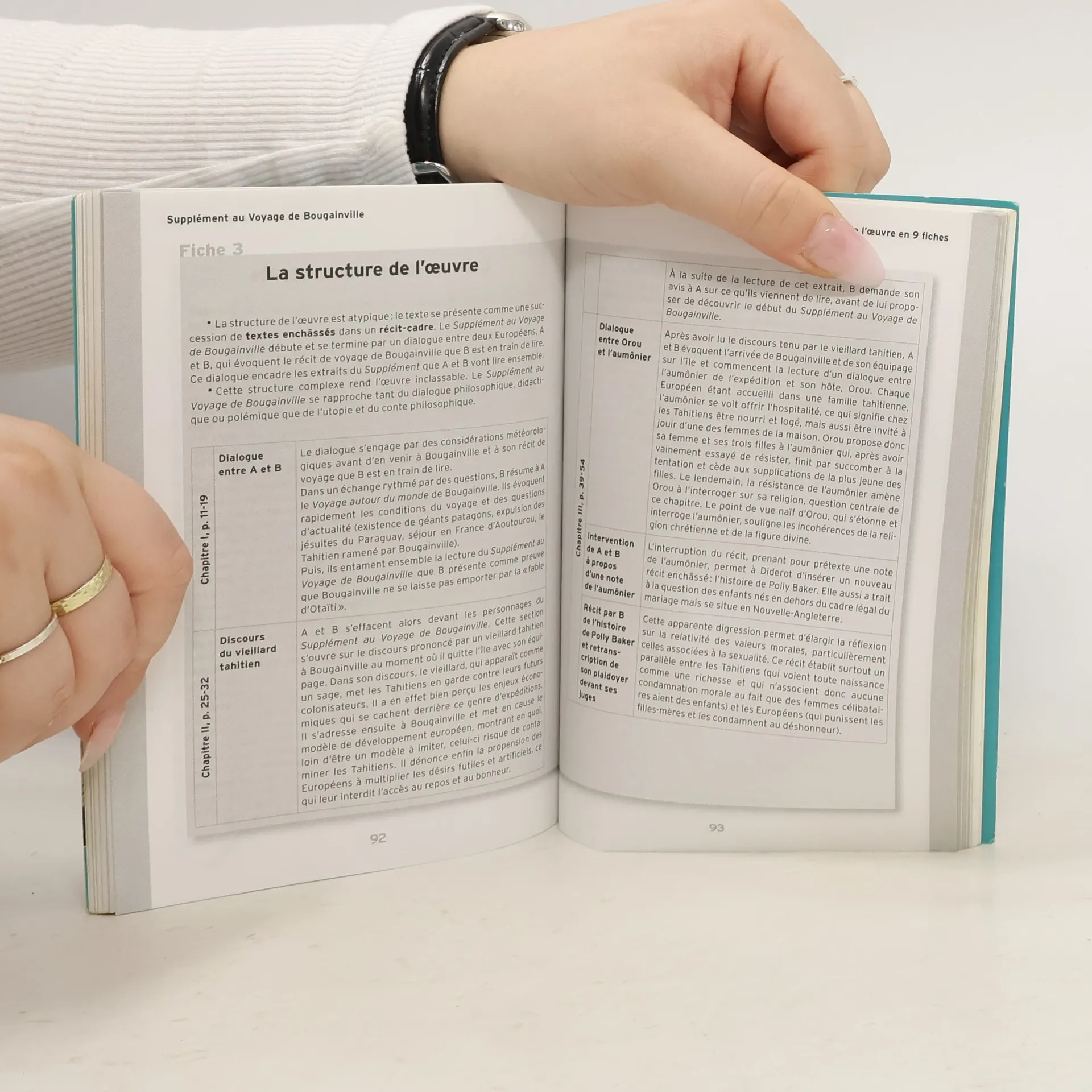 Les protagonistes du dialogue de Diderot, A et B, discutent du Voyage autour du monde du navigateur français Louis Antoine de Bougainville récemment paru (en 1771). B propose de parcourir un prétendu Supplément qui remet en question certaines prétendues évidences énoncées par Bougainville, premier français ayant fait le tour du monde. Deux passages de ce Supplément sont enchâssés dans la discussion : Les adieux du vieillard, et le long Entretien de l'aumônier et d'Orou. Source: fr.wikipedia.org