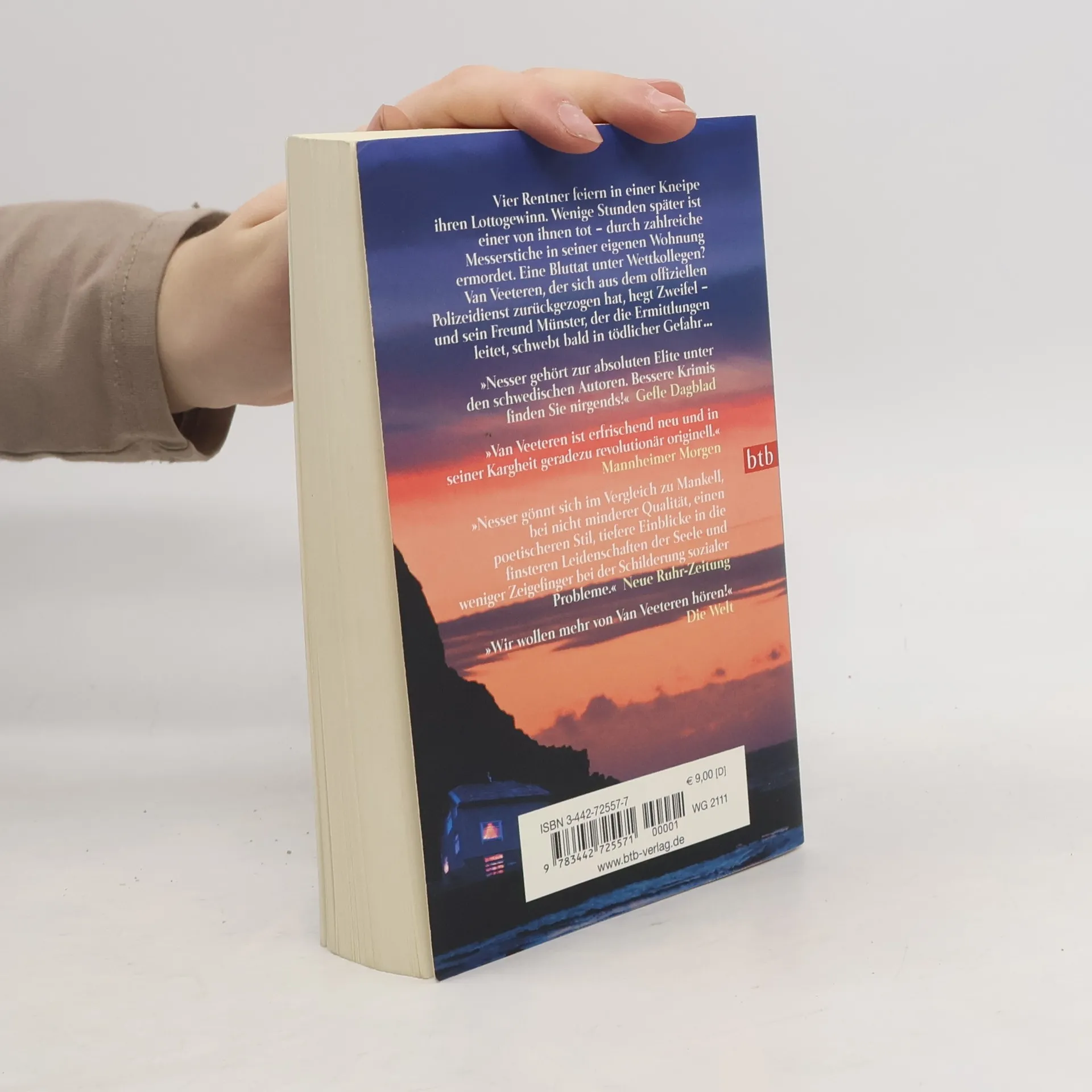 Vier Rentner feiern in einer Kneipe ihren Lottogewinn. Reichlich angetrunken machen sich die vier auf den Heimweg. Stunden später ist einer von ihnen tot, hinterrücks erstochen in seiner eigenen Wohnung. Kommissar Münster übernimmt den Fall, denn Kommissar Van Veeteren hat sich für ein Jahr beurlauben lassen und arbeitet in einem Antiquariat. Doch keiner seiner Kollegen glaubt, dass er von der Ermittlungsarbeit lassen kann. Und in der Tat holt sich Münster schon bald Rat bei Van Veeteren, denn der Fall wird immer mysteriöser. So präsentiert sich die Witwe des Opfers als Täterin und legt ein Geständnis ab. Van Veeteren ist überzeugt, dass sie lügt. „Derart eigenwillig und eigenständig erzählt kaum jemand Kriminalgeschichten.“ WDR - „Wir wollen mehr von Van Veeteren hören!“ Die Welt