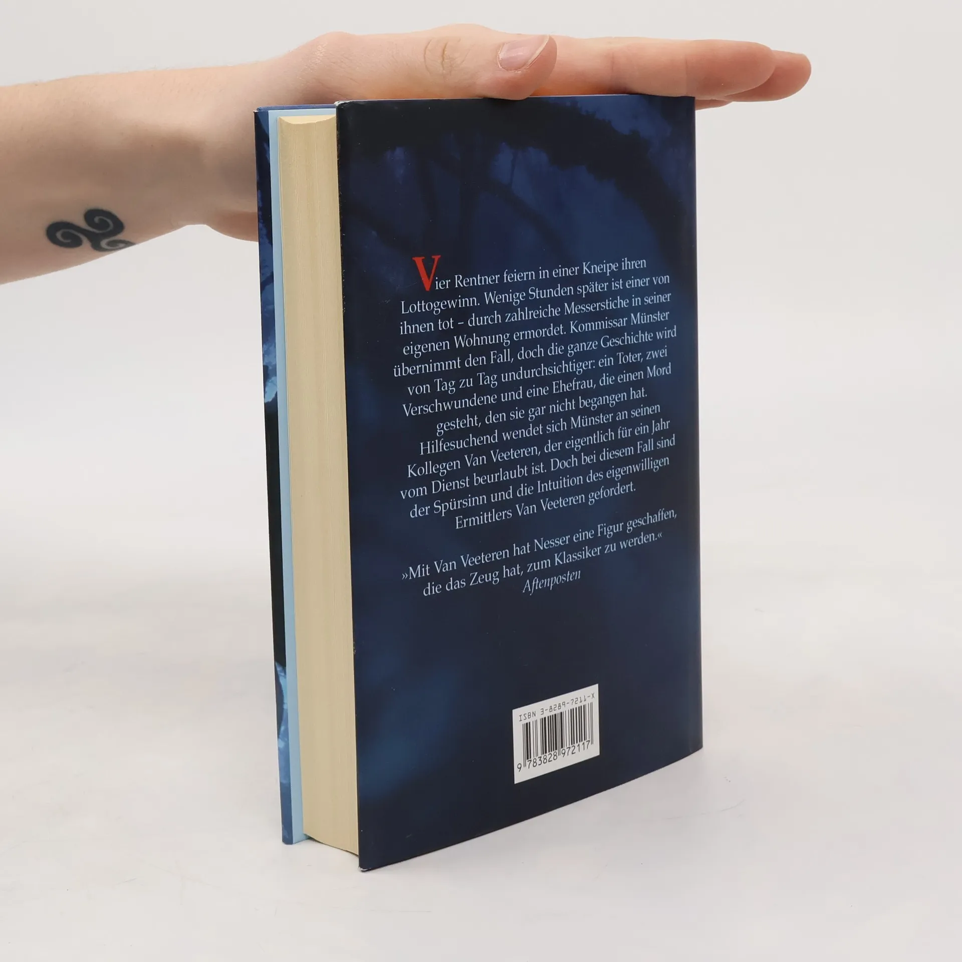 Vier Rentner feiern in einer Kneipe ihren Lottogewinn. Reichlich angetrunken machen sich die vier auf den Heimweg. Stunden später ist einer von ihnen tot, hinterrücks erstochen in seiner eigenen Wohnung. Kommissar Münster übernimmt den Fall, denn Kommissar Van Veeteren hat sich für ein Jahr beurlauben lassen und arbeitet in einem Antiquariat. Doch keiner seiner Kollegen glaubt, dass er von der Ermittlungsarbeit lassen kann. Und in der Tat holt sich Münster schon bald Rat bei Van Veeteren, denn der Fall wird immer mysteriöser. So präsentiert sich die Witwe des Opfers als Täterin und legt ein Geständnis ab. Van Veeteren ist überzeugt, dass sie lügt. „Derart eigenwillig und eigenständig erzählt kaum jemand Kriminalgeschichten.“ WDR - „Wir wollen mehr von Van Veeteren hören!“ Die Welt