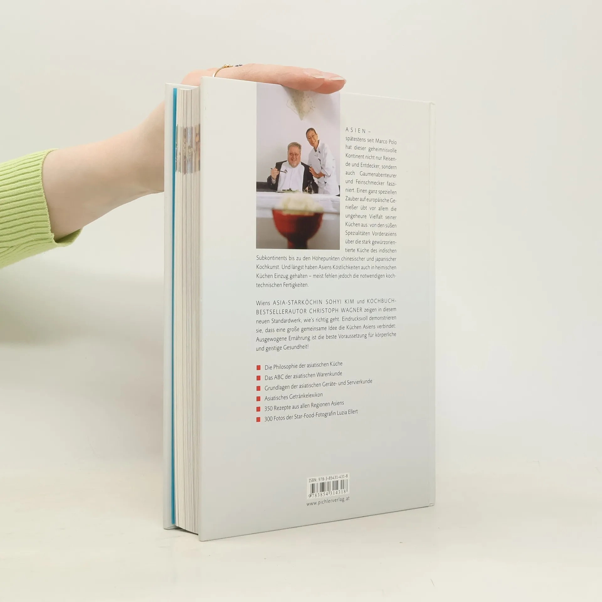 Asien hat seit Marco Polo Reisende, Entdecker und Feinschmecker in seinen Bann gezogen. Die Vielfalt der Küchen fasziniert besonders europäische Genießer: von den süßen Spezialitäten Vorderasiens über die gewürzintensive indische Küche bis zu den Höhepunkten der chinesischen Kochkunst. Auch die Meeresküche Thailands, Sushi und Sukiyaki aus Japan sowie die Reis- und Nudelgerichte der Philippinen bereichern das kulinarische Erlebnis. Inzwischen sind viele asiatische Köstlichkeiten in heimischen Küchen angekommen, und Gewürze wie Kreuzkümmel, Gelbwurz, Koriander und Chili sind in Supermärkten weit verbreitet. Eine harmonische Begegnung mit den Genüssen Asiens steht somit nichts mehr im Wege, vorausgesetzt, man beherrscht die erforderlichen kochtechnischen Fertigkeiten. Die Asia-Starköchin Sohyi Kim und Kochbuch-Bestsellerautor Christoph Wagner verstehen die asiatische Küche als facettenreiches Ganzes und präsentieren in diesem Standardwerk, wie man die Vielfalt der asiatischen Küchen richtig zubereitet. Sie demonstrieren eindrucksvoll, dass trotz regionaler Unterschiede eine gemeinsame Idee besteht: Ausgewogene Ernährung ist die beste Voraussetzung für körperliche und geistige Gesundheit!