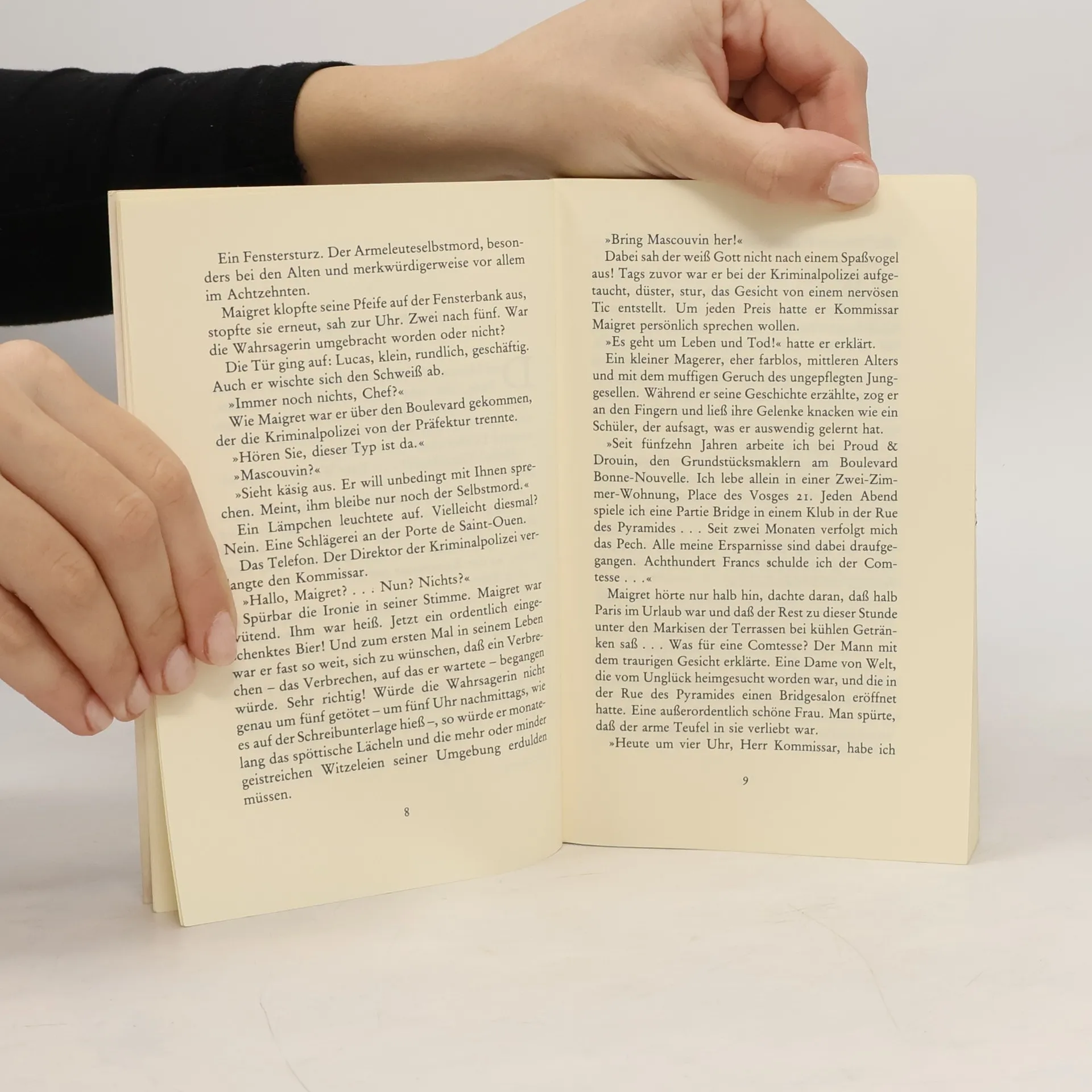 „Morgen um fünf Uhr nachmittags töte ich die Wahrsagerin. Gezeichnet: Picpus.“ Maigret nimmt diesen Brief ernst und veranlaßt, daß in Paris vierhundertzweiundachtzig Hellseherinnen überwacht werden. Die Hellseherin Jeanne, die trotz dieser Maßnahmen erstochen wird, kennt keiner.