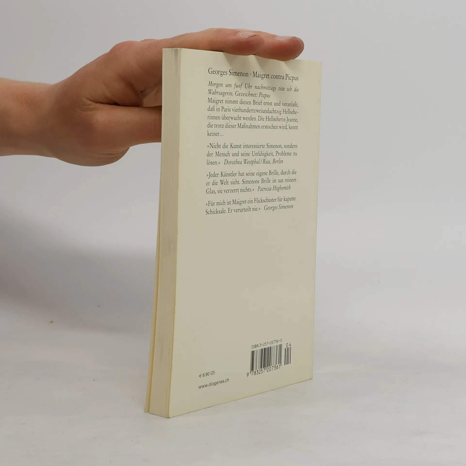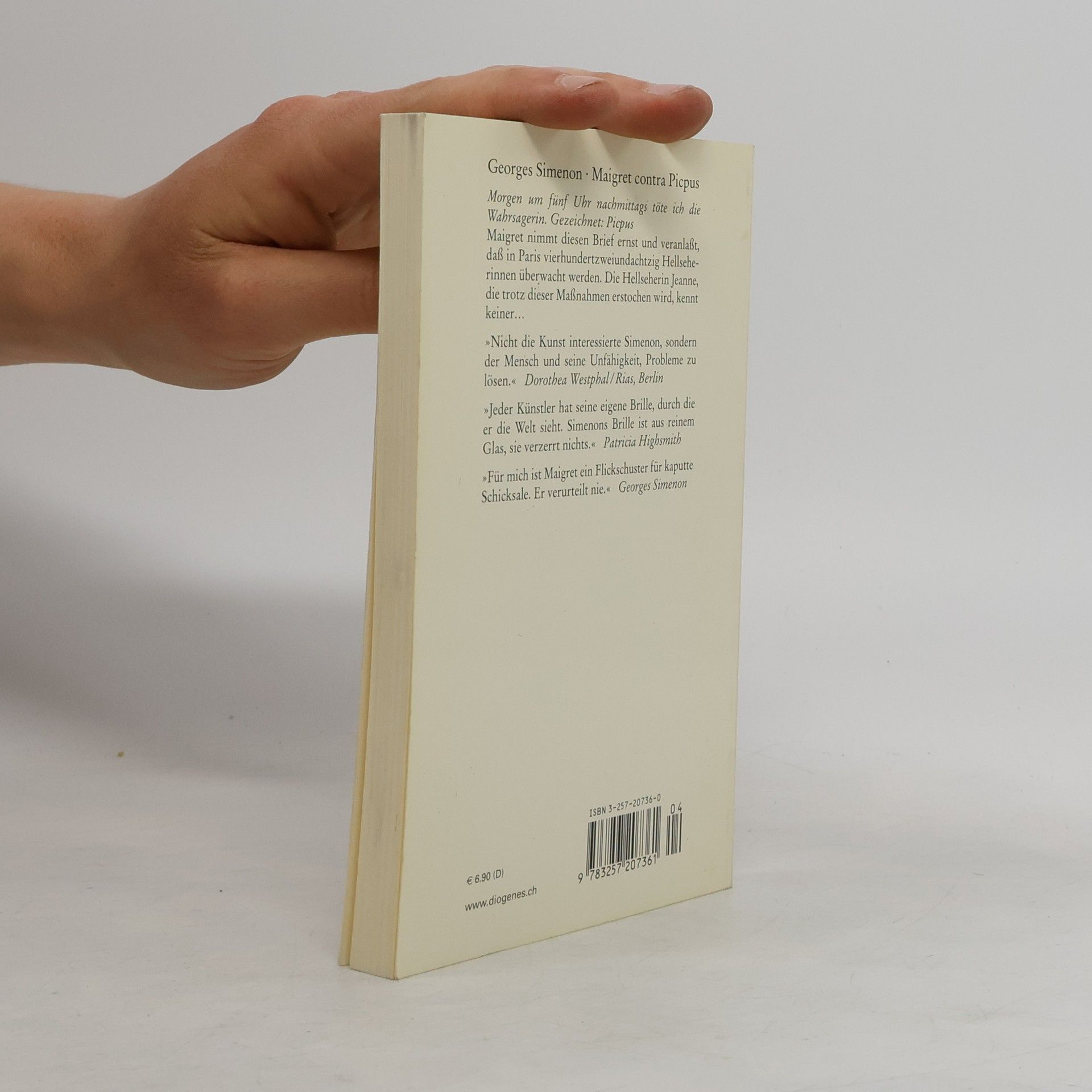 „Morgen um fünf Uhr nachmittags töte ich die Wahrsagerin. Gezeichnet: Picpus.“ Maigret nimmt diesen Brief ernst und veranlaßt, daß in Paris vierhundertzweiundachtzig Hellseherinnen überwacht werden. Die Hellseherin Jeanne, die trotz dieser Maßnahmen erstochen wird, kennt keiner.
