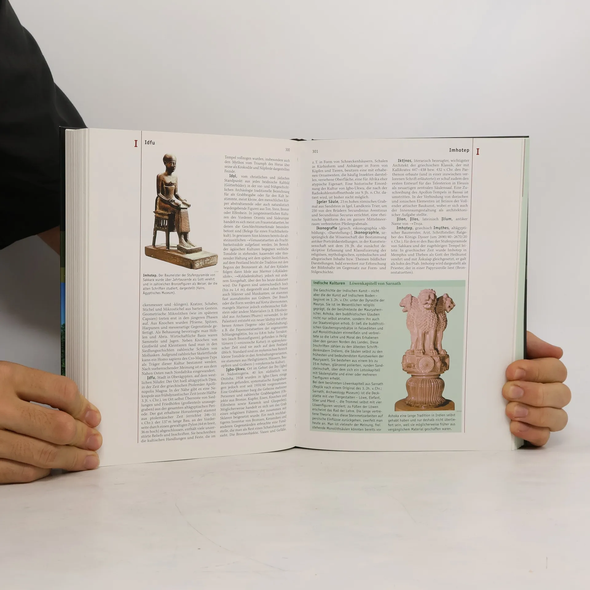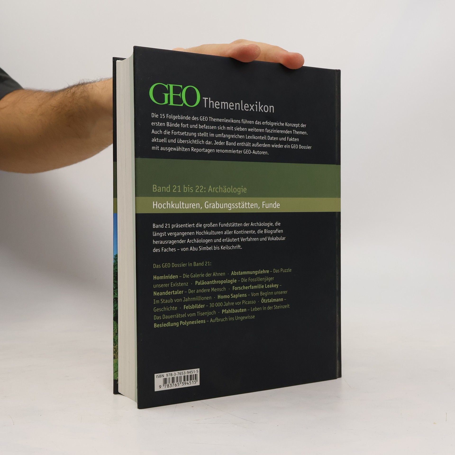 Mit 2 Archäologie-Bänden wird das Geo-Themenlexikon fortgesetzt (zuletzt Band. 20 "Atlas zur Geschichte", BA 9/07). Das 2-bändige Nachschlagewerk erschliesst mit je einem Artikel- und Dossierteil alles archäologisch Wissenswerte von den Anfängen der Menschheit bis zu den weltweiten Hochkulturen. Im 1. Teil geben rund 2.200 alphabetisch geordnete Stichwortartikel und zusätzliche Infokästen und Sonderartikel (Architektur, Geldwirtschaft, Kalender) Auskunft zu Personen, Institutionen, Fundstätten und Sachbegriffen. Die eingängigen Artikel, von Fachwissenschaftlern unter Berücksichtigung neuester Forschungsergebnisse verfasst, wurden aus der Brockhaus-Enzyklopädie zusammengestellt und teilweise ergänzt. Der 2. Teil enthält im 1. Band Geo-Reportagen aus den Jahren 1997-2005 zur Entwicklungsgeschichte des Menschen. Beide Teile sind durch ein Verweissystem miteinander verbunden. Mit seinen vielen Abbildungen, Lageplänen, Karten, chronologischen Übersichten ist das Archäologie-Lexikon eine materialreiche und aktuelle Grundlage für das Verständnis archäologischen Geschehens und kann empfohlen werden. (2 A, S)