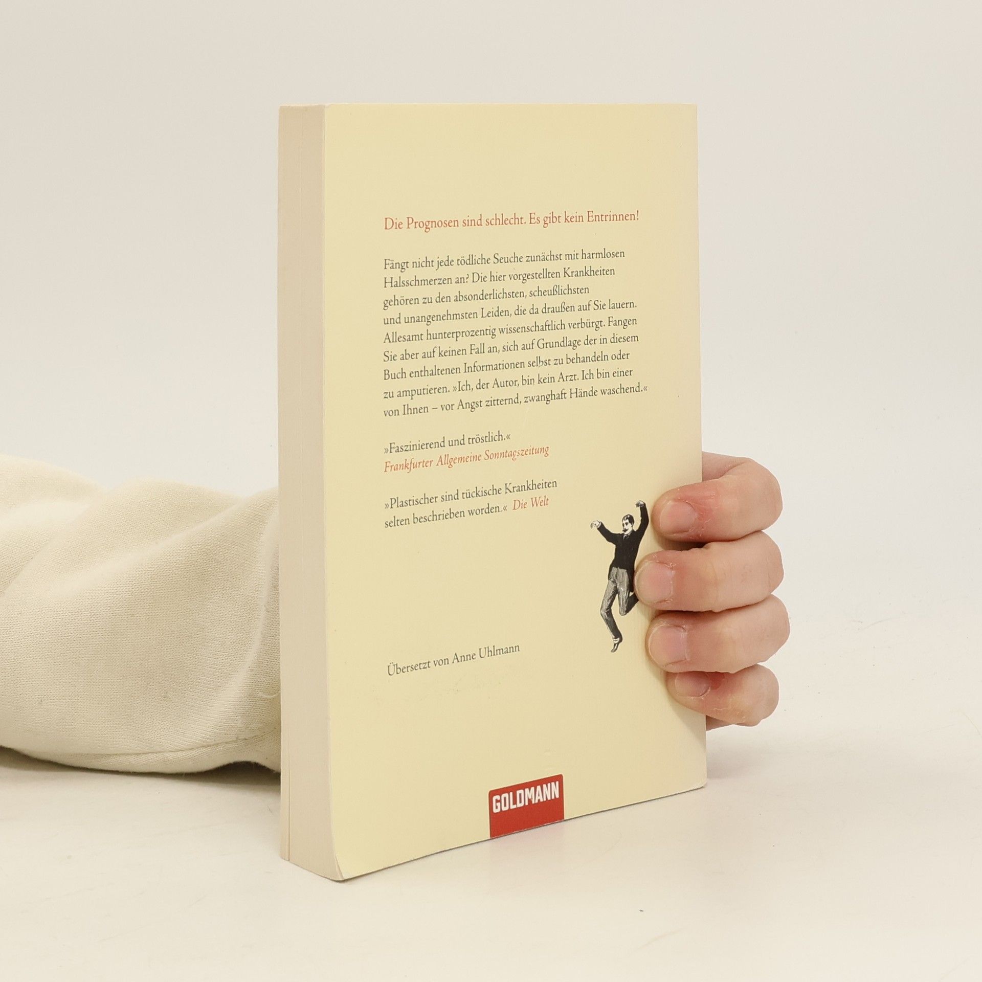 Die gute Nachricht: Sie werden nicht aufhören zu lachen - die schlechte Nachricht: Jedes Wort ist wahr! Dennis DiClaudio hat die 45 hartnäckigsten und gemeinsten Krankheiten in einem unterhaltsamen Handbuch für eingebildete Kranke zusammengestellt. Damit werden Sie auf jeder Party zum Gesprächsmittelpunkt, wenn Sie über die gefährlichsten oder unheimlichsten Erkrankungen plaudern. Jede Krankheit wird detailliert mit Symptomen, Behandlungsmöglichkeiten, Prognosen und Präventionstipps beschrieben. Klassische medizinische Zeichnungen ergänzen die Einträge und machen das Werk zu einem Muss für angehende und praktizierende Hypochonder. Die hier vorgestellten Krankheiten gehören zu den schlimmsten und seltsamsten, die da draußen lauern. Dieses Buch ist jedoch nicht als ultimative Weisheit gedacht. Sollten Sie aufgrund Ihrer Symptome zu dem Schluss kommen, dass Sie an einer ernsthaften Krankheit leiden, suchen Sie bitte eine zweite Meinung. Fragen Sie Nachbarn oder Mitarbeiter, aber beginnen Sie auf keinen Fall, sich selbst zu behandeln oder gar zu amputieren. Ich, der Autor, bin kein Arzt, sondern jemand, der vor Angst zittert und zwanghaft die Hände wäscht. Es gibt verlässlichere Autoritäten, also finden Sie diese. * Ein Lesevergnügen für Liebhaber des schwarzen Humors * Eine Art Schotts Sammelsurium für Hypochonder * Das ideale Geschenk für eingebildete Kranke * Das beste Hilfsmittel, um Ihrem Hausarzt auf die Nerven zu gehe