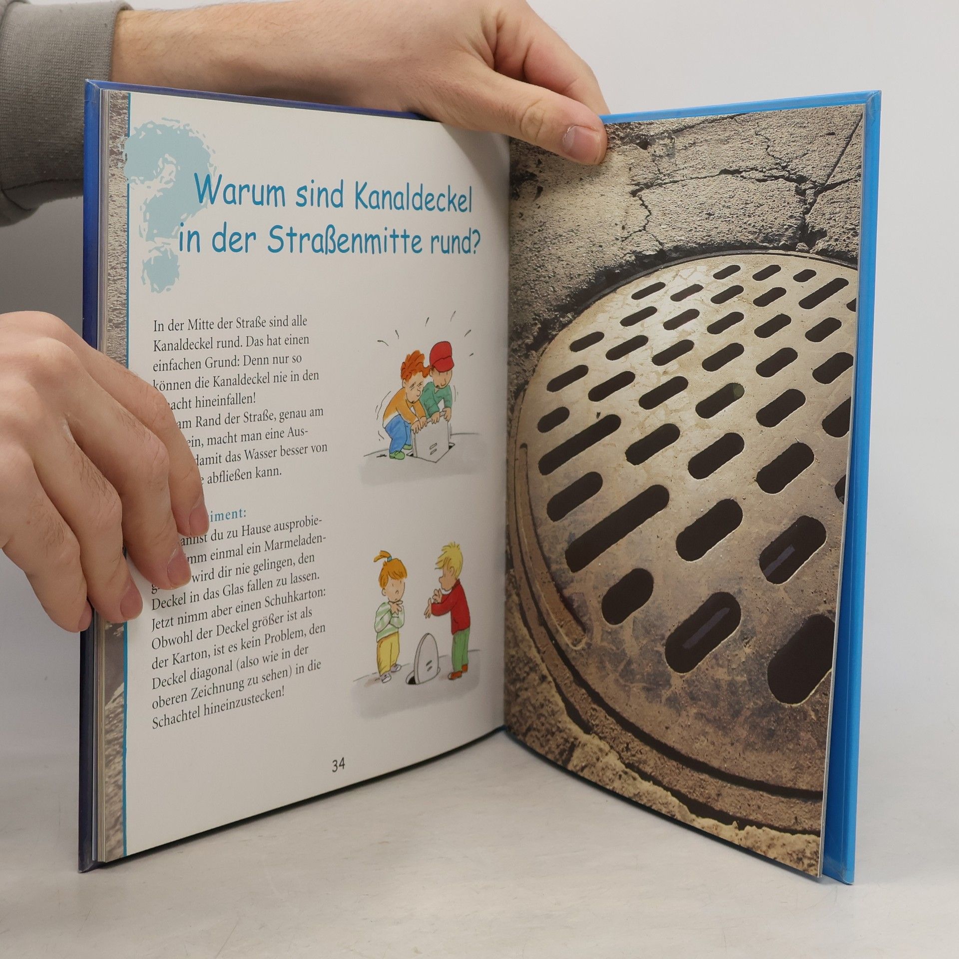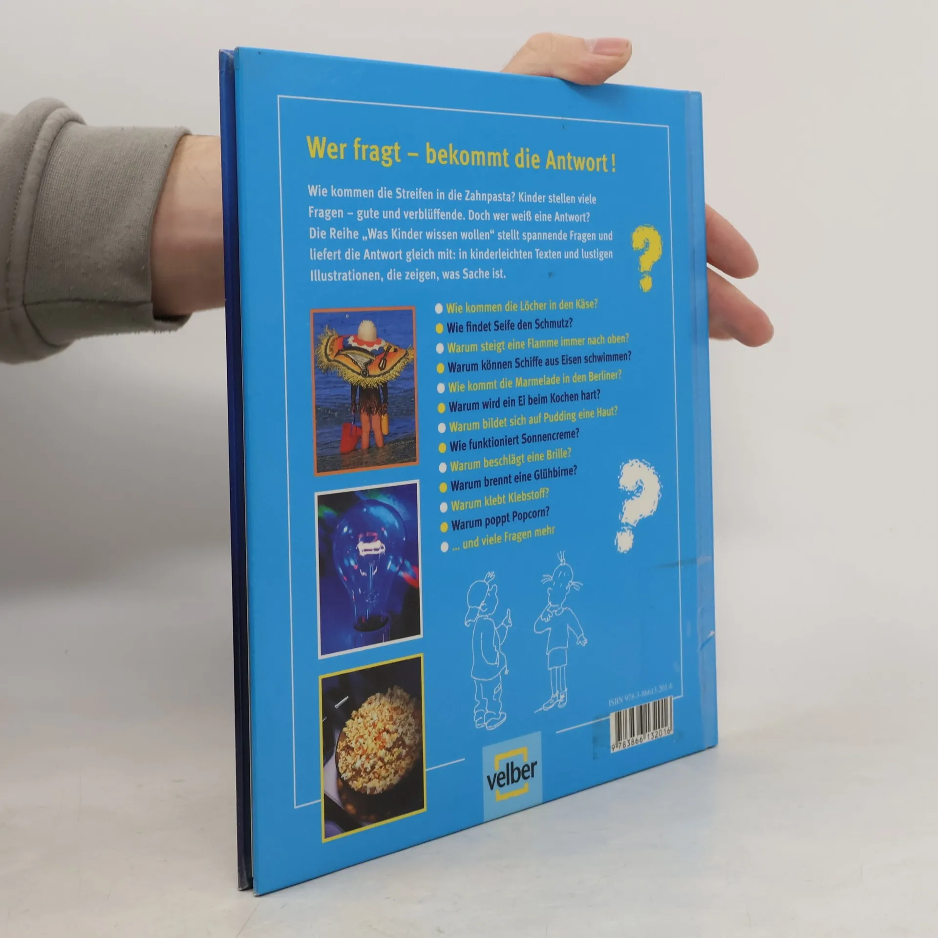 Warum sind Kanaldeckel rund? Warum sind manche Eier braun und andere weiß? Solche verblüffenden Fragen werden in diesem Buch informativ und spannend behandelt. Es geht um alltägliche Wunder: Wie kommen die Löcher in den Käse? Warum rutscht man auf Eis? Warum wird ein Ei beim Kochen hart? Die Autorin hat den Fragen von Kindern genau zugehört und gibt klare, kindgerechte Antworten, die den Verständnisrahmen von 7-9-Jährigen respektieren. Manche Erklärungen sind sogar für jüngere Kinder nachvollziehbar. Die Texte nehmen die Neugier der Kinder ernst und bieten auf der rechten Seite ganzseitige Fotos, die oft mit Witz und Humor das Thema verdichten. Fragen wie „Warum poppt Popcorn?“ werden auf unterhaltsame Weise behandelt. Die Abbildungen fungieren nicht nur als Illustrationen, sondern auch als Metaphern, die das Zusammenspiel von Kind und Wissen verdeutlichen. Dieses hochwertige Kindersachbuch überzeugt durch seine Fragestellungen, Ansprüche, Veranschaulichungen und Sprache. Es ist ab 7 Jahren sehr empfehlenswert und verdient eine Auszeichnung.