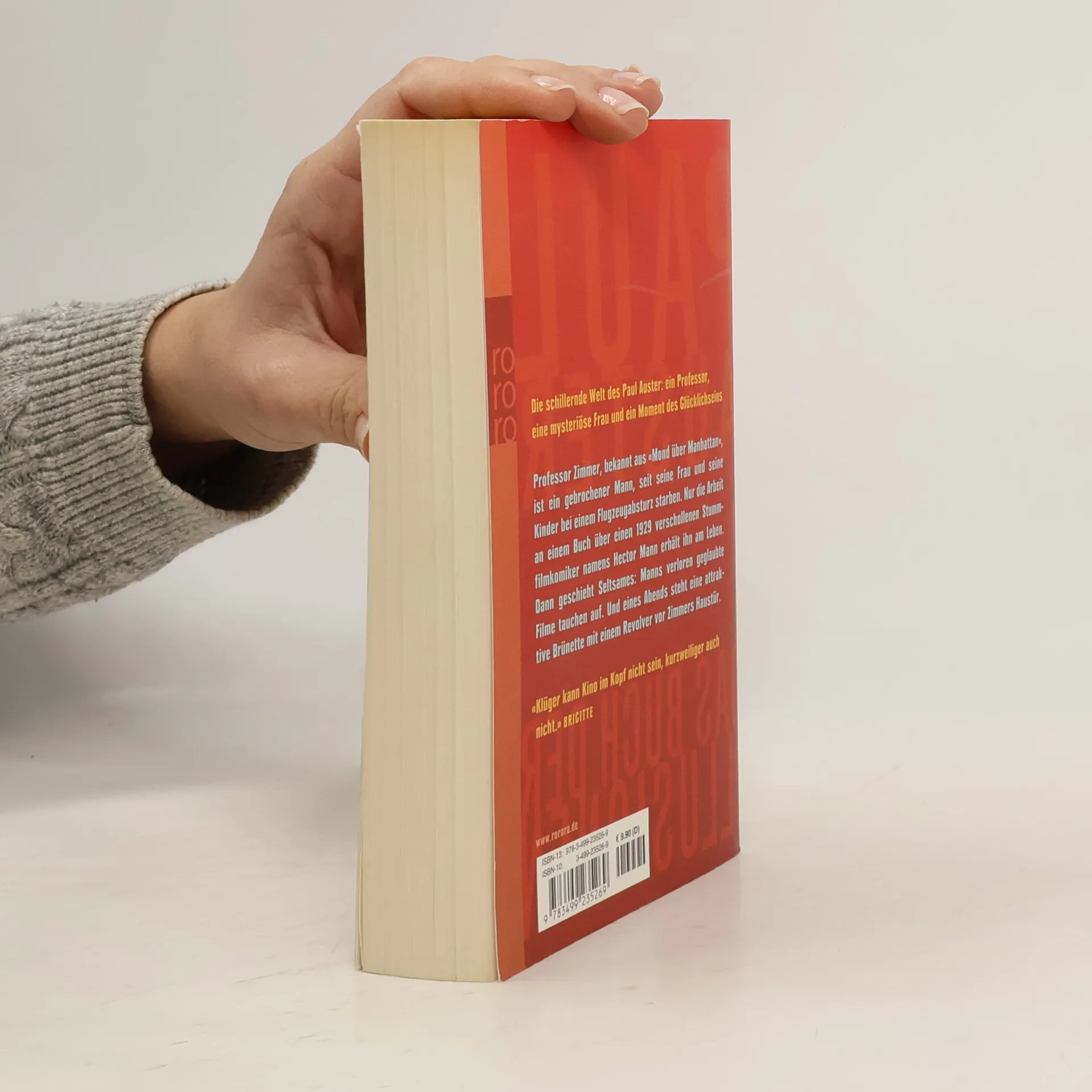 Die schillernde Welt des Paul Auster: Ein Professor, eine Brünette und ein Moment des Glücklichseins Professor Zimmer, bekannt aus “Mond über Manhattan”, ist ein gebrochener Mann, seit seine Frau und seine Kinder bei einem Flugzeugabsturz starben. Nur die Arbeit an einem Buch über einen 1929 verschollenen Stummfilmkomiker namens Hector Mann erhält ihn am Leben. Dann geschieht Seltsames: Manns verloren geglaubte Filme tauchen auf. Und eines Abends steht eine attraktive Blondine mit einem Revolver vor Zimmers Haustür.