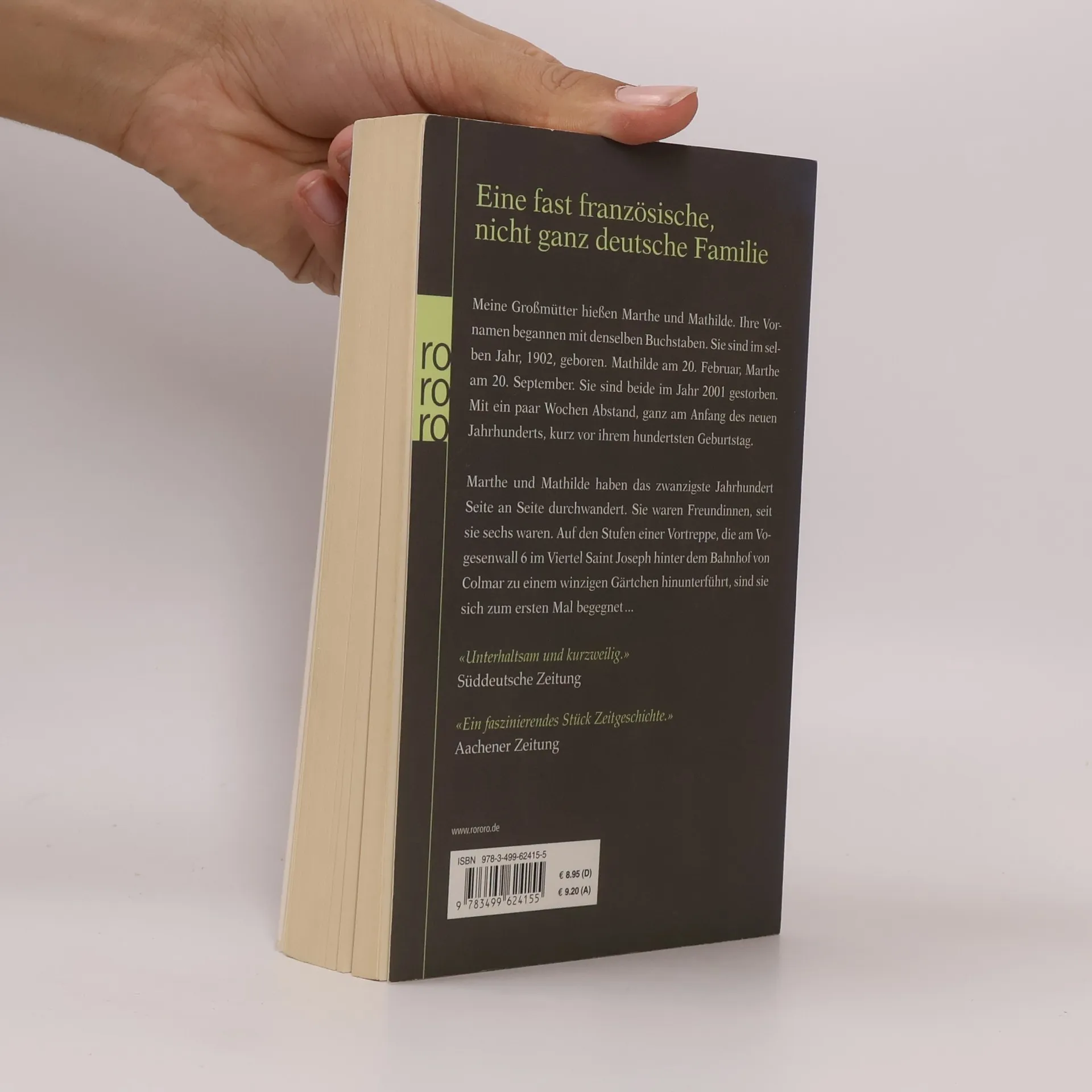 Eine fast französische, nicht ganz deutsche Familie.Meine Großmütter hießen Marthe und Mathilde. Ihre Vornamen begannen mit denselben Buchstaben. Sie sind im selben Jahr, 1902, geboren. Mathilde am 20. Februar, Marthe am 20. September. Sie sind beide im Jahr 2001 gestorben. Mit ein paar Wochen Abstand, ganz am Anfang des neuen Jahrhunderts, kurz vor ihrem hundertsten Geburtstag. Marthe und Mathilde haben das zwanzigste Jahrhundert Seite an Seite durchwandert. Sie waren Freundinnen, seit sie sechs waren. Auf den Stufen der Vortreppe, die am Vogesenwall 6 im Viertel Saint Joseph hinter dem Bahnhof von Colmar zu einem winzigen Gärtchen hinunterführt, sind sie sich zum ersten Mal begegnet...