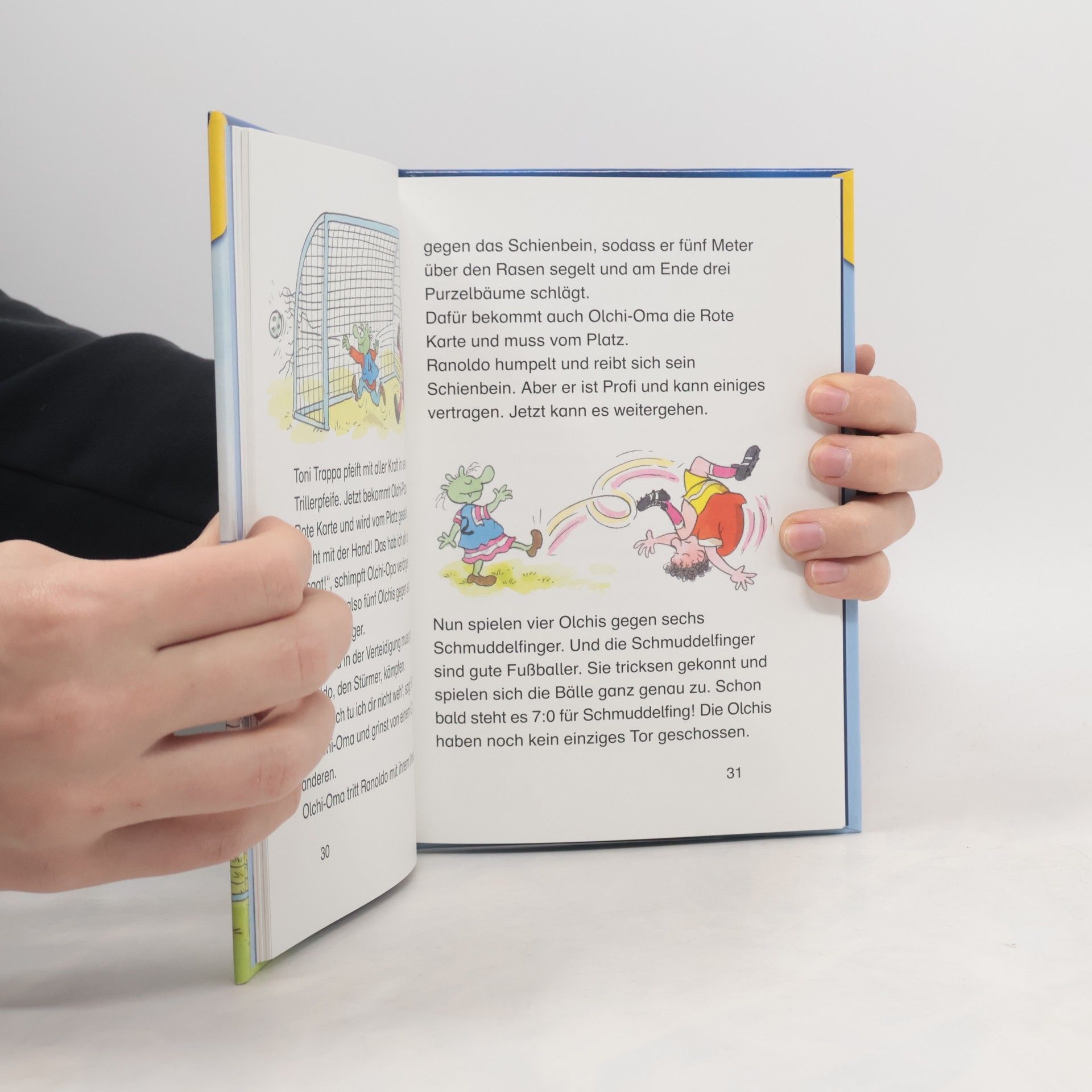 1:0 für die Olchis! Fußballspaß aus Schmuddelfing Was ist denn das? Als die Olchi-Kinder auf dem Müllberg einen alten Fußball finden, wissen sie nicht, was sie damit anfangen sollen. Vielleicht mit einer leckeren Soße verspeisen? Nur der Olchi-Opa kennt sich aus und weiß, wofür so ein Ball gut ist. Schließlich war er früher selbst mal Fußballspieler! Er schlägt den Olchis ein Freundschaftsspiel gegen den 1. FC Schmuddelfing vor. Aber haben die Olchis überhaupt eine Chance gegen diese Profis? Lesen lernen mit „Büchersterne“ für die 2./3. Klasse: einfacher Satzbau, fortgeschrittenes Textniveau und ein höherer Textanteil, der die Lesefähigkeit geübter Leseanfänger fördert. Dazu ein Leserätsel im Anhang.