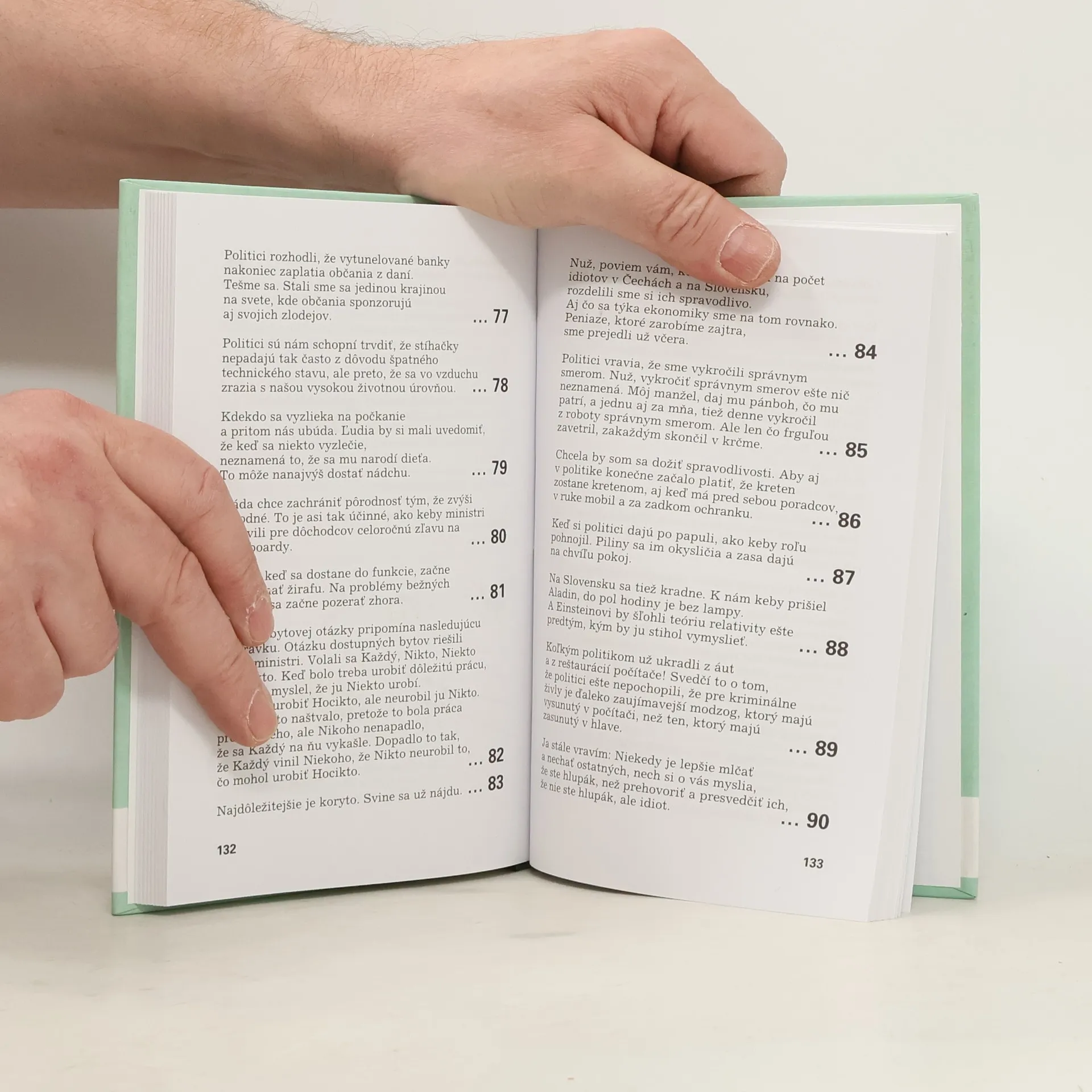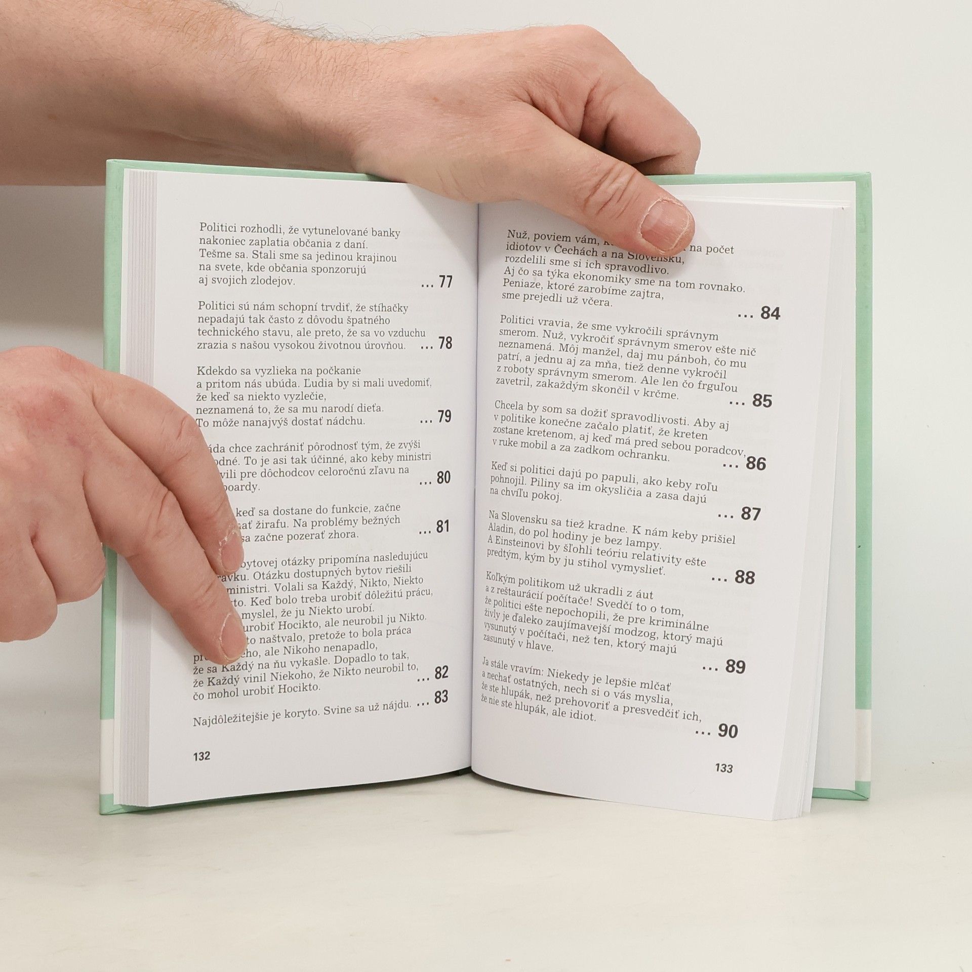 Sbírka postřehů, aforismů, úvah, glos, sentencí a samozřejmě otázek a odpovědí, jejichž autoři, Zuzana Bubílková a Miloslav Šimek, se zaměřili na českou realitu po listopadu 89. Politická satira, jejíž součástí jsou vtipy z rádia Bubu, vychází ve dvanáctém svazku Knihovny Jiřího Grossmanna a je uvedena mottem: "Tato knížka je nevalné úrovně. Jinak to ani být nemůže. Zabývá se totiž převážně naší politickou scénou."