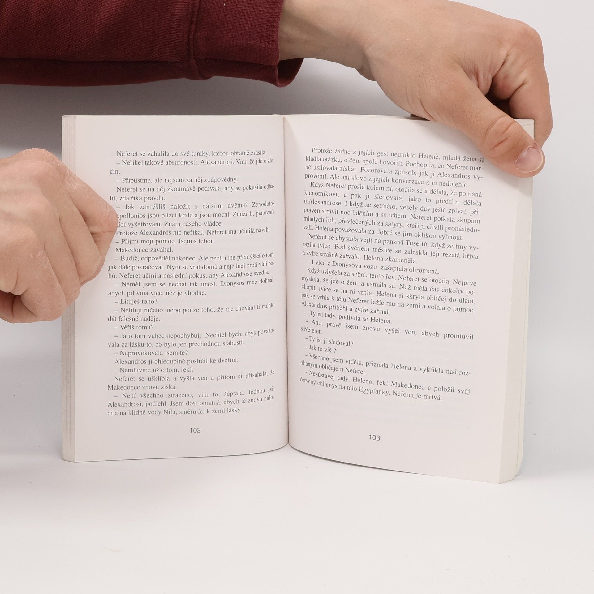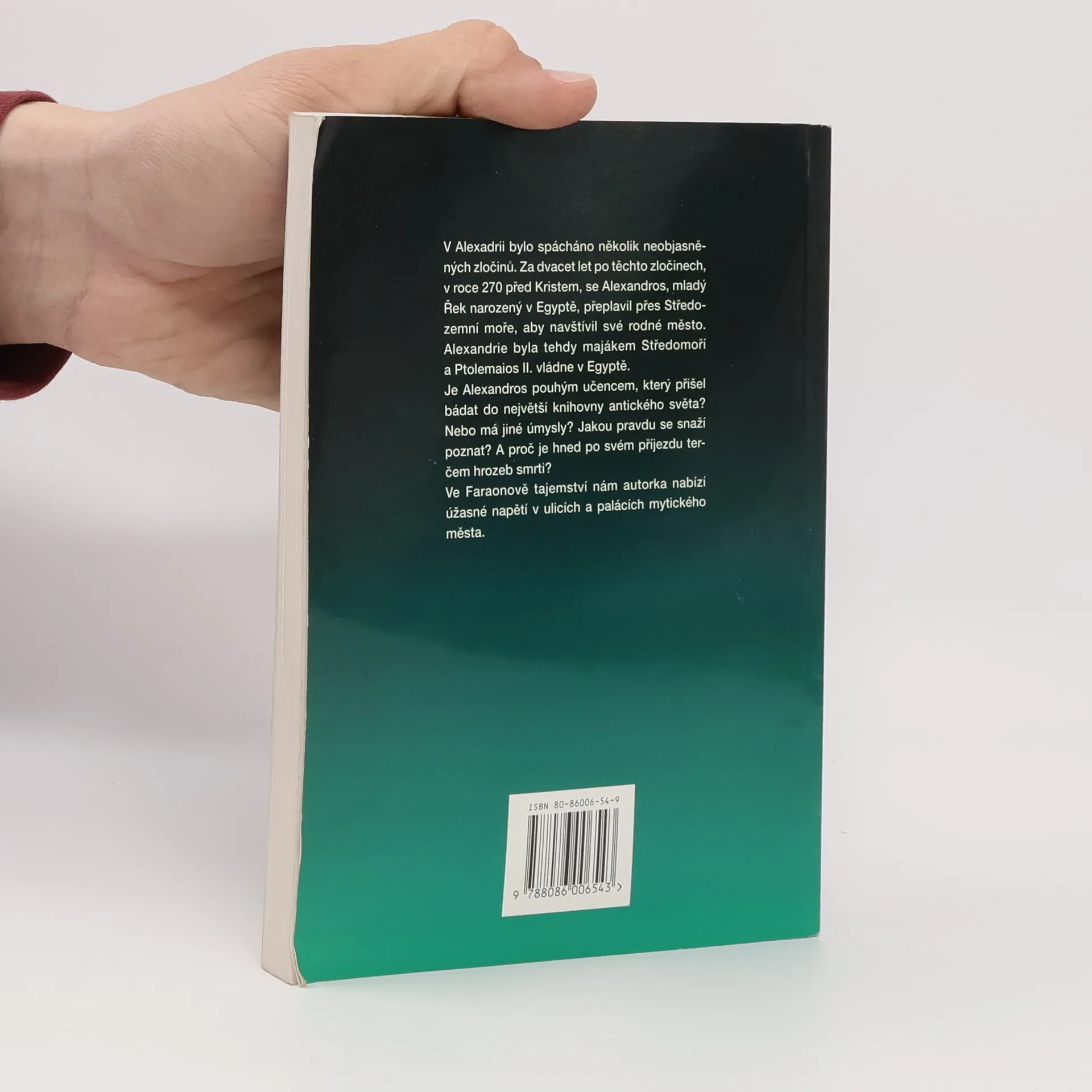 Historický román s detektivní zápletkou se odehrává v Alexandrii ve 3. stol. př. n. l. za vlády Ptolemaia II. Do rodného města se vrací mladý Řek Alexandros, který dosud žil u svého strýce v Makedonii. Chce v největší knihovně starověku studovat dokumenty o historii Řecka i o Alexandru Velikém a jeho vojevůdcích. Do Egypta jej nepřivedla jen touha po vzdělání, ale i po pomstě. Před dvaceti lety zde byl zavražděn jeho otec, matka i sourozenci. Zločin nebyl nikdy objasněn. Alexandros se snaží získat co nejvíce informací o své rodině. Zjistí, že jeho otec patřil k hlavním úředníkům státu, že měl velký vliv a majetek a měl dokonce šanci stát se vládcem Egypta. Náhodně objeví i existenci dluhopisů, z kterých je zřejmé, že mu tři vysoce postavení muži ve městě dlužili peníze. Domnívá se, že našel motiv činu, a rozhodne se vrahy potrestat. Než se k tomu odhodlá, jsou dva z nich zavražděni.Také jeho život je ohrožen. Podaří se mu nakonec odhalit pravého viníka a zjistit i pravdu o svém původu? Spíše než samotný děj zaujme čtenáře vylíčení prostředí hlavního města ptolemaiovské říše, zachycení dění v paláci panovníka, knihovně, gymnasionu i atmosféry slavností na oslavu boha Dionýsa.