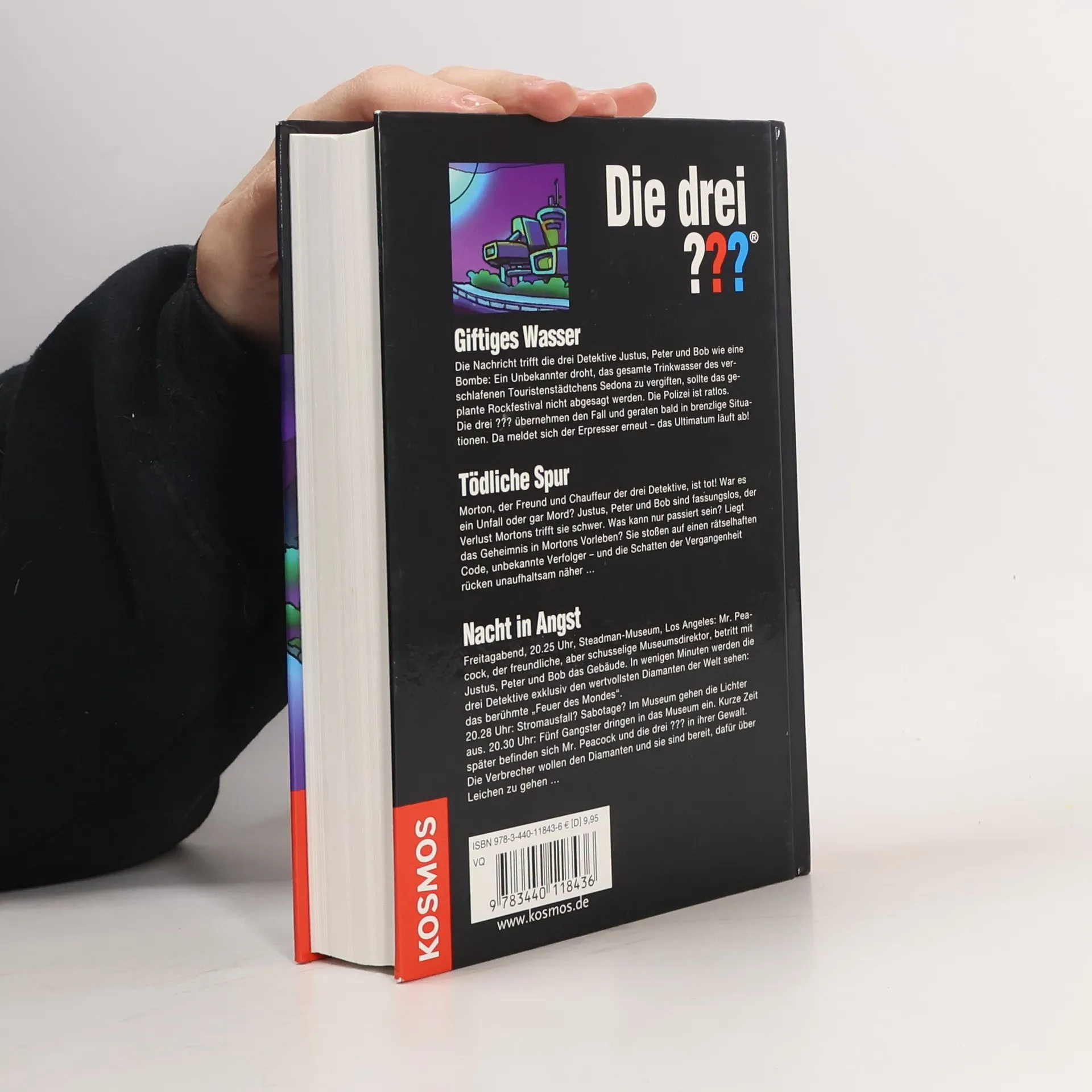 Drei spannende Abenteuer in einem Band! Die drei Detektive Justus, Peter und Bob stehen vor einer alarmierenden Bedrohung: Ein Unbekannter droht, das Trinkwasser des ruhigen Touristenstädtchens Sedona zu vergiften, falls ein geplantes Rockfestival nicht abgesagt wird. Die Polizei ist ratlos, und die drei ??? nehmen den Fall in die Hand, geraten jedoch schnell in gefährliche Situationen. Der Erpresser meldet sich erneut und das Ultimatum läuft ab! Im nächsten Abenteuer ist Morton, der Freund und Chauffeur der Detektive, tot. War es ein Unfall oder Mord? Der Verlust trifft Justus, Peter und Bob hart, und sie beginnen, Mortons geheimnisvolle Vergangenheit zu erforschen. Dabei stoßen sie auf einen rätselhaften Code und unbekannte Verfolger, während die Schatten der Vergangenheit näher rücken. Schließlich, im Steadman-Museum in Los Angeles, stehen die drei Detektive kurz davor, den wertvollsten Diamanten der Welt zu sehen. Doch ein plötzlicher Stromausfall und das Eindringen von fünf Gangstern bringen die Situation ins Chaos. Mr. Peacock und die drei ??? werden gefangen genommen, während die Verbrecher alles daran setzen, den Diamanten zu stehlen – und sie sind bereit, dafür über Leichen zu gehen.