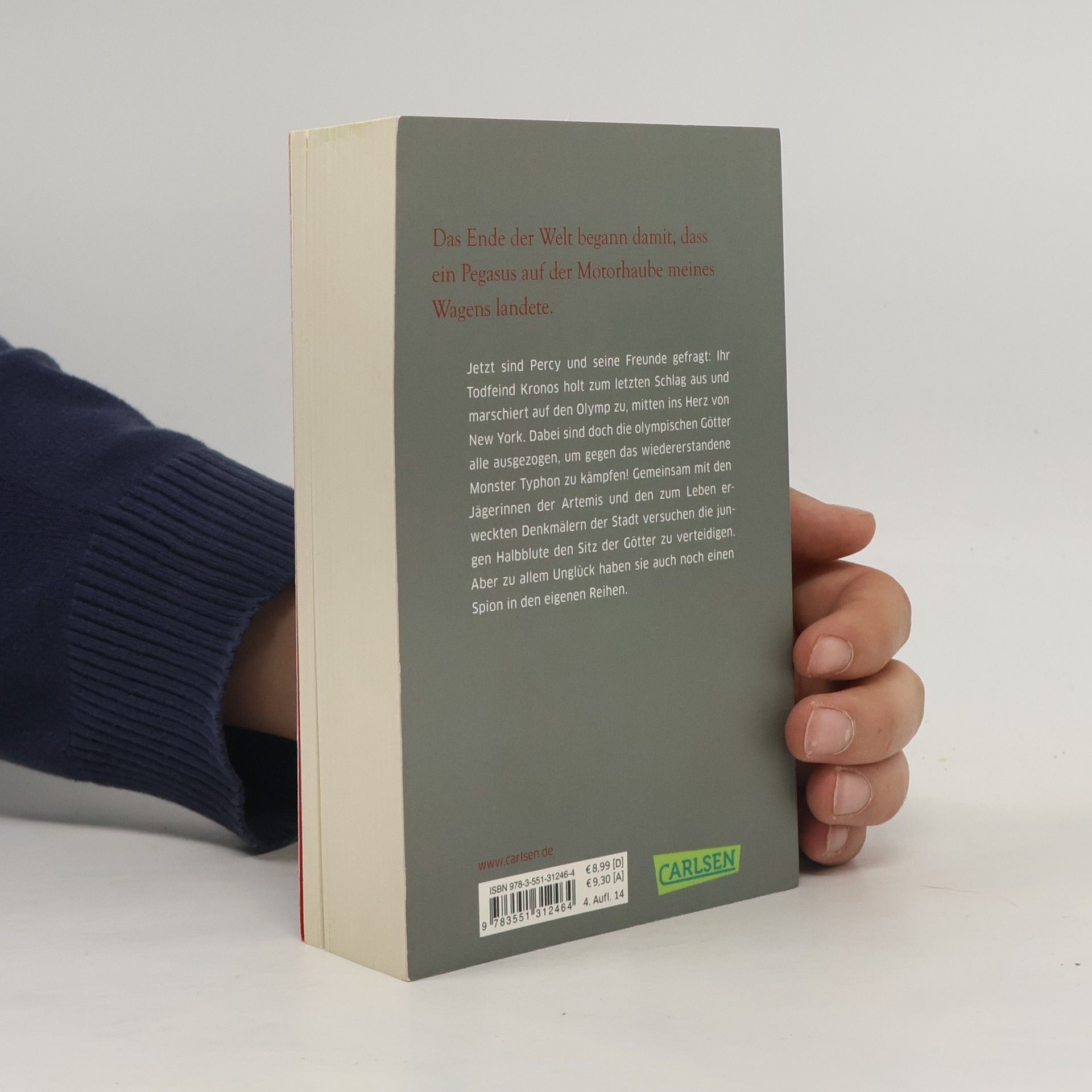 Action, Witz und die letzte Entscheidung! Titanen gegen die Götter des Olymp! Die ultimative Schlacht gegen Kronos steht bevor – mitten im Herzen von New York! Ausgerechnet jetzt sind alle olympischen Götter ausgezogen, um gegen das wiederauferstandene Monster Typhon zu kämpfen! Jetzt liegt es an Percy und seinen Freunden, den Sitz er Götter zu verteidigen. Er muss sich der Prophezeiung stellen und eine Entscheidung treffen, die weitreichende Konsequenzen hat und sein Leben für immer verändern wird. Die Jugendbuch-Bestsellerserie mit nachtragenden Ungeheuern und schrulligen Göttern Als Percy Jackson erfährt, dass er ein Halbgott ist und es die Kreaturen aus der griechischen Mythologie wirklich gibt, verändert das alles. Von nun an stehen ihm und seinen Freunden allerlei Monster, göttliche Streitigkeiten und epische Quests bevor. Gespickt mit Heldentum, Chaos und Freundschaft ist die sechsteilige Fantasy-Reihe rund um den Halbgott Percy Jackson inzwischen millionenfach verkauft. Der Mix aus Spannung, Witz und Mythologie begeistert Jung und Alt aus mehr als 40 Ländern und ist die bekannteste Serie von Rick Riordan. ***Griechische Götter in der Gegenwart: chaotisch-wilde Fantasy für junge Leser*innen ab 12 Jahren und für alle Fans der griechischen Mythologie***