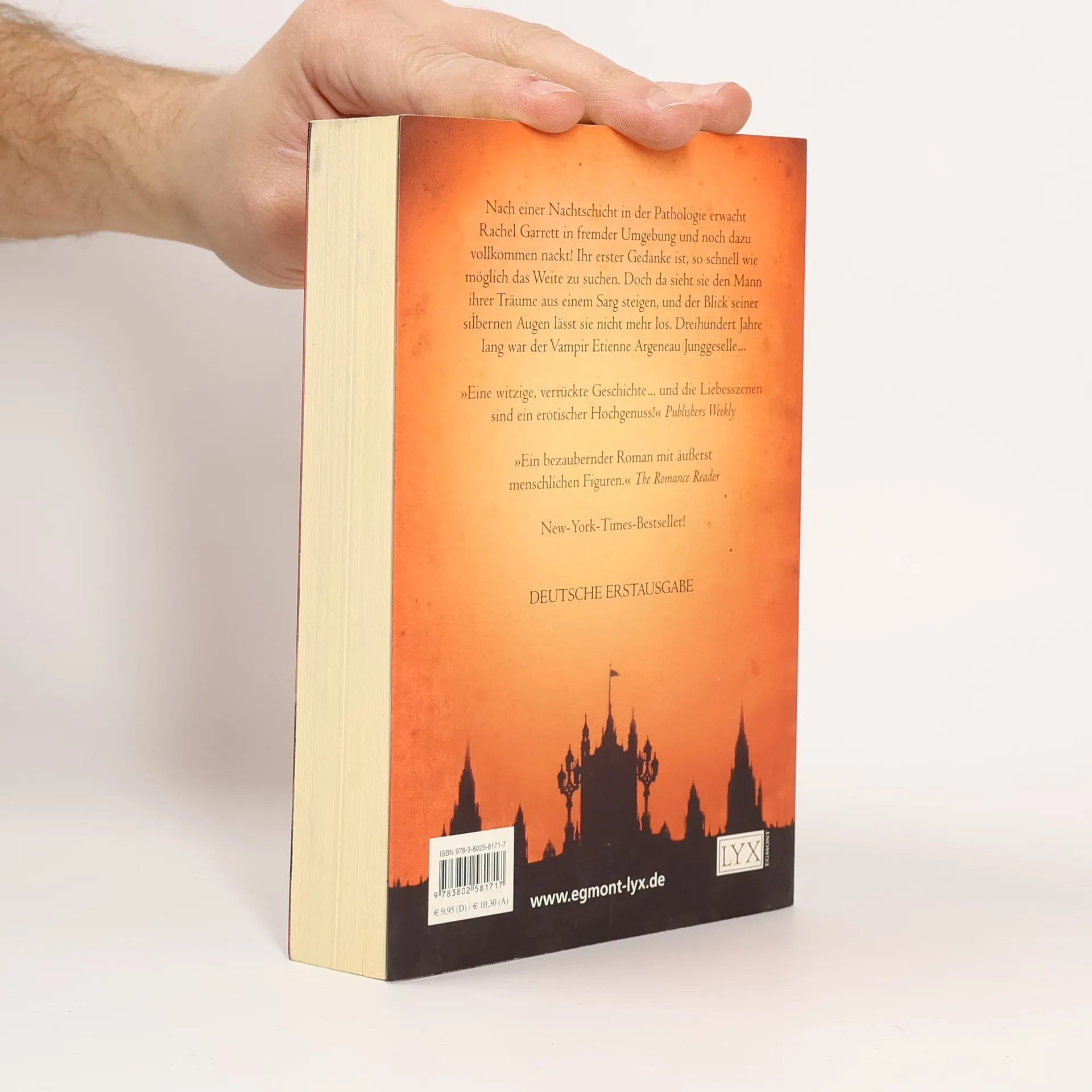 Nach einer Nachtschicht im Leichenschauhaus erwacht Rachel Garrett zu ihrer Überraschung in fremder Umgebung und noch dazu vollkommen nackt! Ihr erster Gedanke ist, so schnell wie möglich das Weite zu suchen. Doch dann sieht sie den Mann ihrer Träume aus einem Sarg steigen, und der Blick in seinen silbernen Augen geht ihr sofort unter die Haut. Dreihundert Jahre lang ist der Vampir Etienne Argeneau Junggeselle gewesen. Die Entscheidung, die hübsche Rachel in eine Vampirin zu verwandeln, wird sein Leben verändern - auf immer und ewig!