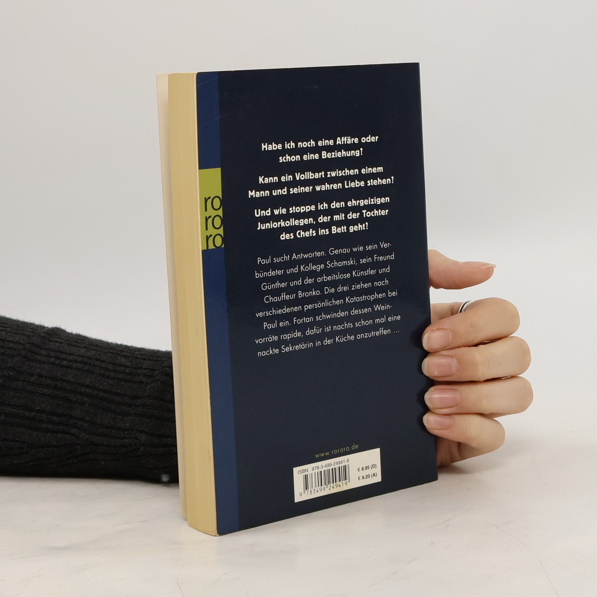 Habe ich noch eine Affäre oder schon eine Beziehung? Kann ein Vollbart zwischen einem Mann und seiner wahren Liebe stehen? Und wie stoppe ich den ehrgeizigen Juniorkollegen, der mit der Tochter des Chefs ins Bett geht? Paul sucht Antworten. Genau wie sein Verbündeter und Kollege Schamski, sein Freund Günther und der arbeitslose Künstler und Chauffeur Bronko. Die drei ziehen nach verschiedenen persönlichen Katastrophen bei Paul ein. Fortan schwinden dessen Weinvorräte rapide, dafür ist nachts schon mal eine nackte Sekretärin in der Küche anzutreffen …