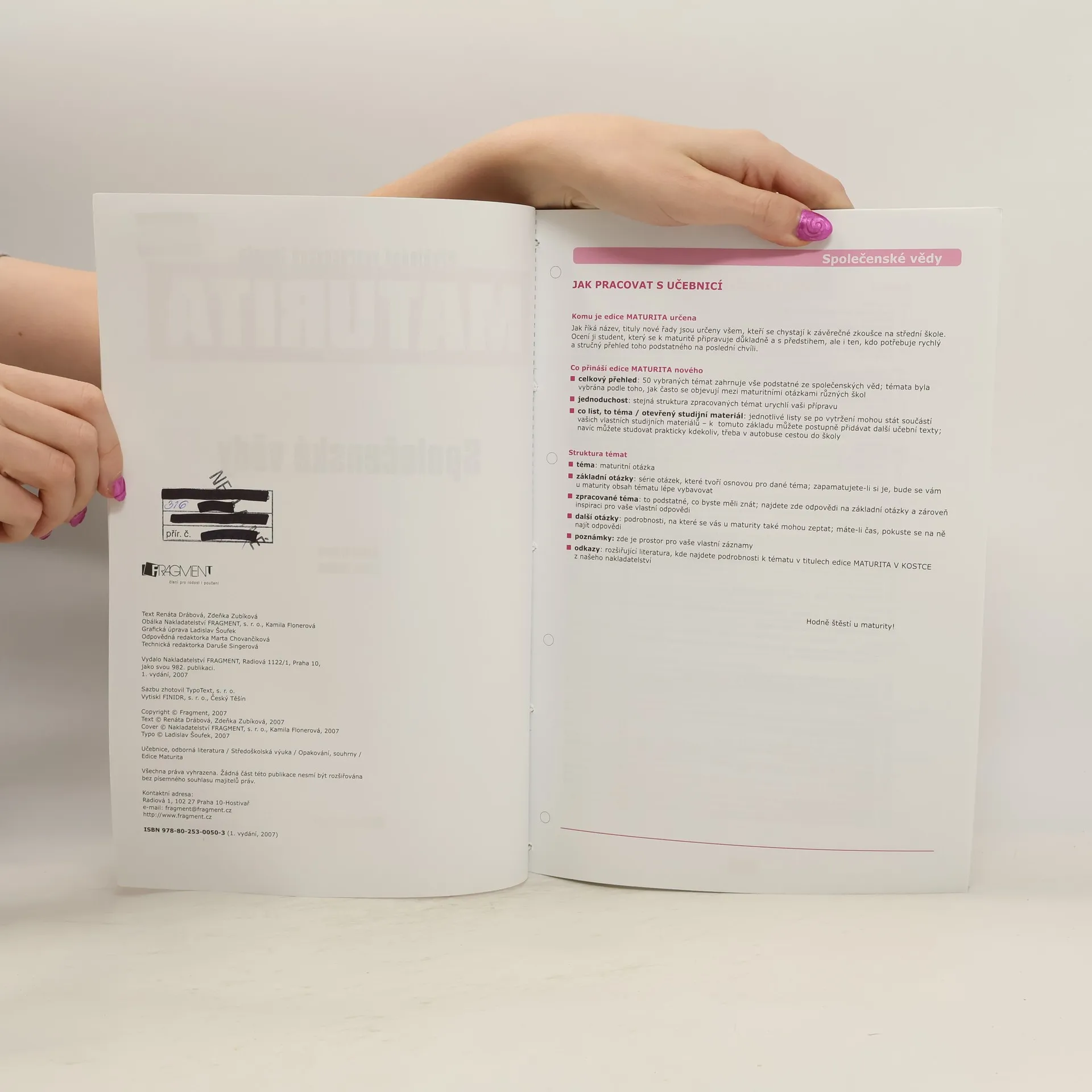 Maturita bez obav! Padesát vypracovaných maturitních témat pro vás bude základem k úspěšnému složení maturitní zkoušky ze společenských věd. Každé téma je zpracováno na jednom listu tak, aby se list dal použít jako základ vaší vlastní přípravy nebo jako tahák!!!