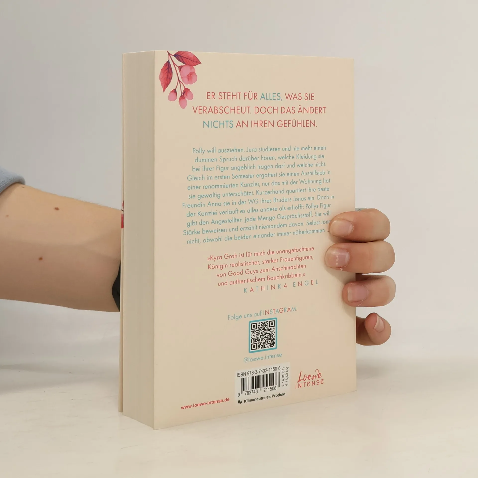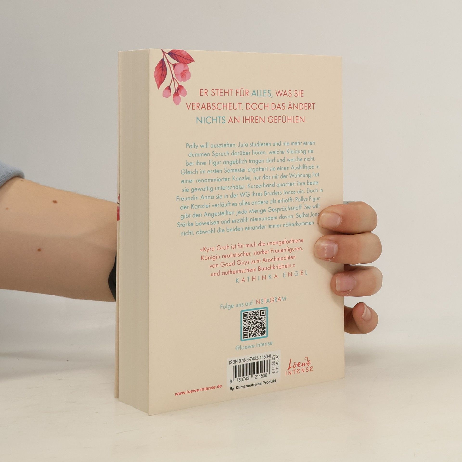 Das Buch ist bei deiner Buchhandlung vor Ort und bei vielen Online-Buchshops erhältlich! Er steht für ALLES, was sie verabscheut. Doch das ändert NICHTS an ihren Gefühlen Polly will ausziehen, Jura studieren und nie mehr einen dummen Spruch darüber hören, welche Kleidung sie bei ihrer Figur angeblich tragen darf und welche nicht. Gleich im ersten Semester ergattert sie einen Job in einer renommierten Kanzlei, nur das mit der Wohnung hat sie gewaltig unterschätzt. Kurzerhand quartiert ihre beste Freundin Anna sie in der WG ihres Bruders Jonas ein. Doch in der Kanzlei verläuft es alles andere als erhofft: Pollys Figur gibt den Angestellten allerhand Gesprächsstoff. Sie will Stärke beweisen und erzählt niemandem davon. Selbst Jonas nicht, obwohl die beiden einander immer näherkommen … Mit dem zweiten Teil ihrer New Adult-Trilogie rund um die Freundinnen Anna, Polly und Anouk macht Kyra Groh auf einfühlsame wie humorvolle Weise auf gesellschaftlich relevante Themen aufmerksam: #Bodyshaming ist mehr als nur ein Hashtag – und kann tief verletzen. Klimaneutrales Produkt – Wir unterstützen ausgewählte Klimaprojekte!