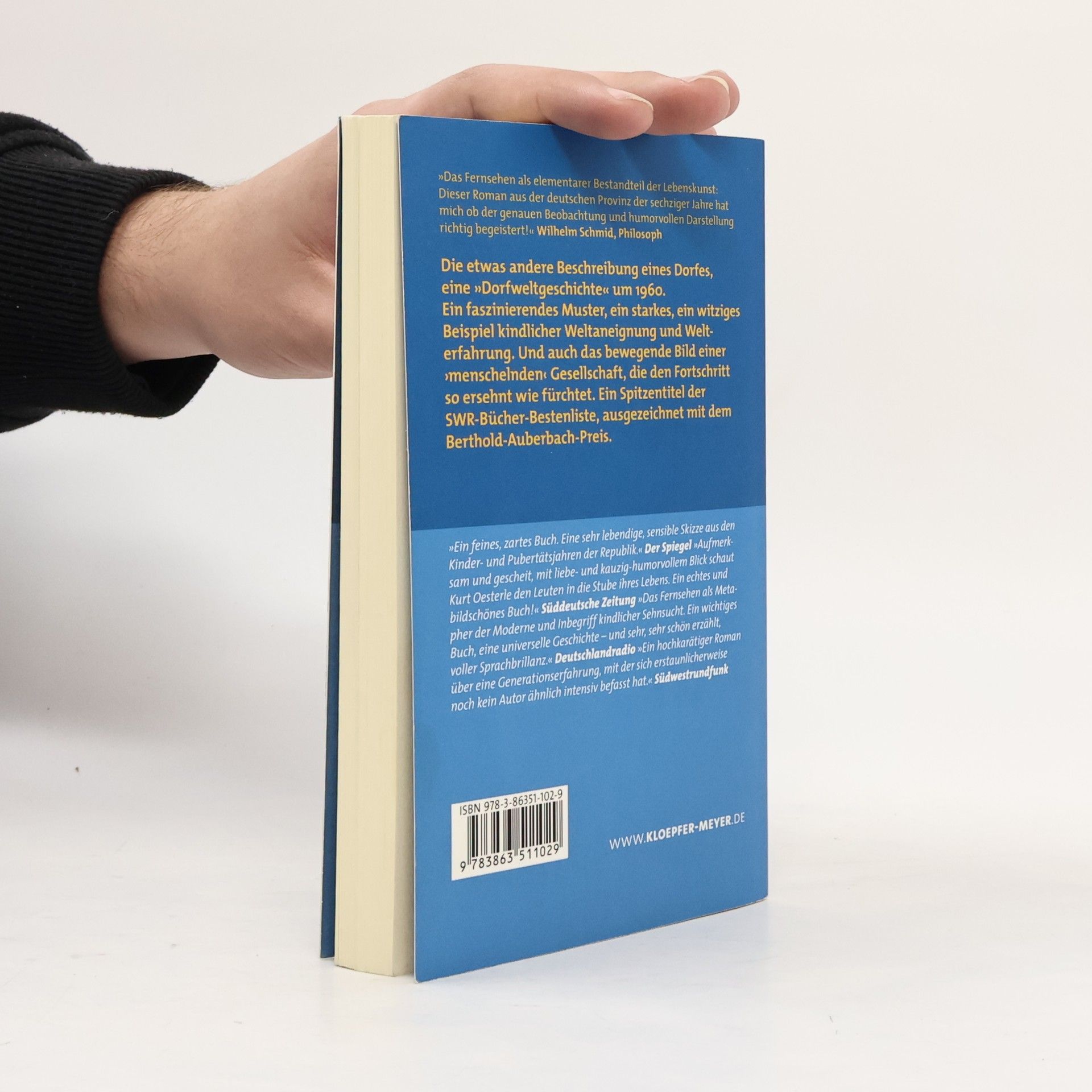 Ausgezeichnet mit dem Berthold-Auerbach-Preis 2002, von der Darmstädter Jury zum Buch des Monats gewählt – und über mehrere Monate auf der SWR-Bestenliste stehend. Eine Art Heimat- und Dorfroman, die etwas andere »Beschreibung eines Dorfes« um 1960: Ein Junge im Alter von acht, neun Jahren erlebt den Einbruch des Fernsehens in die fast noch archaische, ganz bäuerlich-handwerkliche Welt seines Fleckens.