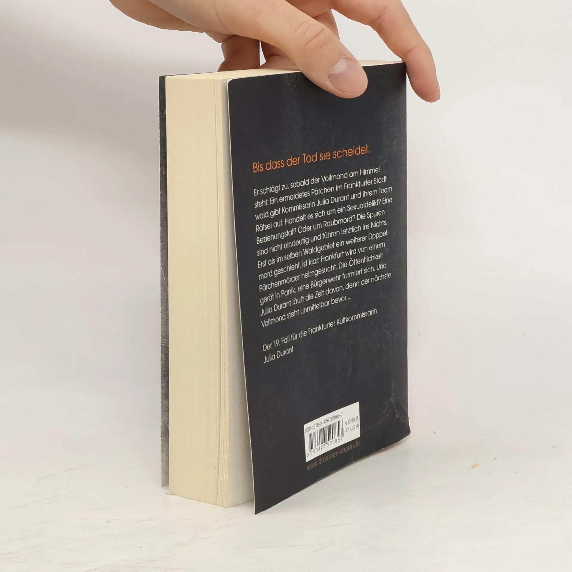 Ein neuer Fall für Julia Durant aus Frankfurt aus der Feder von Bestseller-Autor Daniel Holbe, der das Erbe von Andreas Franz weiterführt, und ein spannender Kriminal-Roman der Extraklasse Stadtwald Frankfurt. Vollmond. Ein ermordetes Pärchen gibt der Polizei Rätsel auf. Handelt es sich um ein Sexualdelikt? Eine Beziehungstat? Oder um Raubmord? Die Mordkommission um Julia Durant tappt im Dunkeln, und auch nach Wochen will sich kein Ermittlungserfolg einstellen.Ausgerechnet als man im Kommissariat die Hochzeit der Kollegen Doris und Peter feiert, geschieht der nächste Doppelmord. Wieder in einem Waldgebiet, nur unweit des ersten Tatorts. Hat die Stadt es mit einem Pärchen-Mörder zu tun?Die Presse schlägt Alarm, ein Privatmann setzt eine Belohnung aus, eine Bürgerwehr formiert sich. Dann stellt sich heraus, dass es sich tatsächlich um eine sexuelle Tat zu handeln scheint. Da wird ein Mordfall aus einem anderen Bundesland gemeldet, der verdächtige Ähnlichkeit mit den beiden Doppelmorden in Hessen zu haben scheint. verschaffen.Eine Herausforderung für Julia Durant und ihr Team! Der 19. Band der Julia-Durant-Reihe