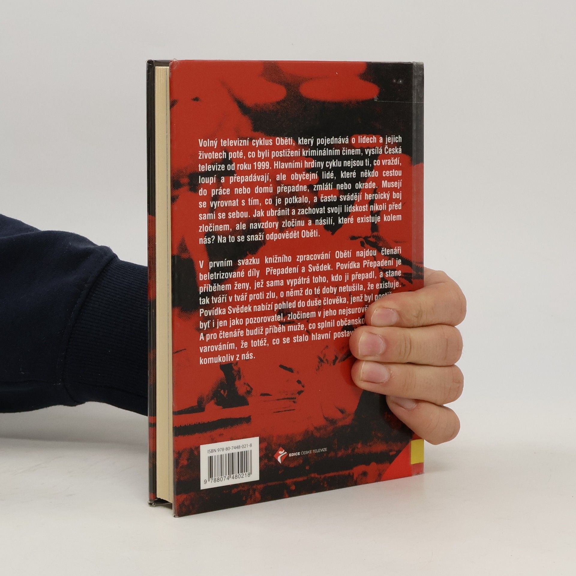 V prvním svazku knižního zpracování Obětí najdou čtenáři beletrizované díly Přepadení a Svědek. Povídka Svědek nabízí pohled do duše člověka, jenž byl postižen, byť i jen jako pozorovatel, zločinem v jeho nejsurovější podobě. A pro čtenáře budiž příběh muže, co splnil občanskou povinnost, varováním, že totéž, co se stalo hlavní postavě, se může stát komukoliv z nás. Přepadení je příběhem ženy, jež sama vypátrá toho, kdo ji přepadl, a stane tak tváří v tvář proti zlu, o němž do té doby netušila.
