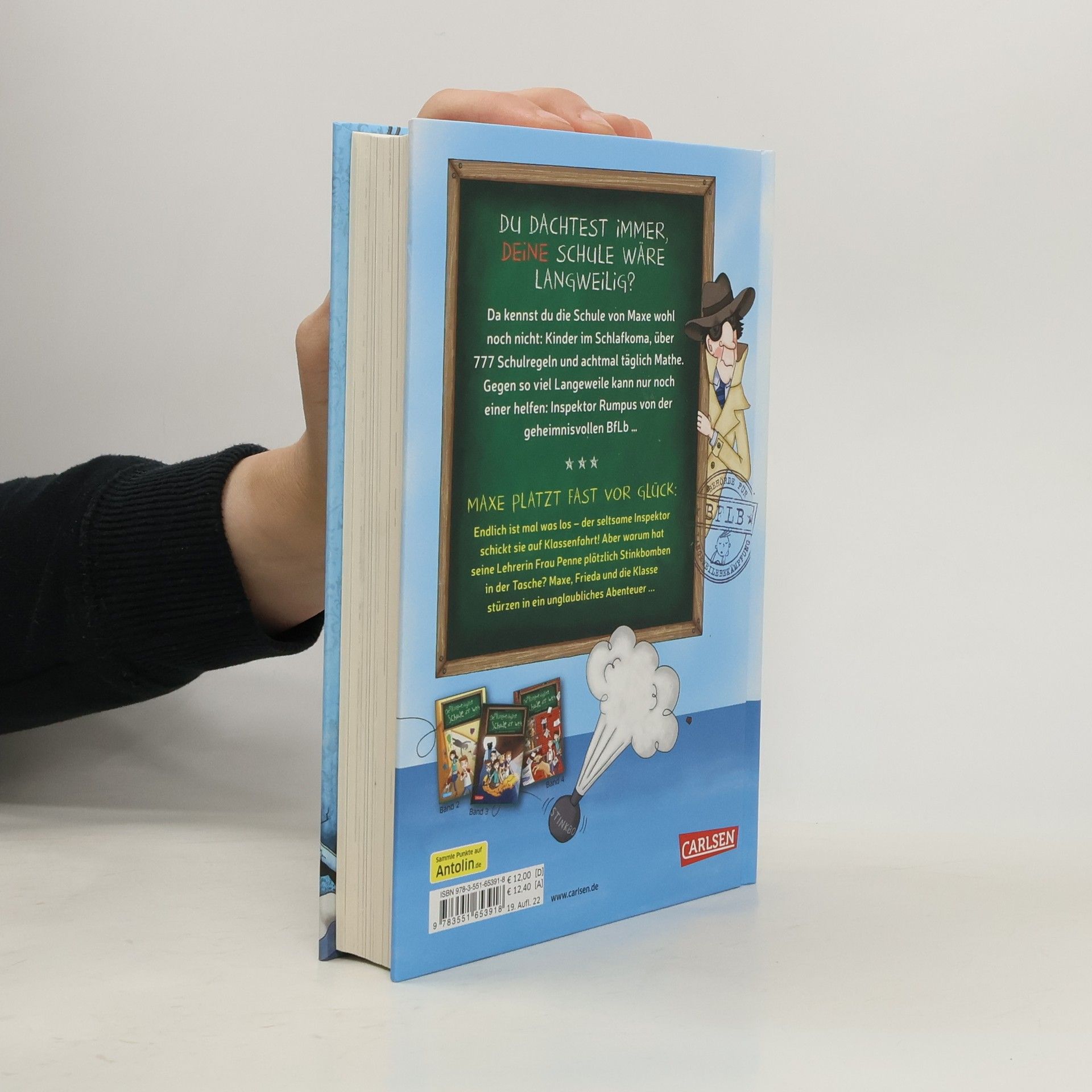 FILMSTART AM 26.10.2023 *** „Bitte leise atmen!“ heißt es für Maxe, Frieda und ihre Klasse in der langweiligsten Schule der Welt. Ein Fall für Inspektor Rasputin Rumpus von der Behörde für Langeweilebekämpfung! *** Maxes Schule ist wirklich zum Einschlafen: über 777 Schulregeln und achtmal täglich Mathe! Doch dann taucht ein geheimnisvoller Inspektor auf und schickt die Klasse auf Klassenfahrt! Maxe platzt fast vor Glück: Endlich ist mal was los! Aber warum hat seine Lehrerin Frau Penne plötzlich Stinkbomben in der Tasche? Maxe, Frieda und die anderen Kinder stürzen in ein unglaubliches Abenteuer ... Eine neue, turbulente Reihe für Jungs und Mädchen! Schulchaos plus Agentenspannung plus viele Bilder = Lesespaß pur! Lesen lernen leicht gemacht! Kurze Kapitel, viele Bilder! „Witzige Mischung aus Klassenchaos und Agentenspannung“, Spick 415, Juli/August 2017