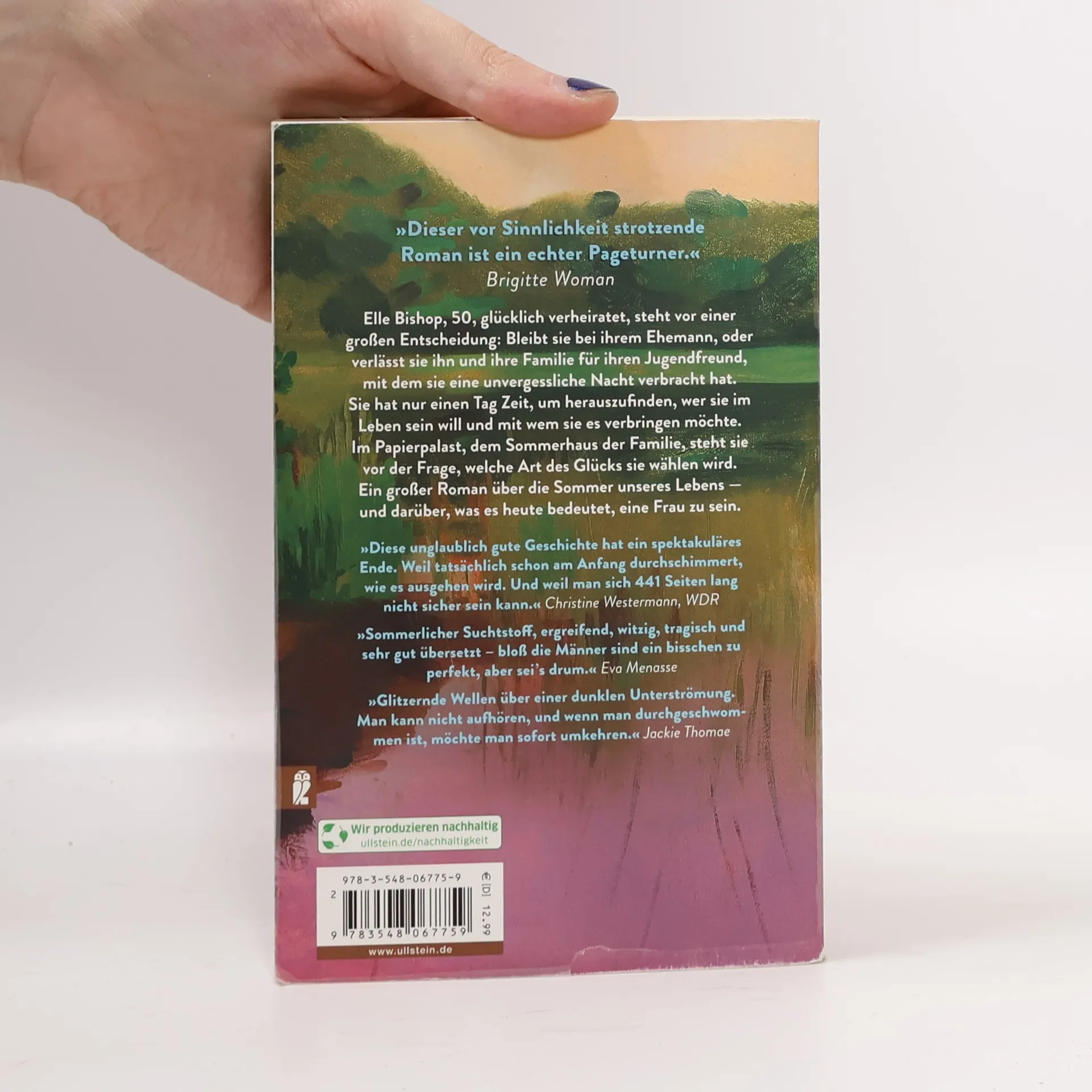 Eine Frau zwischen Liebhaber und Familie Elle Bishop, 50, glücklich verheiratet, steht vor einer großen Entscheidung: Bleibt sie bei ihrem Ehemann oder verlässt sie ihn und ihre Familie für ihren Jugendfreund, mit dem sie eine unvergessliche Nacht verbracht hat. Sie hat nur einen Tag Zeit, um herauszufinden, wer sie im Leben sein will und mit wem sie es verbringen möchte. Im Papierpalast, dem Sommerhaus der Familie, steht sie vor der Frage, welche Art des Glücks sie wählen wird. Ein großer Roman über die Sommer unseres Lebens — und darüber, was es heute bedeutet, eine Frau zu sein. ***Ein Buch, das unter die Haut geht.*** » ... unglaublich gute Geschichte« Christine Westermann »Ein Familiendrama, eine geheime Liebe, eine andauernde Tragödie. Der Papierpalast ist ein überwältigendes literarisches Debüt.« The Independent