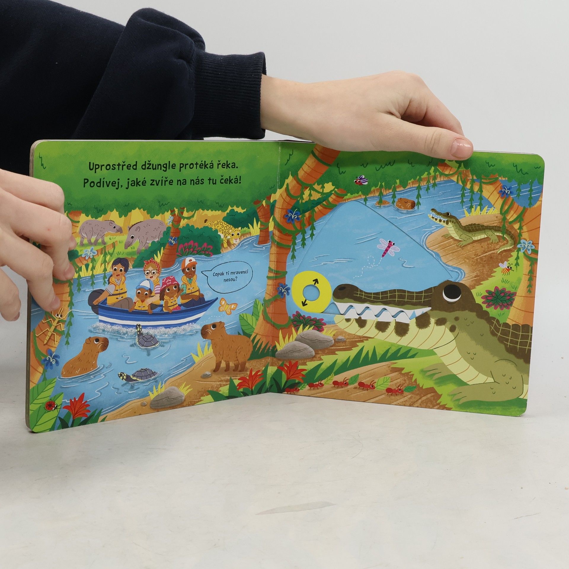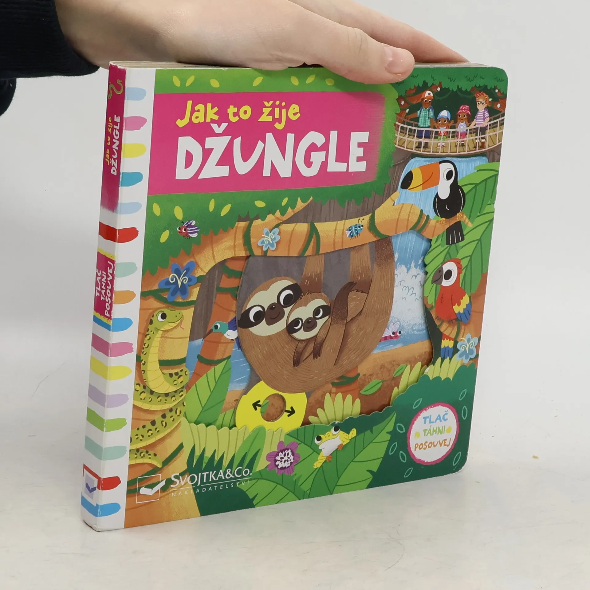 Vydejte se na prohlídku džunglí a poznejte spoustu zajimavých zvířat! Prohlížej si stránky, pohybuj a otáčej obrázky. Zvířata z džungle na stránkách tohoto leporela doslova ožijí.