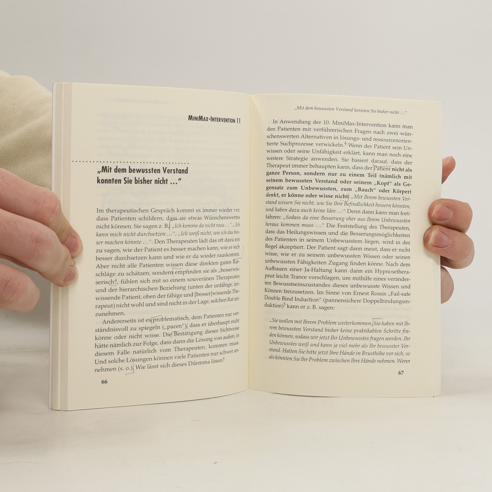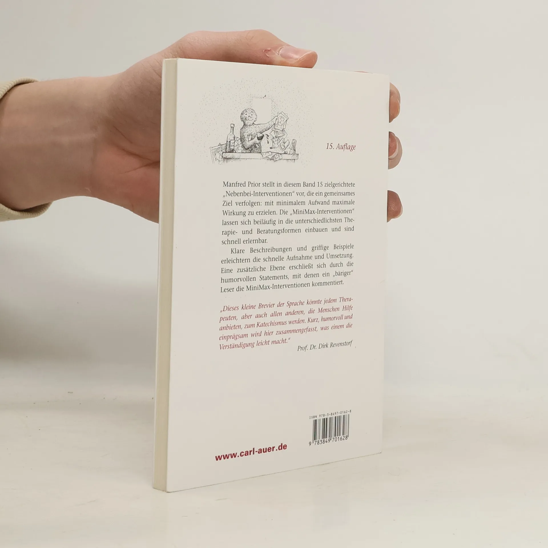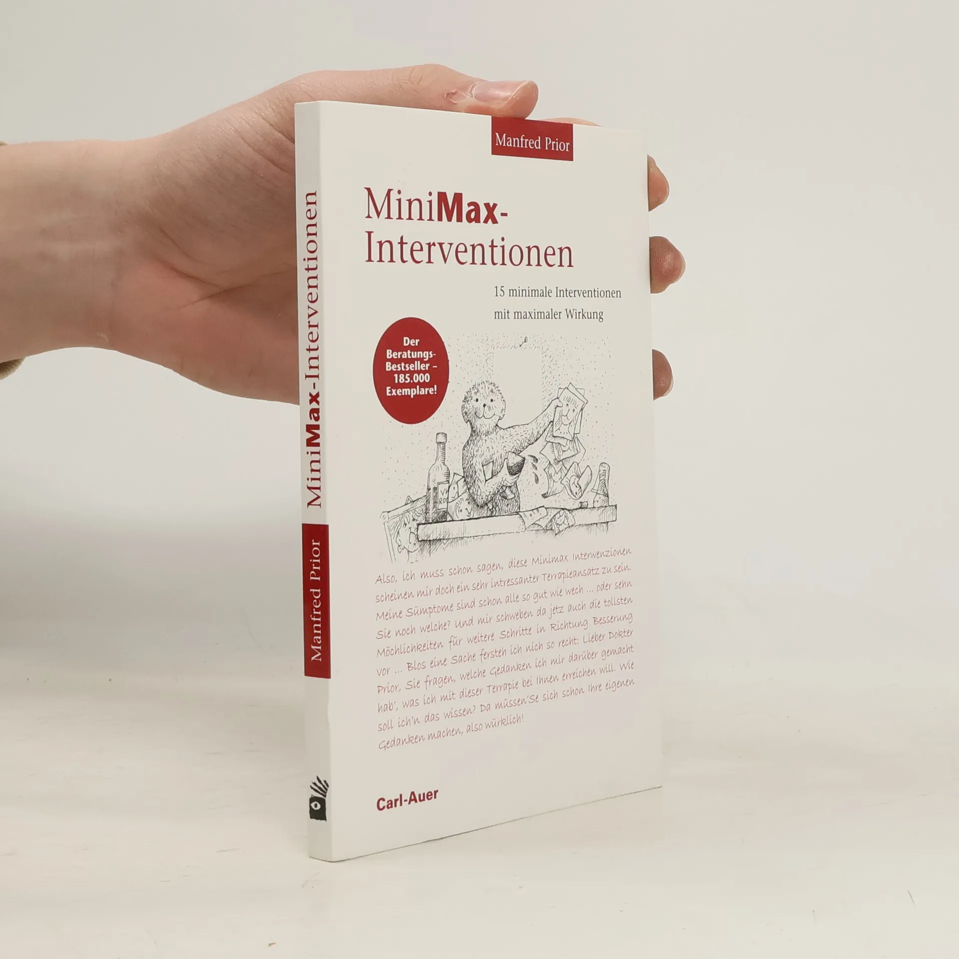 Manfred Prior stellt in diesem Band 15 zielgerichtete „Nebenbei-Interventionen“ vor, die ein gemeinsames Ziel verfolgen: mit minimalem Aufwand maximale Wirkung in einer Therapie zu erzielen. Die Texte gehen zurück auf eine Kolumne, die der Autor für das „MEGaPhon“, die auflagenstarke Zeitschrift der Milton-Erickson-Gesellschaft für klinische Hypnose, schrieb. Für dieses Buch wurden sie zusammengefasst, gründlich überarbeitet und durch neue Interventionen ergänzt. Priors „MiniMax-Interventionen“ lassen sich beiläufig in die unterschiedlichsten Therapie- und Beratungsformen einbauen und sind schnell und von jedermann erlernbar. Klare Beschreibungen und griffige Beispiele erleichtern die Aufnahme und Umsetzung des Gelernten. Eine zusätzliche Ebene erschließt sich durch die humorvollen Statements, mit denen ein „bäriger“ Leser die MiniMax-Interventionen kommentiert. Übersetzungen dieses Buches sind auf Englisch, Französisch, Spanisch und Tschechisch erschienen.