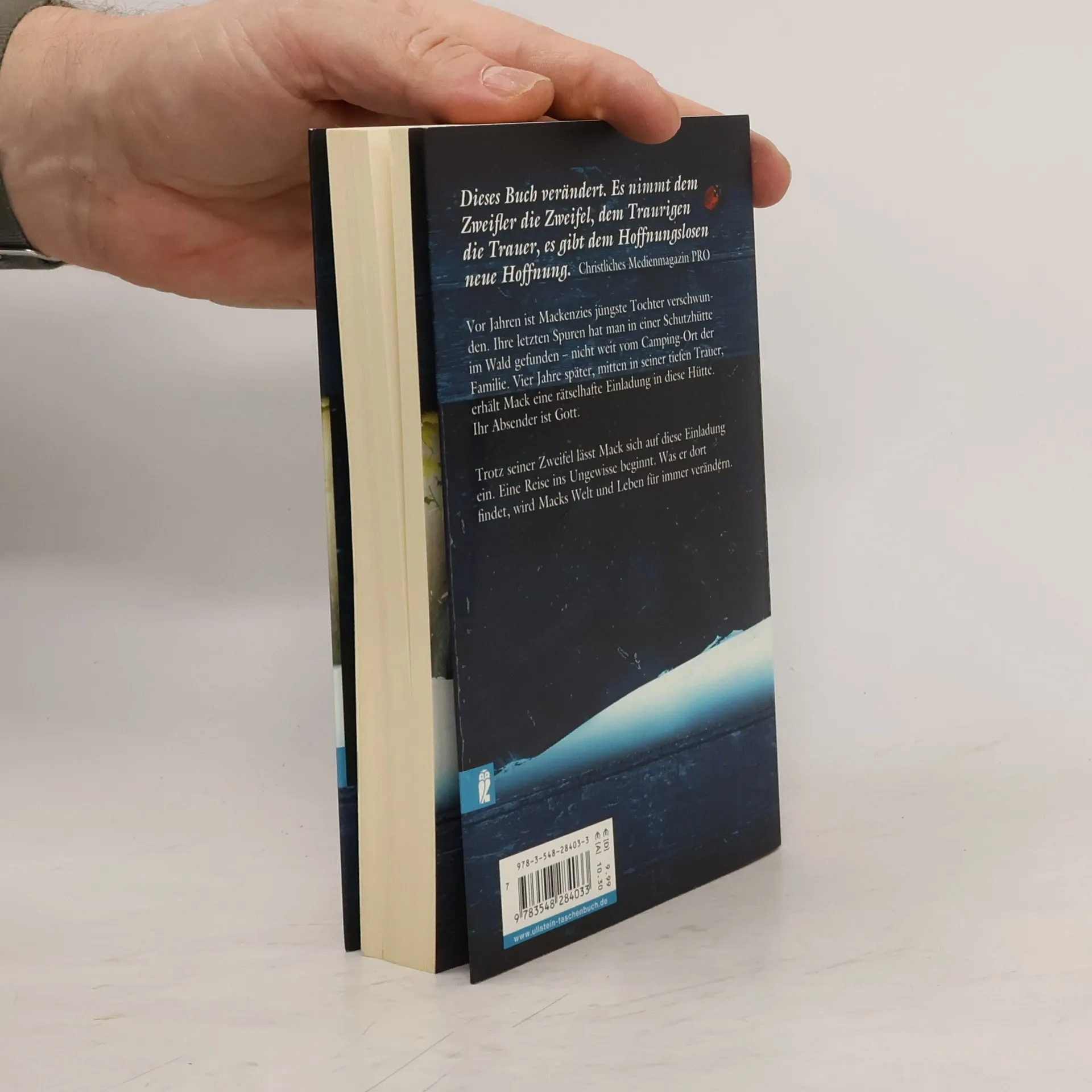 Vor Jahren ist Mackenzies jüngste Tochter verschwunden. Ihre letzte Spur hat man in einer Schutzhütte im Wald gefunden – nicht weit vom Camping-Ort der Familie. Vier Jahre später, mitten in seiner tiefsten Trauer, erhält Mackenzie eine rätselhafte Einladung in diese Hütte. Ihr Absender ist Gott. Trotz seiner Zweifel lässt Mackenzie sich auf diese Einladung ein. Eine Reise ins Ungewisse beginnt. Was er dort findet, wird Macks Welt für immer verändern.