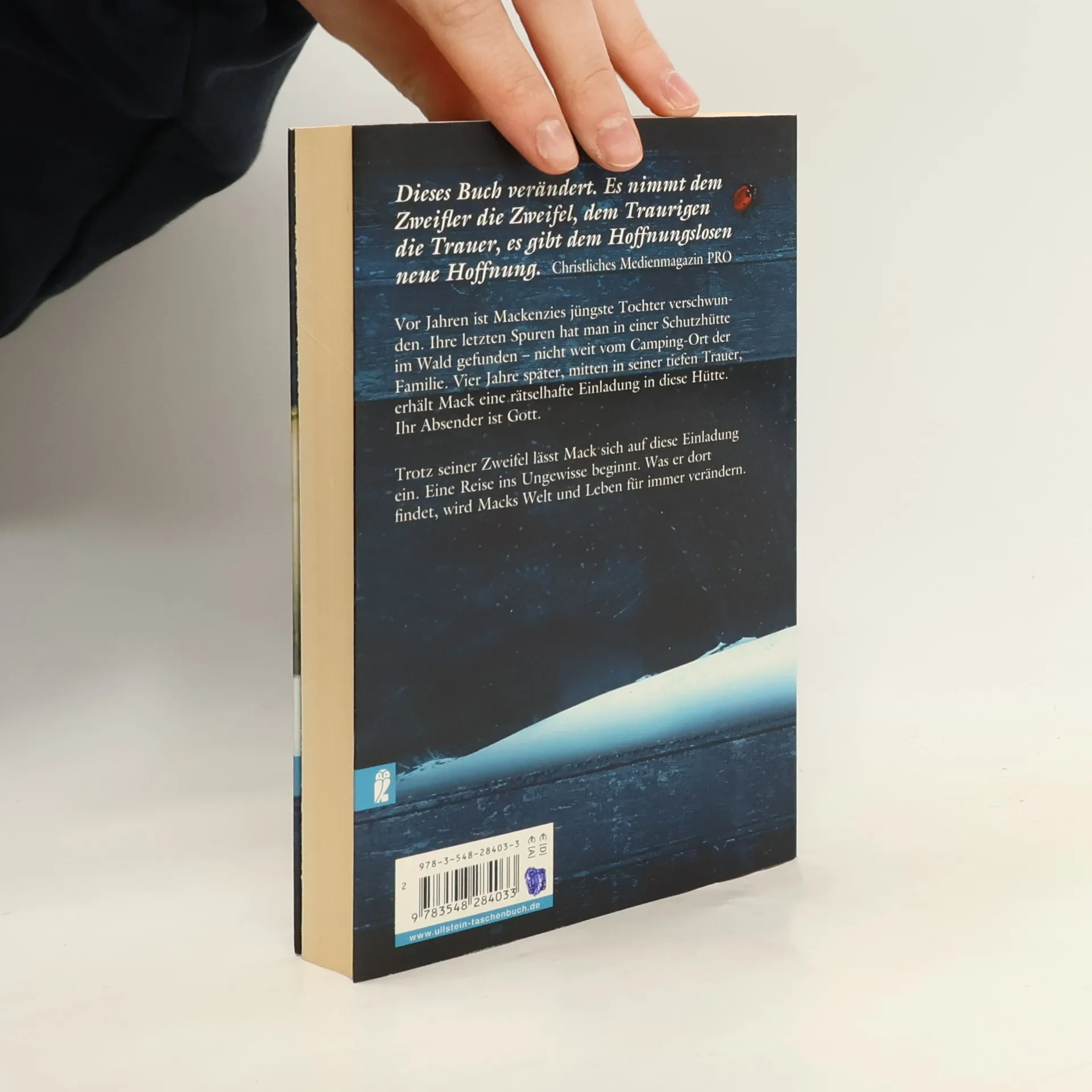 Vor Jahren ist Mackenzies jüngste Tochter verschwunden. Ihre letzte Spur hat man in einer Schutzhütte im Wald gefunden – nicht weit vom Camping-Ort der Familie. Vier Jahre später, mitten in seiner tiefsten Trauer, erhält Mackenzie eine rätselhafte Einladung in diese Hütte. Ihr Absender ist Gott. Trotz seiner Zweifel lässt Mackenzie sich auf diese Einladung ein. Eine Reise ins Ungewisse beginnt. Was er dort findet, wird Macks Welt für immer verändern.
