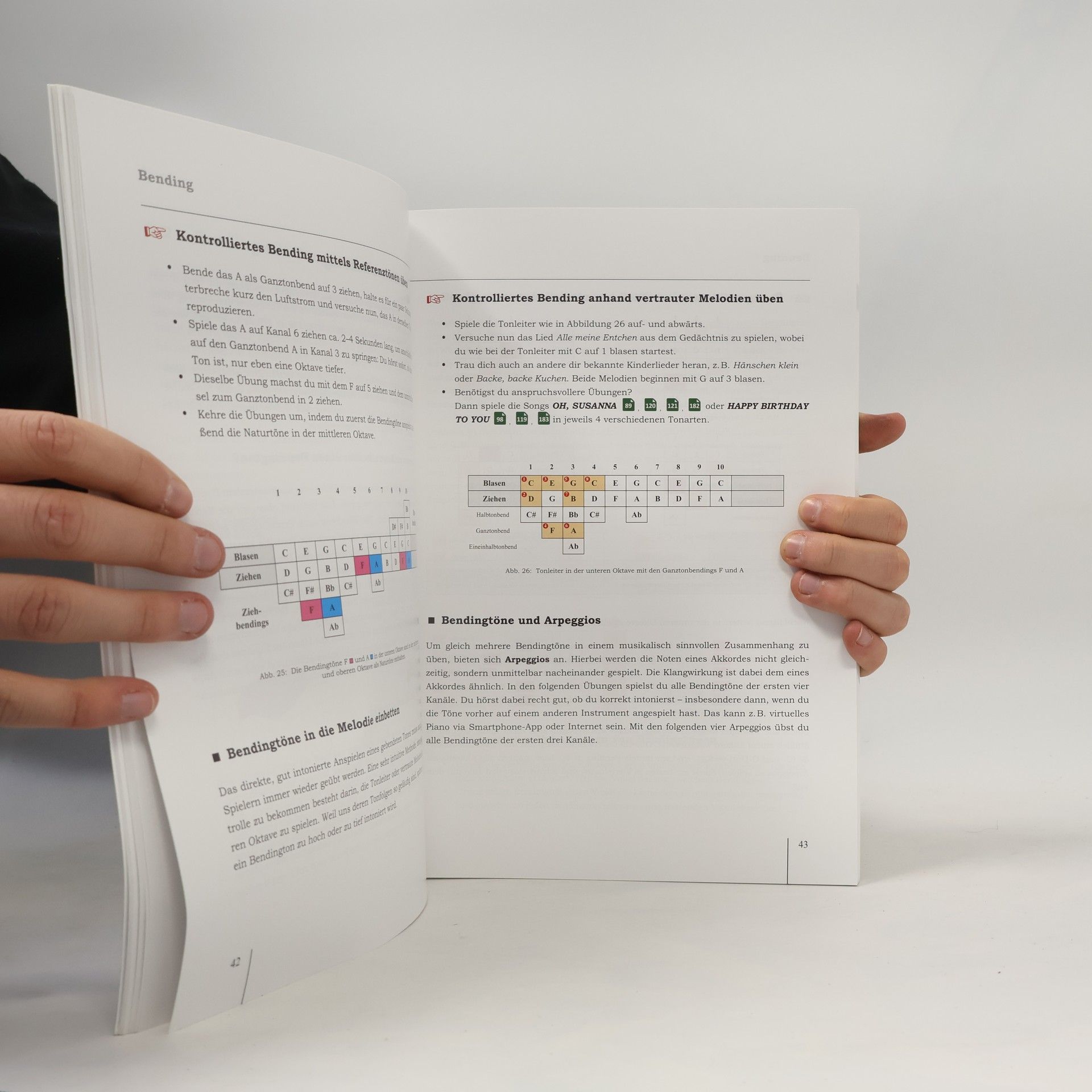 Mundharmonika lernen anhand von 100 Songs. Dieses umfassende Buch kombiniert Spielanleitung und Songbuch, indem es Spieltechniken wie Zungenschlag, Bending, Overblows und Wah-Wah-Effekte erklärt und durch konkrete Songpassagen veranschaulicht. Es richtet sich an Anfänger und Fortgeschrittene und bietet eine Vielzahl von Songs in unterschiedlichen Schwierigkeitsgraden: leicht, mittel und hoch. Alle Titel sind in Notenschrift und Harptabulatur notiert, sodass auch Spieler ohne Notenkenntnisse gut zurechtkommen. Die stilistische Vielfalt reicht von Blues und Bluegrass über American Folk und Country bis hin zu Evergreens. Für das Üben benötigt man lediglich eine Bluesharp in C-Dur, da alle 100 Titel mit dieser und Gitarrenbegleitung eingespielt sind. QR-Codes ermöglichen den Zugriff auf Hör- und Mitspielversionen der Songs, die auch separat heruntergeladen werden können. Das Buch zeigt, wie man mit einer C-Mundharmonika in verschiedenen Dur- und Molltonarten spielt und erklärt das Spiel in den wichtigsten Positionen. Einige Songs werden in unterschiedlichen Tonarten gespielt, um die Vorteile dieser Technik zu verdeutlichen. Die praktische Herangehensweise an das Lernen wird durch zahlreiche Beispiele und Instrumentalstücke unterstützt. Mit hochwertiger Fadenbindung kann das Buch flach aufgeschlagen oder auf einem Notenständer verwendet werden.