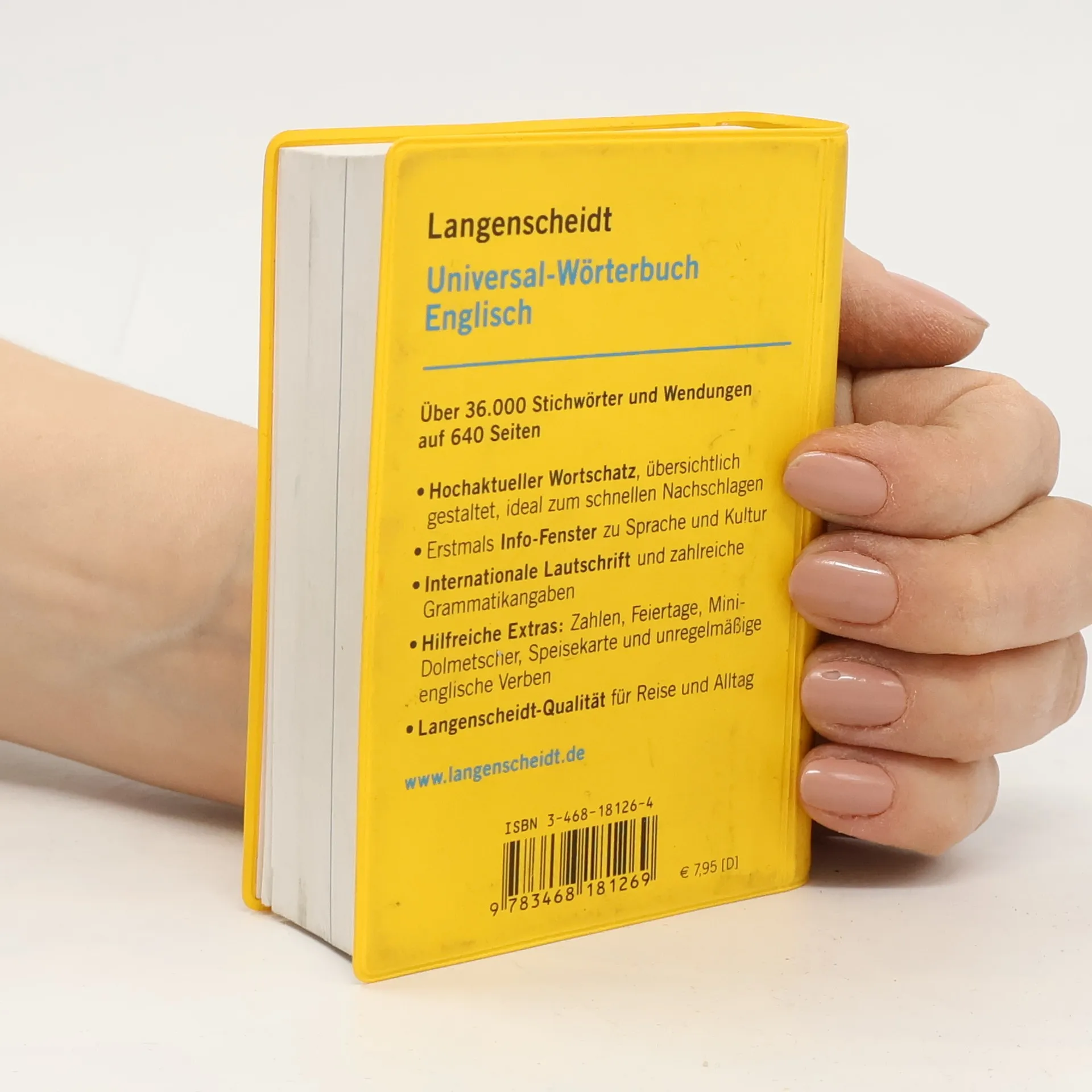 Das meistverkaufte Langenscheidt-Wörterbuch im besonders praktischen Format jetzt völlig neu erstellt. Über 36.000 Stichwörter und Wendungen, alle Einträge von Muttersprachlern neu bearbeitet hochaktuell mit über 1.000 Einträgen mehr als bisher besonders berücksichtigt: Reise-Vokabular klare Bedeutungsunterscheidungen und zahlreiche Anwendungsbeispiele für sicheres Verständnis und korrektes Formulieren auf Englisch jedes Stichwort in Blau und voll ausgeschrieben erstmals: viele Info-Fenster zu Sprache und Kultur hilfreiche Extras im Anhang: Feiertage, Mini- Dolmetscher zu wichtigen Sprechsituationen auf der Reise, englische Speisekarte u. a. zum schnellen Nachschlagen auf Reisen und für den fremdsprachlichen Anfangsunterricht