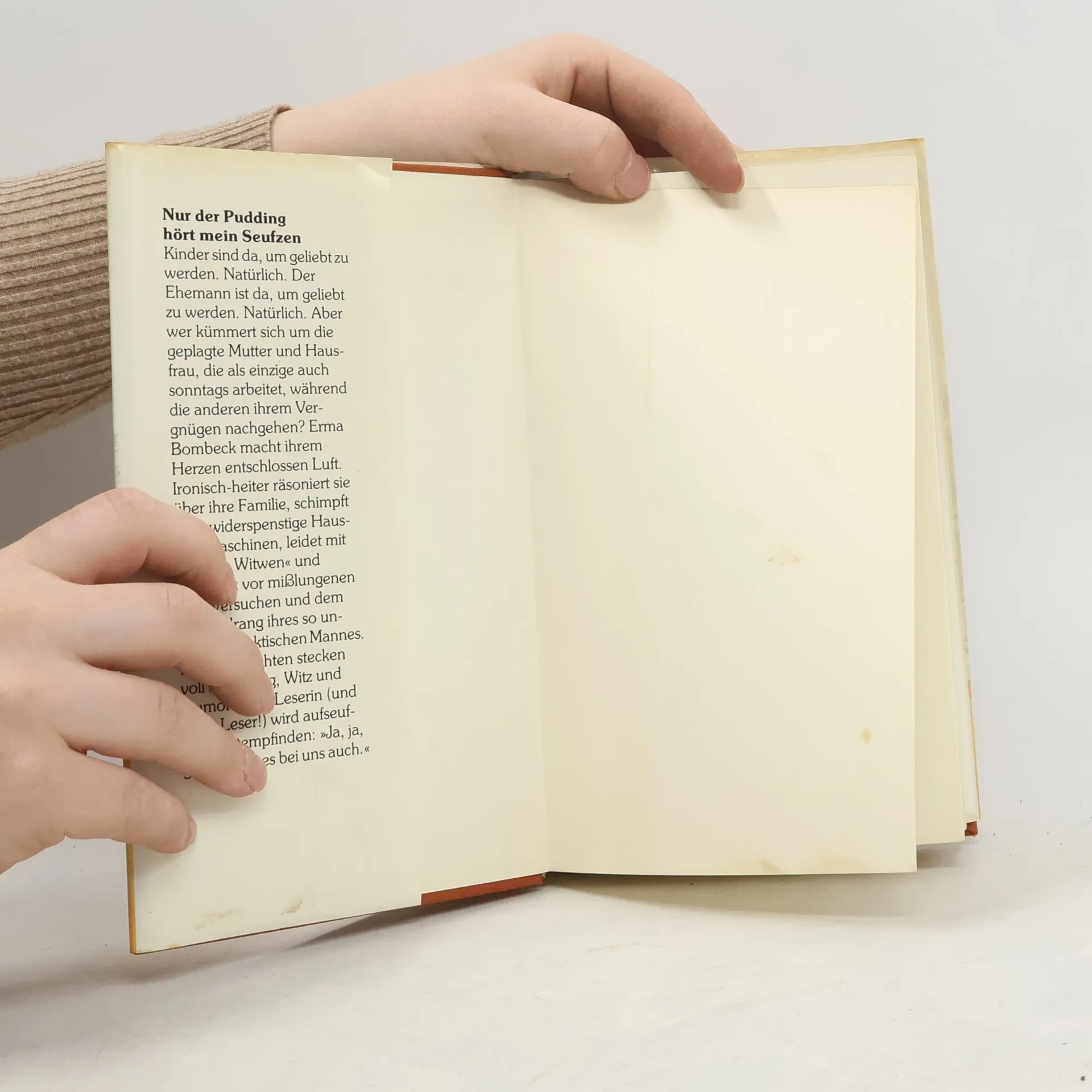 Der humorvolle Klassiker über Freuden und Leiden einer Hausfrau. Erma Bombeck, Hausfrau und Mutter dreier Kinder, begann mit 37 Jahren zu schreiben. Ihre frech-fröhlichen Kolumnen über Leid und Freud im Familienalltag erschienen zunächst in amerikanischen Zeitschriften, eroberten aber schnell Millionen von Buchlesern in aller Welt. Bekannt wurde sie in Deutschland durch den Bestseller „Nur der Pudding hört mein Seufzen“, dessen Geschichten voller Erfahrung, Witz und Humor stecken.