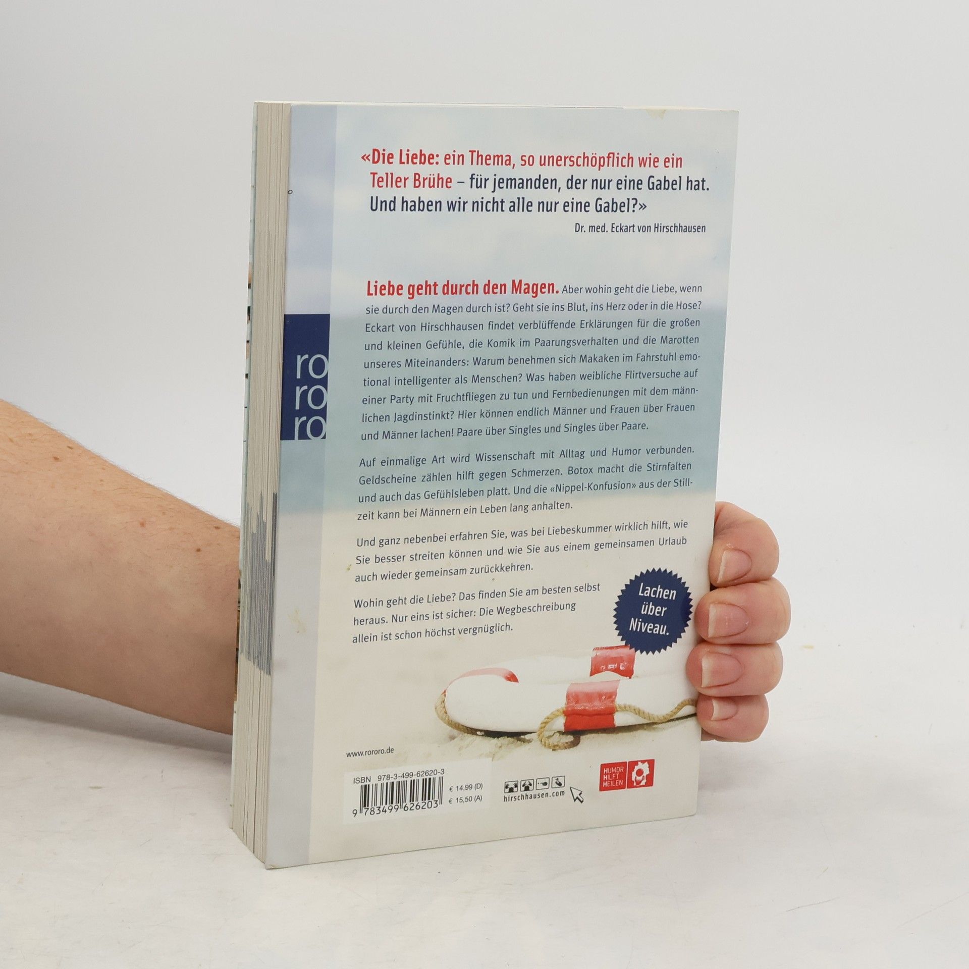 Liebe geht durch den Magen. Aber wohin geht die Liebe, wenn sie durch den Magen durch ist? Geht sie ins Blut, ins Herz oder in die Hose? Eckart von Hirschhausen findet verblüffende Erklärungen für die großen und kleinen Gefühle, die Komik im Paarungsverhalten und die Marotten unseres Miteinanders: Warum benehmen sich Makaken im Fahrstuhl emotional intelligenter als Menschen? Was haben weibliche Flirtversuche auf einer Party mit Fruchtfliegen zu tun und Fernbedienungen mit dem männlichen Jagdinstinkt? Hier können endlich Männer und Frauen über Frauen und Männer lachen! Paare über Singles und Singles über Paare.Auf einmalige Art wird Wissenschaft mit Alltag und Humor verbunden. Geldscheine zählen hilft gegen Schmerzen. Botox macht die Stirnfalten und auch das Gefühlsleben platt. Und die «Nippel-Konfusion» aus der Stillzeit kann bei Männern ein Leben lang anhalten. Und ganz nebenbei erfahren Sie, was bei Liebeskummer wirklich hilft, wie Sie besser streiten können und wie Sie aus einem gemeinsamen Urlaub auch wieder gemeinsam zurückkehren.Wohin geht die Liebe? Das finden Sie am besten selbst heraus. Nur eins ist sicher: Die Wegbeschreibung allein ist schon höchst vergnüglich.