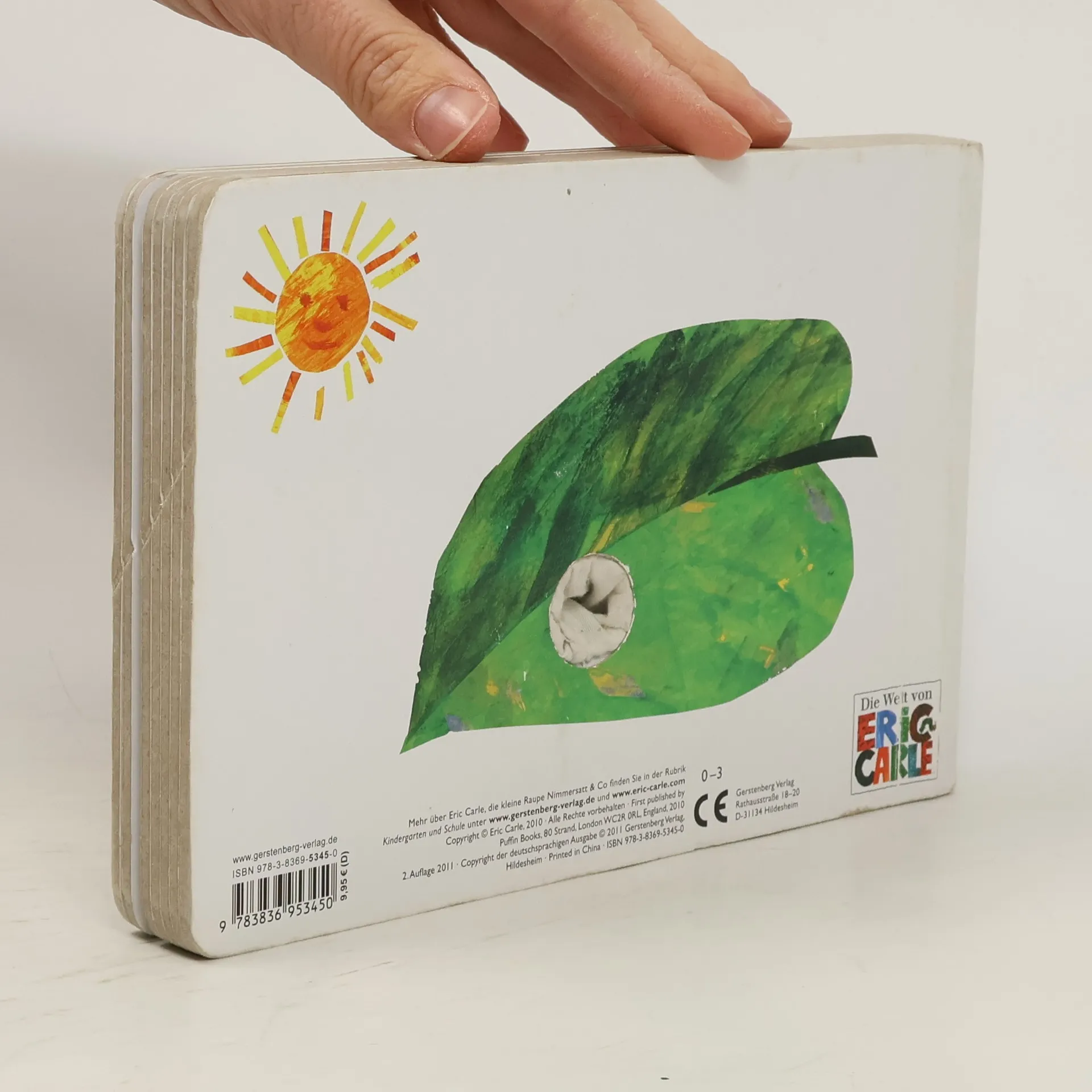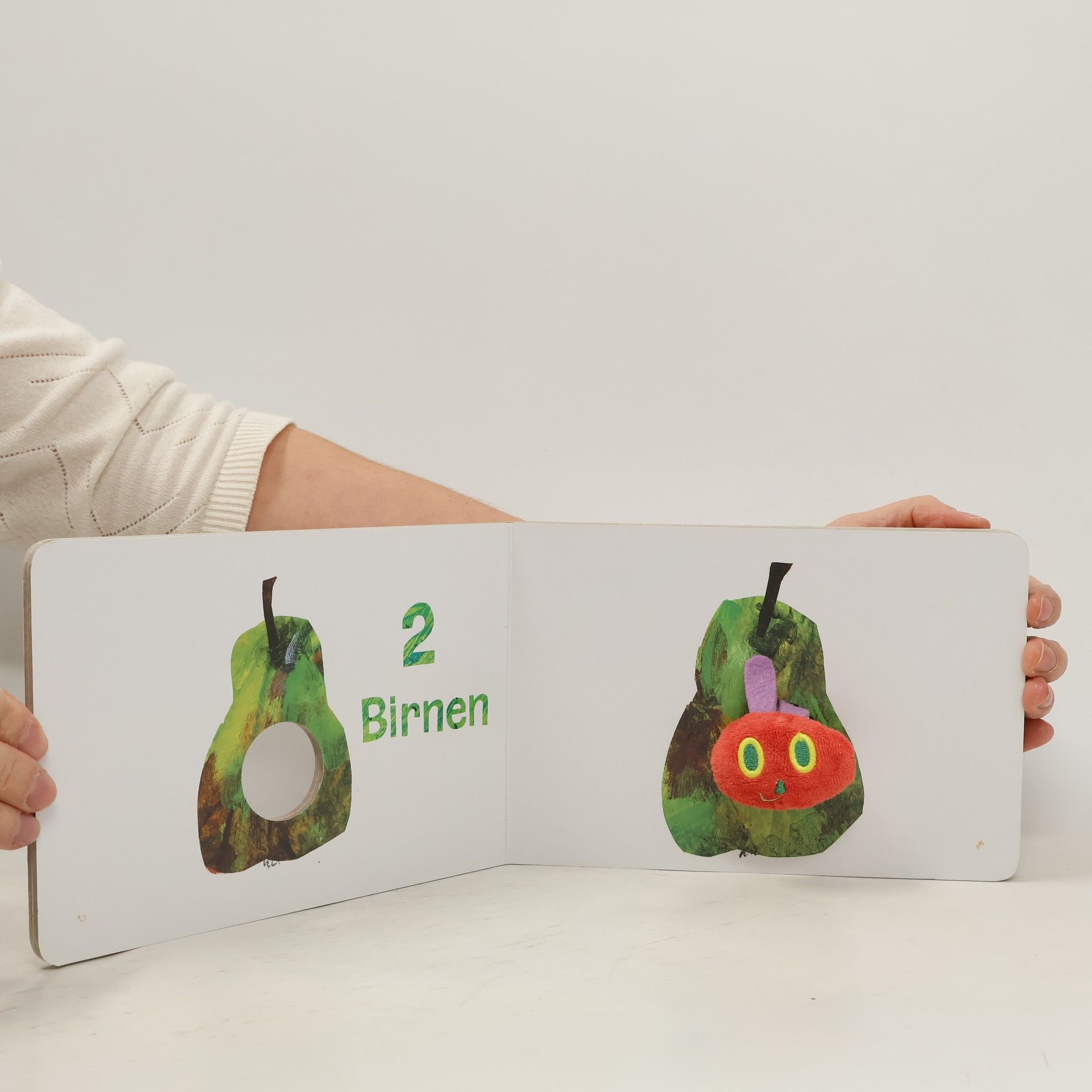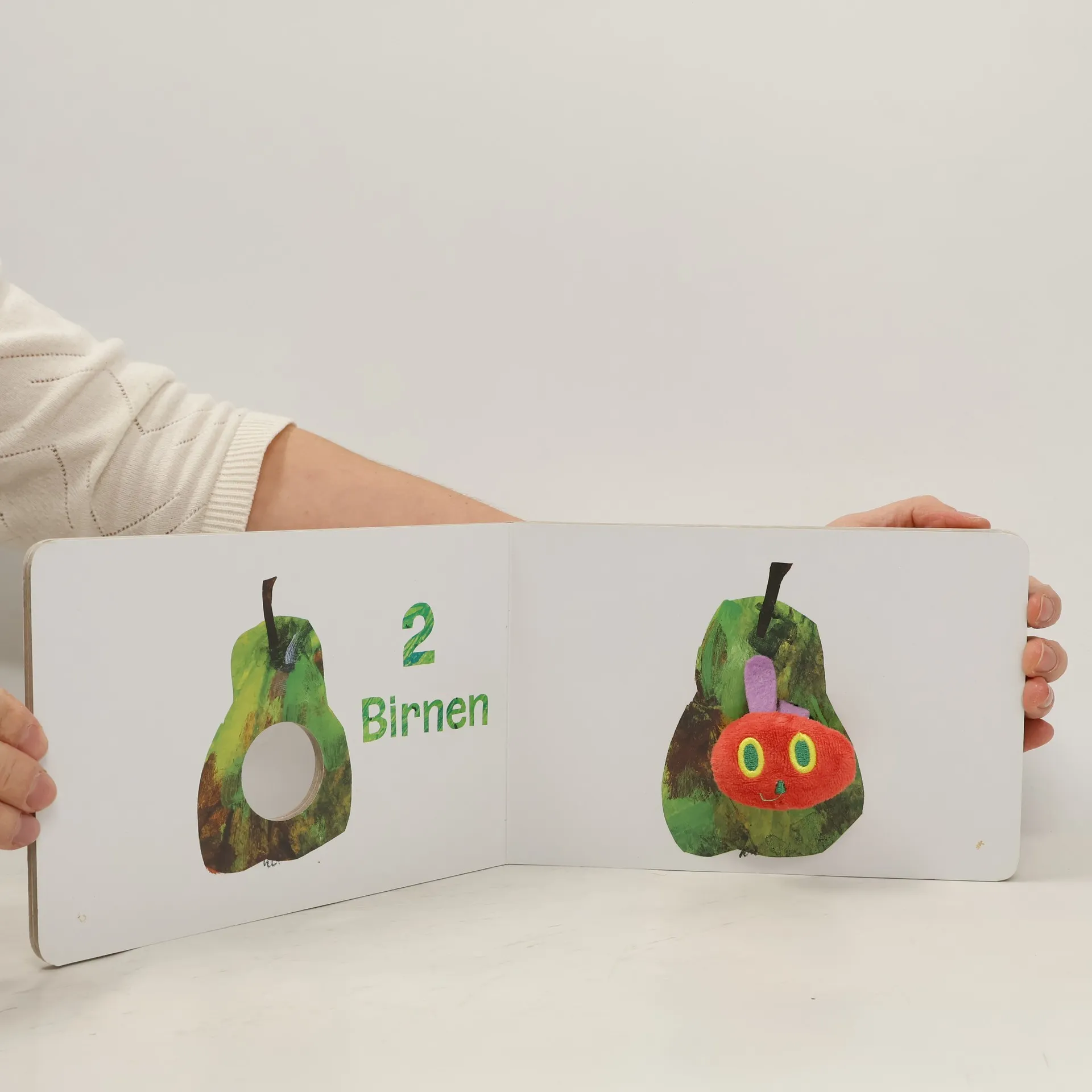 Wer guckt denn da aus dem Buch heraus? Das ist doch die kleine Raupe Nimmersatt! Seite für Seite kann man die lustige Stofffingerpuppe durch die Löcher in den Seiten krabbeln lassen. In einer verkürzten Form der bekannten Geschichte auf 14 Seiten lernen schon die ganz Kleinen die Zahlen von 1 bis 5 und verschiedene Früchte kennen und haben großen Spaß, wenn sich die Fingerpuppen-Raupe durch die Seiten futtert. Und natürlich darf auch der bunte Schmetterling nicht fehlen! Mit diesem liebevoll gestalteten Fingerpuppenbuch trainieren die Kleinsten ihre sensomotorischen Fähigkeiten. Die besonders stabile Ausstattung des Buches sorgt dafür, dass die Freude daran lange erhalten bleibt.
