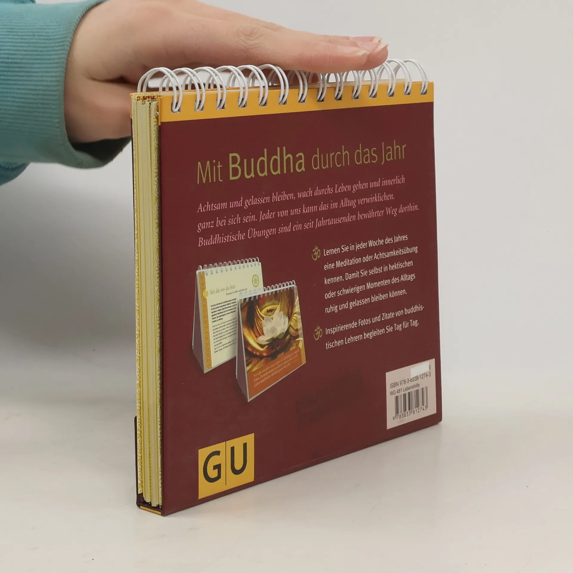 Immer mehr Menschen erkennen den Wert buddhistischer Übungspraxis. Der neuartige Tischaufsteller bietet allen Interessierten einen leichten wie fundierten Einstieg. Gelassen wie ein Buddha funktioniert wie ein Kurs, der den Leser ein Jahr lang mit Achtsamkeitsübungen für den Alltag, Meditationen sowie Übungen zum Umgang mit schwierigen Gefühlen begleitet. Menschen mit Vorerfahrung können sich aber auch wie aus einer Werkzeugkiste bedienen und gezielt Übungen auswählen, die sie aktuell brauchen. Auch optisch ist der Tischaufsteller ein willkommener Begleiter für den Alltag, den man sich gern auf den Schreibtisch oder aufs Nachtkästchen stellt. Ästhetische Gestaltung, inspirierende Fotos mit buddhistischen Motiven sowie Zitate von buddhistischen Lehrern machen ihn zu einem wunderbares Geschenk für alle, die bewusster und achtsamer durchs Leben gehen möchten.