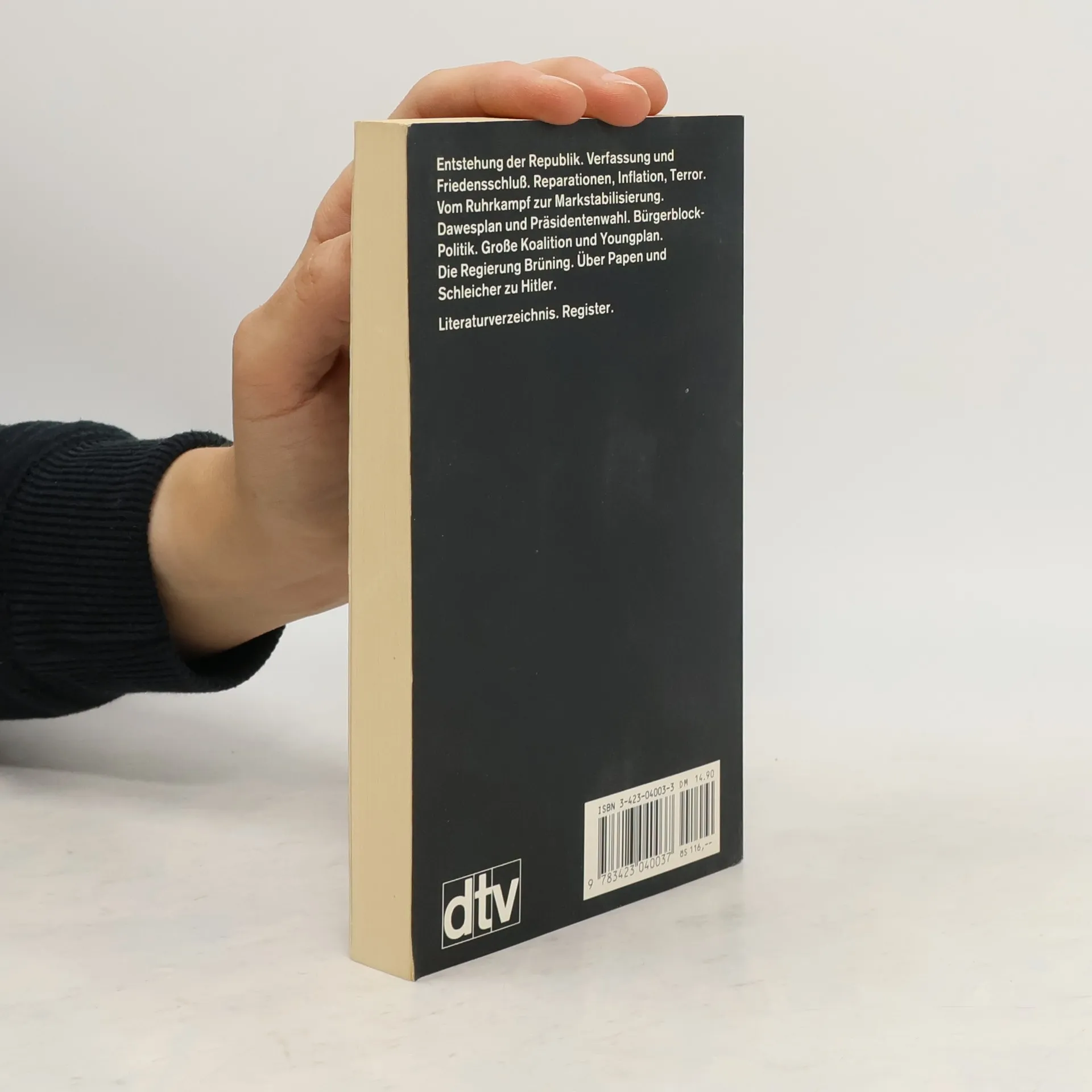 Von Anfang an war die Weimarer Republik belastet durch die Auswirkungen des Versailler Friedens. Kriegsschuldparagraph und Reparationsforderungen, Rheinlandbesetzung und wirtschaftliche Not vergifteten die Atmosphäre und boten wirkungsvolle Angriffspunkte für jede Art von Agitation gegen den Staat. Die Deutschen, an demokratische Spielregeln kaum gewöhnt, ließen sich zu großen Teilen willfährig von Schlagworten und Phrasen einfangen. Nach Inflation und Ruhrkampf gelang um die Mitte der zwanziger Jahre eine vorübergehende Stabilisierung. Aber die Wirtschaftskrise machte all diese Ansätze wieder zunichte. Die Ohnmacht des Parlaments und die Notverordnungen der letzten Regierungen vor Hitlers “Machtergreifung” begleiteten die Agonie der ersten deutschen Republik. Das Buch behandelt: - Entstehung der Republik - Verfassung und Friedensschluss - Reparationen, Inflation, Terror - Von Ruhrkampf zur Marktstabilisierung - Dawesplan und Präsidentenwahl - Bürgerblock-Politik - Große Koalition und Youngplan - Die Regierung Brüning - Über Papen und Schleicher zu Hitler