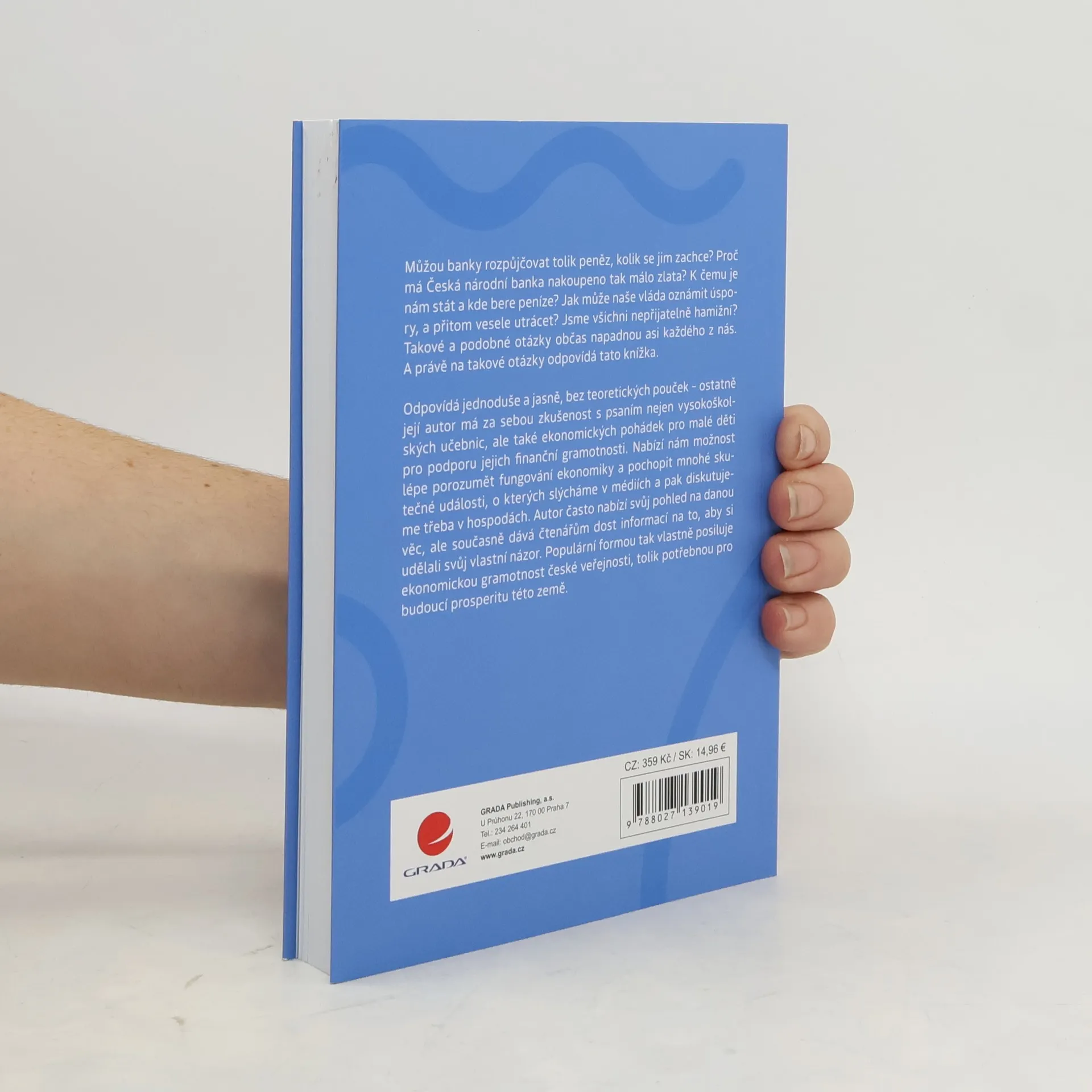 Můžou banky rozpůjčovat tolik peněz, kolik se jim zachce? Proč má Česká národní banka nakoupeno tak málo zlata? K čemu je nám stát? Jak může naše vláda oznámit úspory, a přitom vesele utrácet? Podobné otázky občas napadnou asi každého z nás. A právě na takové otázky odpovídá tato knížka. Odpovídá jednoduše a jasně, bez teoretických pouček – ostatně její autor má za sebou zkušenost s psaním nejen vysokoškolských učebnic, ale také ekonomických pohádek pro malé děti.Nabízí nám možnost lépe porozumět fungování ekonomiky a pochopit mnohé skutečné události, o kterých slýcháme v médiích a pak diskutujeme třeba v hospodách. Autor často nabízí svůj pohled na danou věc, ale současně dává čtenářům dost informací na to, aby si udělali svůj vlastní názor. Populární formou tak vlastně posiluje ekonomickou gramotnost české veřejnosti, tolik potřebnou pro budoucí prosperitu této země.