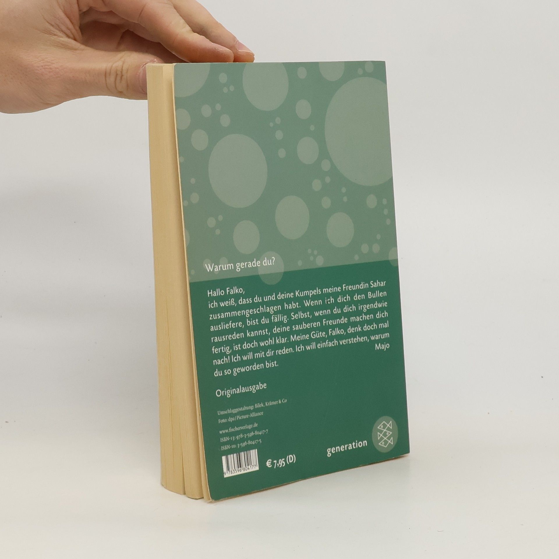 »Hallo Falko, ich weiß, dass du und deine Kumpels meine Freundin Sahar zusammengeschlagen habt. Wenn ich dich den Bullen ausliefere, bist du fällig. Selbst, wenn du dich irgendwie rausreden kannst, deine sauberen Freunde machen dich fertig, ist doch wohl klar. Die können es sich bestimmt nicht leisten, dass du irgendwann quatschst. Meine Güte, Falko, denk doch mal nach! Ich will mit dir reden. Ich will einfach verstehen, warum du so geworden bist. Majo«Skins haben Majos beste Freundin vor der Disko brutal zusammengeschlagen. Während Sahar im Krankenhaus liegt, findet Majo auf dem Parkplatz einen Ausweis. Er gehört Falko. Falko, der schüchterne, zurückhaltende Junge, den sie von früher kennt. Der immer alles einstecken musste. Und der jetzt eine Glatze ist und selber Prügel austeilt. Ohne zu wissen, warum, ruft Majo ihn an. Und ohne zu wissen, was sie da tut, trifft sie sich mit ihm. Redet mit ihm. Immer wieder. Als sie merkt, auf was sie sich da eingelassen hat, hat sie sich schon längst verliebt - in eine Glatze.