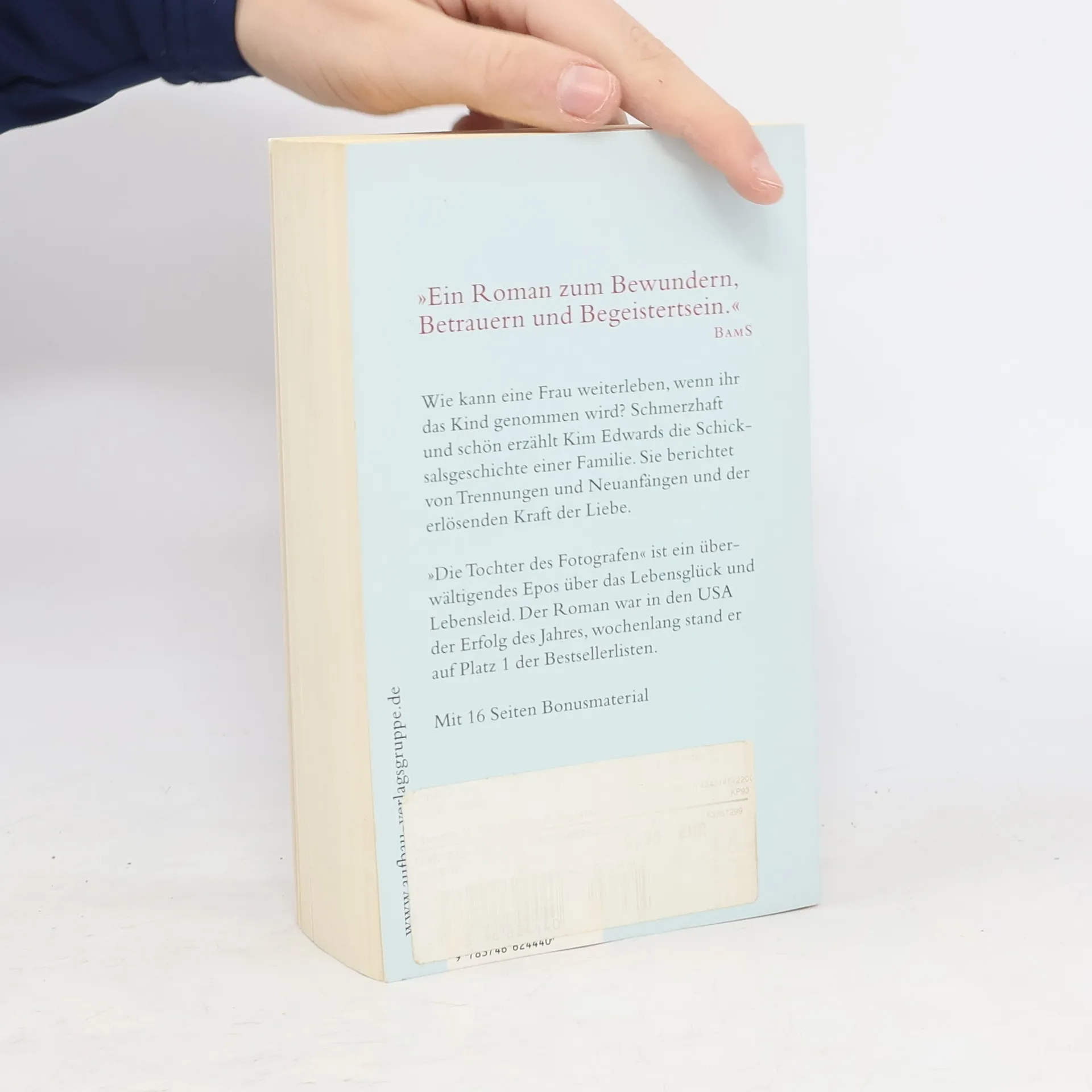 „Ein Roman zum Bewundern, Betrauern und Begeistertsein.“ BamS Wie kann eine Frau weiterleben, wenn ihr das Kind genommen wird? Schmerzhaft und schön erzählt Kim Edwards die Schicksalsgeschichte einer Familie. Sie berichtet von Trennungen und Neuanfängen und der erlösenden Kraft der Liebe. „Die Tochter des Fotografen“ ist ein überwältigendes Epos über das Lebensglück und Lebensleid. Der Roman war in den USA der Erfolg des Jahres, wochenlang stand er auf Platz 1 der Bestsellerlisten.