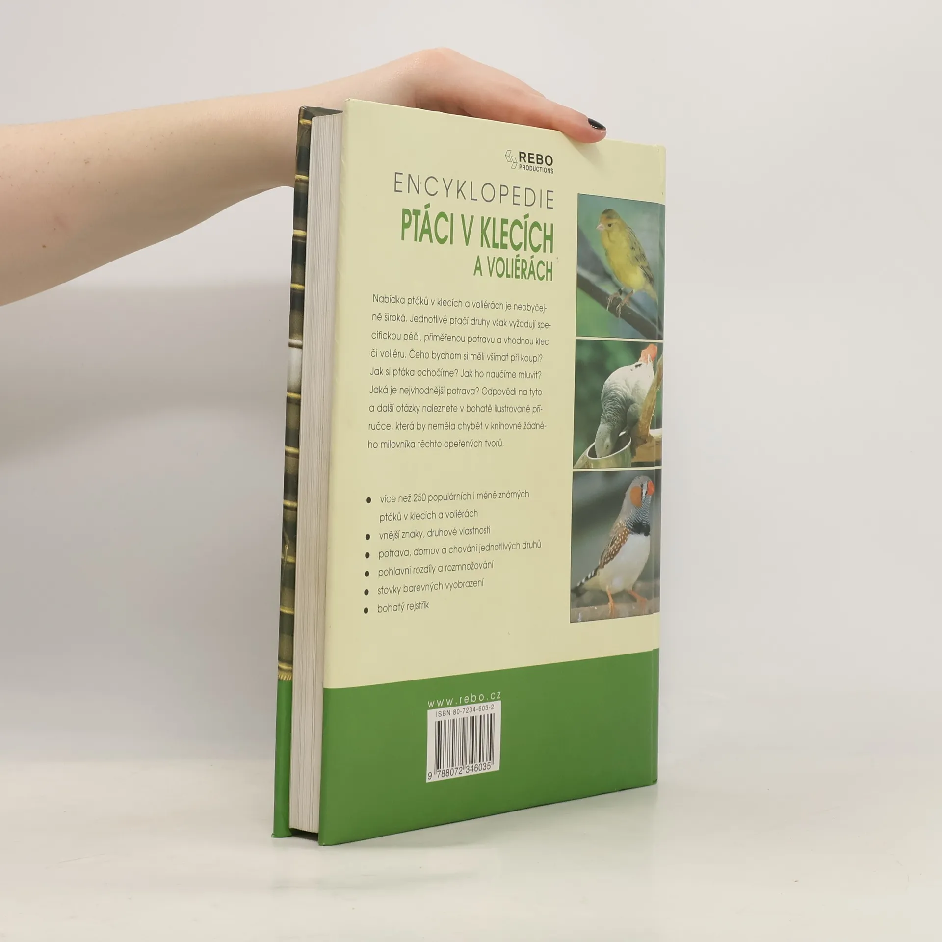 Nabídka ptáků v klecích a voliérách je neobyčejně široká. Jednotlivé ptačí druhy však vyžadují specifickou péči, přiměřenou potravu a vhodnou klec či voliéru. Čeho bychom si měli všímat si při koupi? Jak si ptáka ochočíme? Jak ho naučíme mluvit? Jaká je nejvhodnější potrava? Odpovědi na tyto a další otázky naleznete v bohatě ilustrované příručce, která by neměla chybět v knihovně žádného milovníka těchto opeřených tvorů. * více než 250 populárních i méně známých ptáků v klecích a voliérách * vnější znaky, druhové vlastnosti * potrava, domov a chování jednotlivých druhů * pohlavní rozdíly a rozmnožování * stovky barevných vyobrazení * bohatý rejstřík