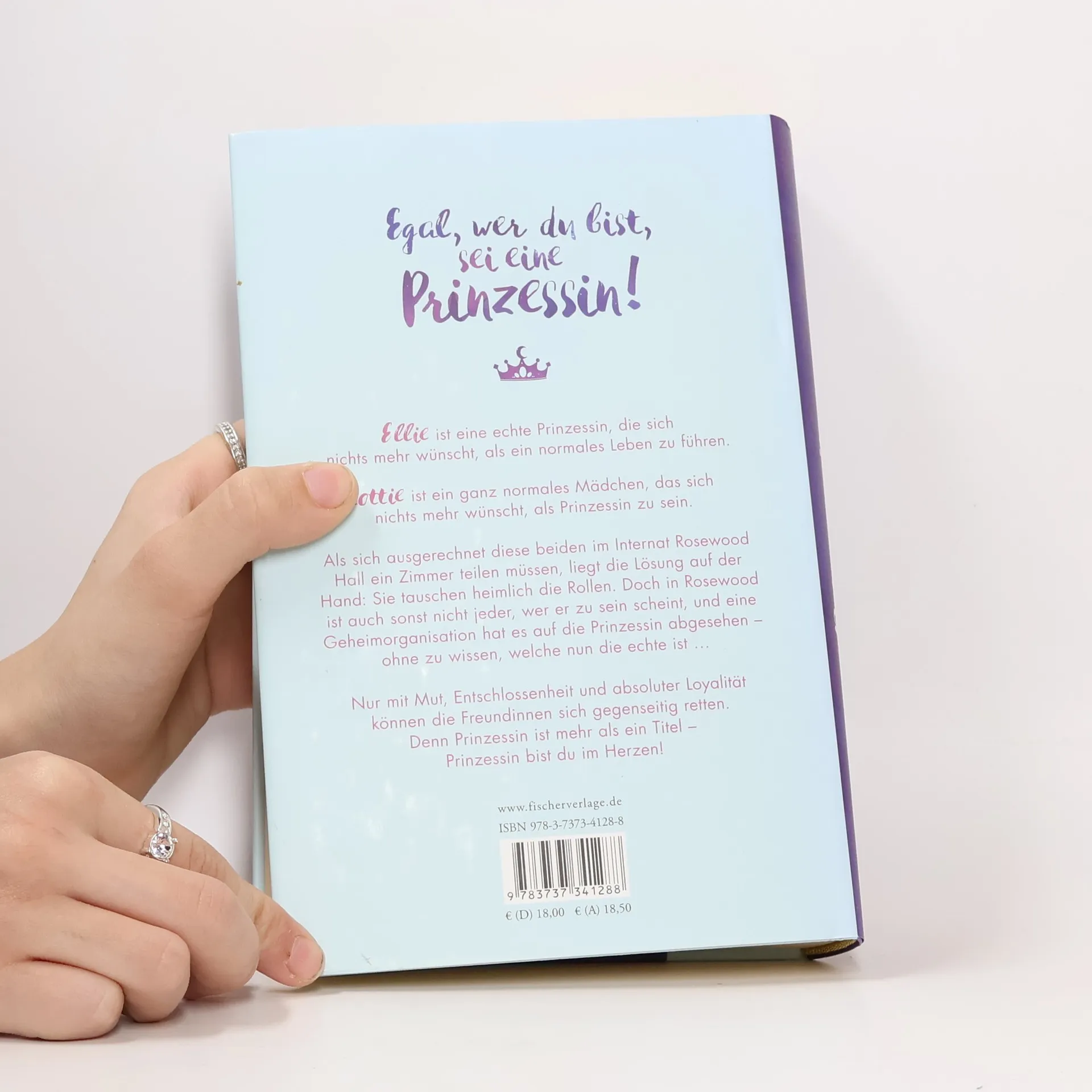 »Ich wollte immer nur eins: keine Prinzessin mehr sein. Und dann lande ich in einem Zimmer mit einem Mädchen, das von Prinzessinnen besessen ist!« Ellie ist eine echte Prinzessin, die sich nichts mehr wünscht, als ein normales Leben zu führen. Lottie ist ein ganz normales Mädchen, das sich nichts mehr wünscht, als Prinzessin zu sein. Als sich ausgerechnet diese beiden im Internat Rosewood Hall ein Zimmer teilen müssen, liegt die Lösung auf der Hand: Sie tauschen heimlich die Rollen. Doch in Rosewood ist auch sonst nicht jeder, wer er zu sein scheint, und eine Geheimorganisation hat es auf die Prinzessin abgesehen – ohne zu wissen, welche nun die echte ist ... Nur mit Mut, Entschlossenheit und absoluter Loyalität können die Freundinnen sich gegenseitig retten. Denn Prinzessin ist mehr als ein Titel – Prinzessin bist du im Herzen!