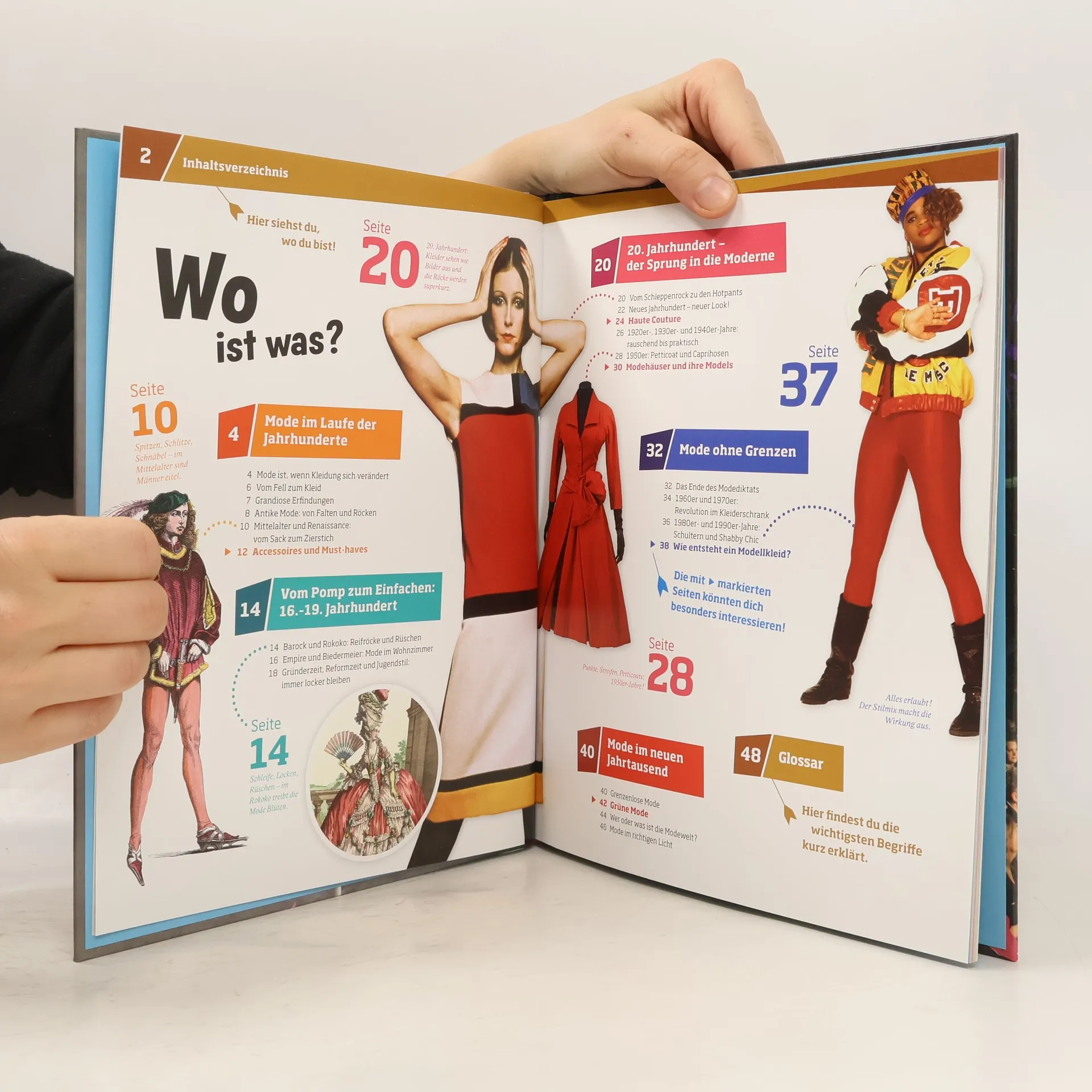 Schöne Kleidung verwandelt Menschen in etwas Besonderes. Die alten Römer fanden Togas mit vielen Falten schick. Auch im Mittelalter ließen sich Adlige am Gewand erkennen. Die Damen des Barock trugen Reifröcke, die durch keine Tür passten. Und in den goldenen 1920er-Jahren tanzte man Charleston in kurzen Röcken mit Fransen. WAS IST WAS begibt sich auf eine Zeitreise durch die bunte Welt der Mode!